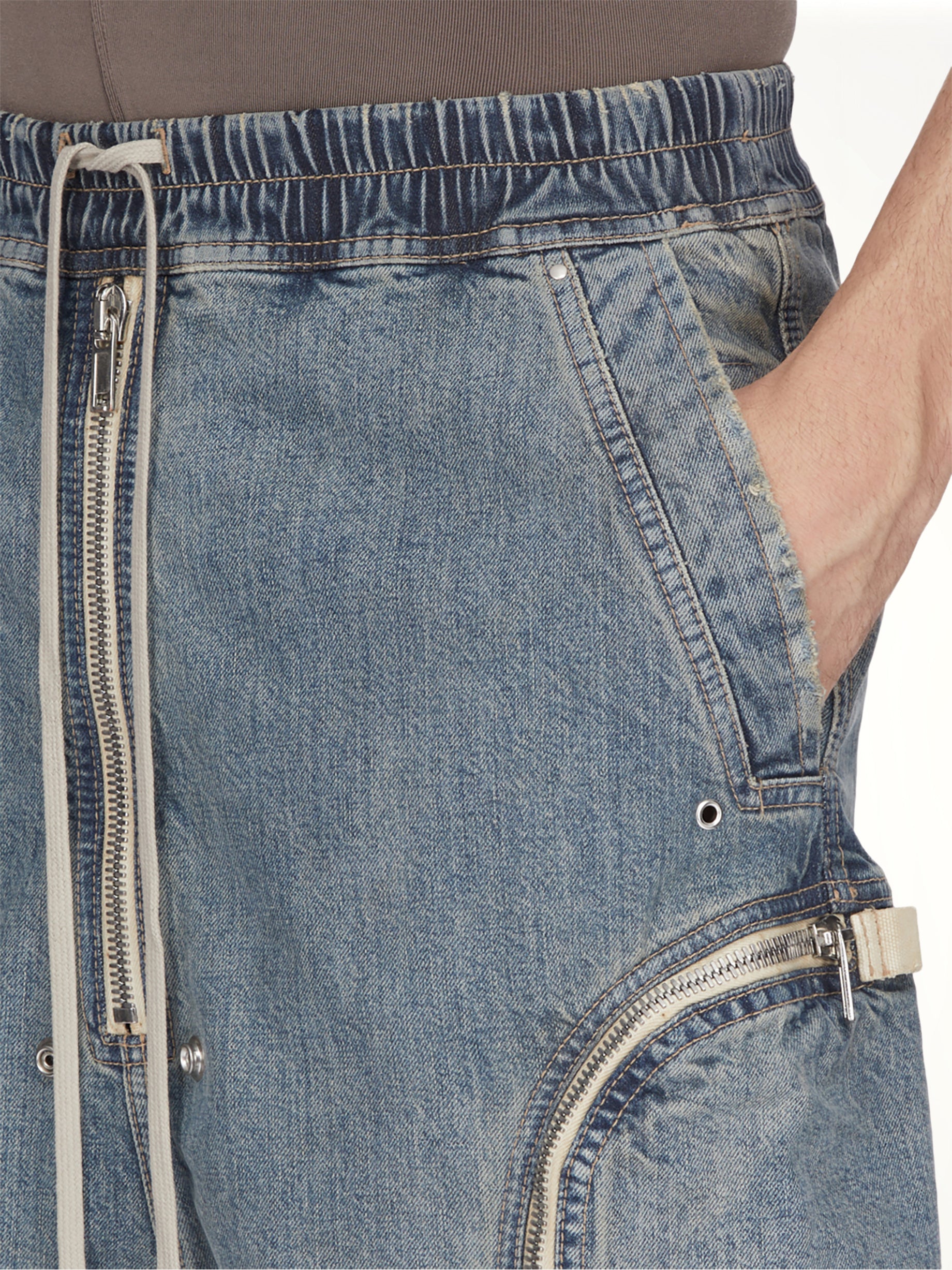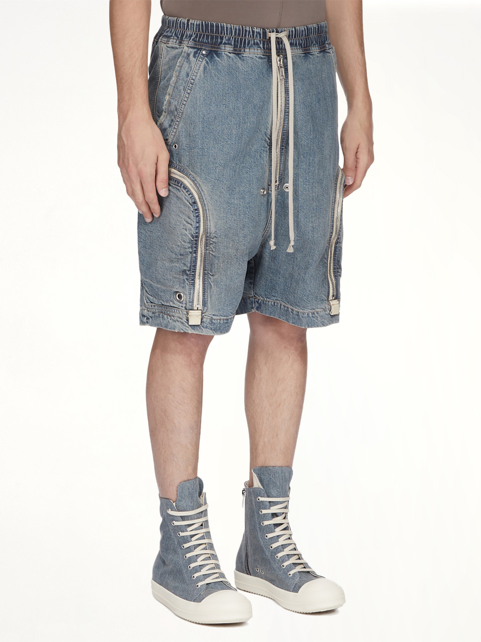 Rick Owens DRKSHDW's Bauhaus Pods in Washed Indigo is a distinctive piece that combines avant-garde design with everyday functionality. These pants offer a relaxed fit with a unique silhouette, perfect for those who appreciate bold fashion statements.