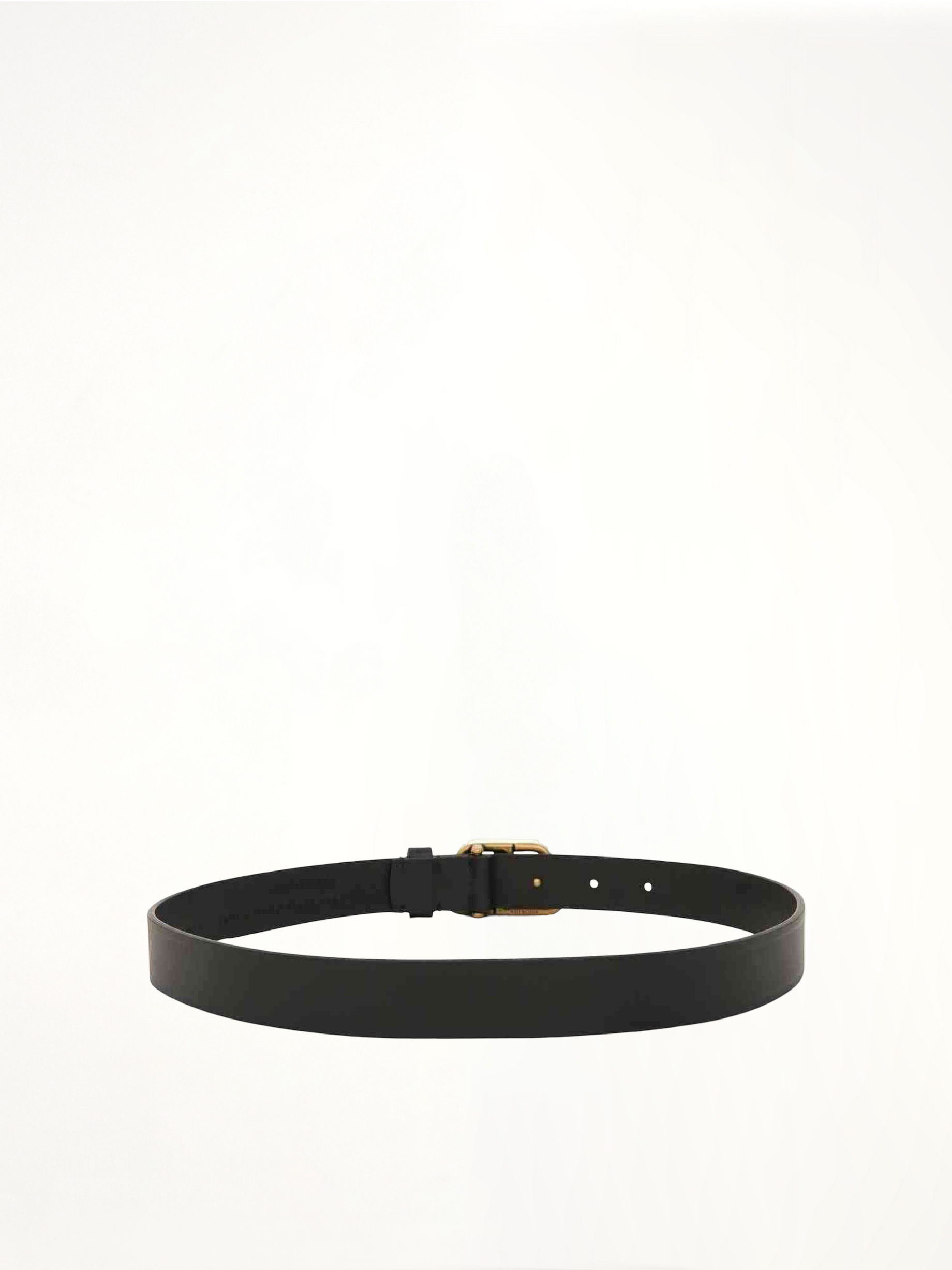 BB thin belt in black with bb buckle, gold-tone hardware and adjustable fit
