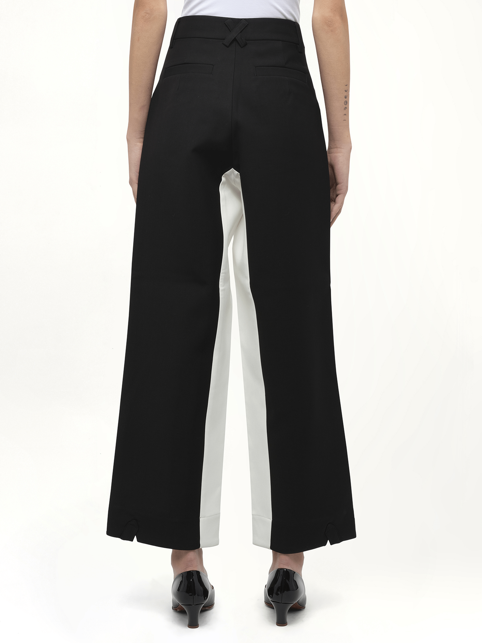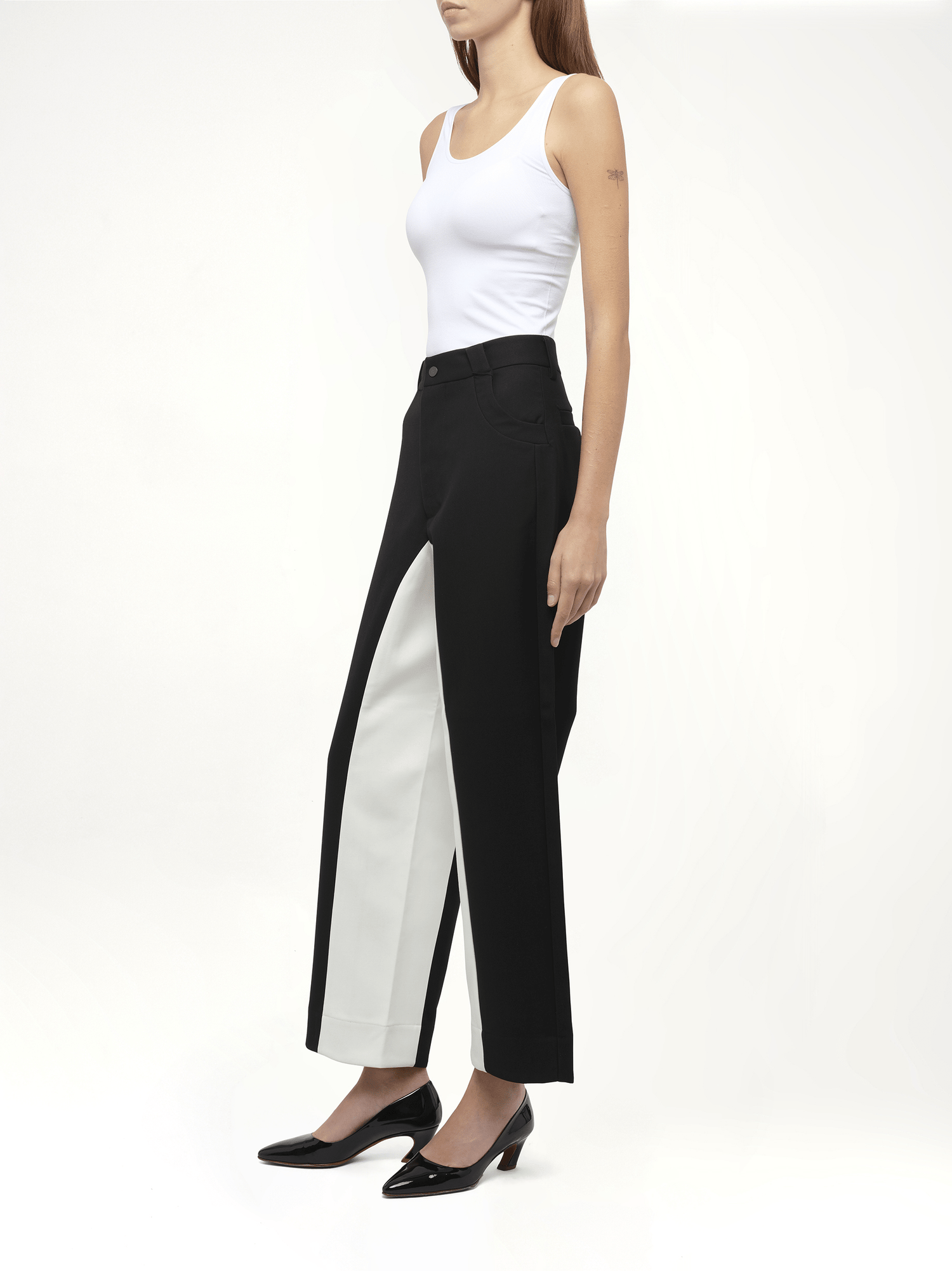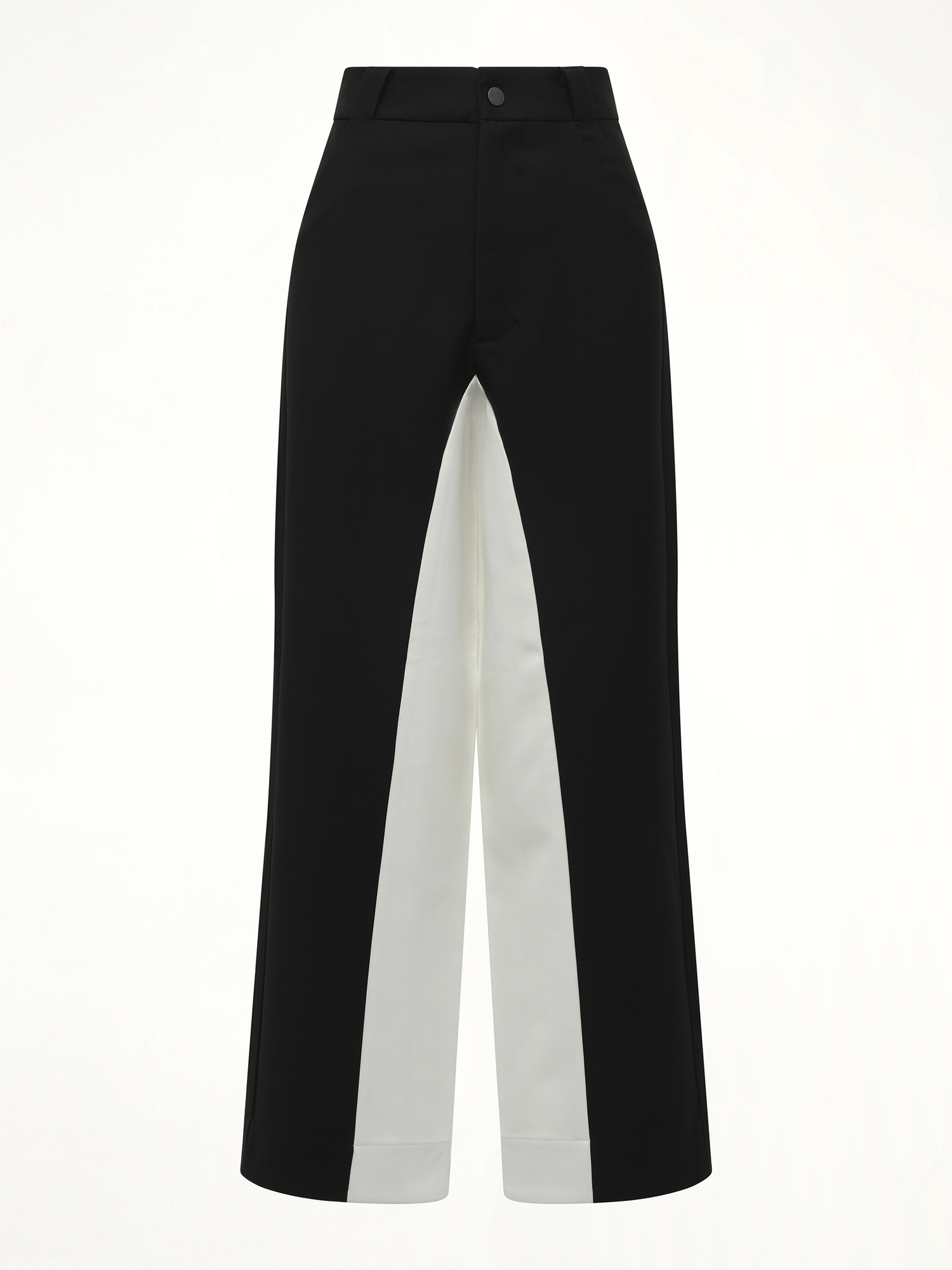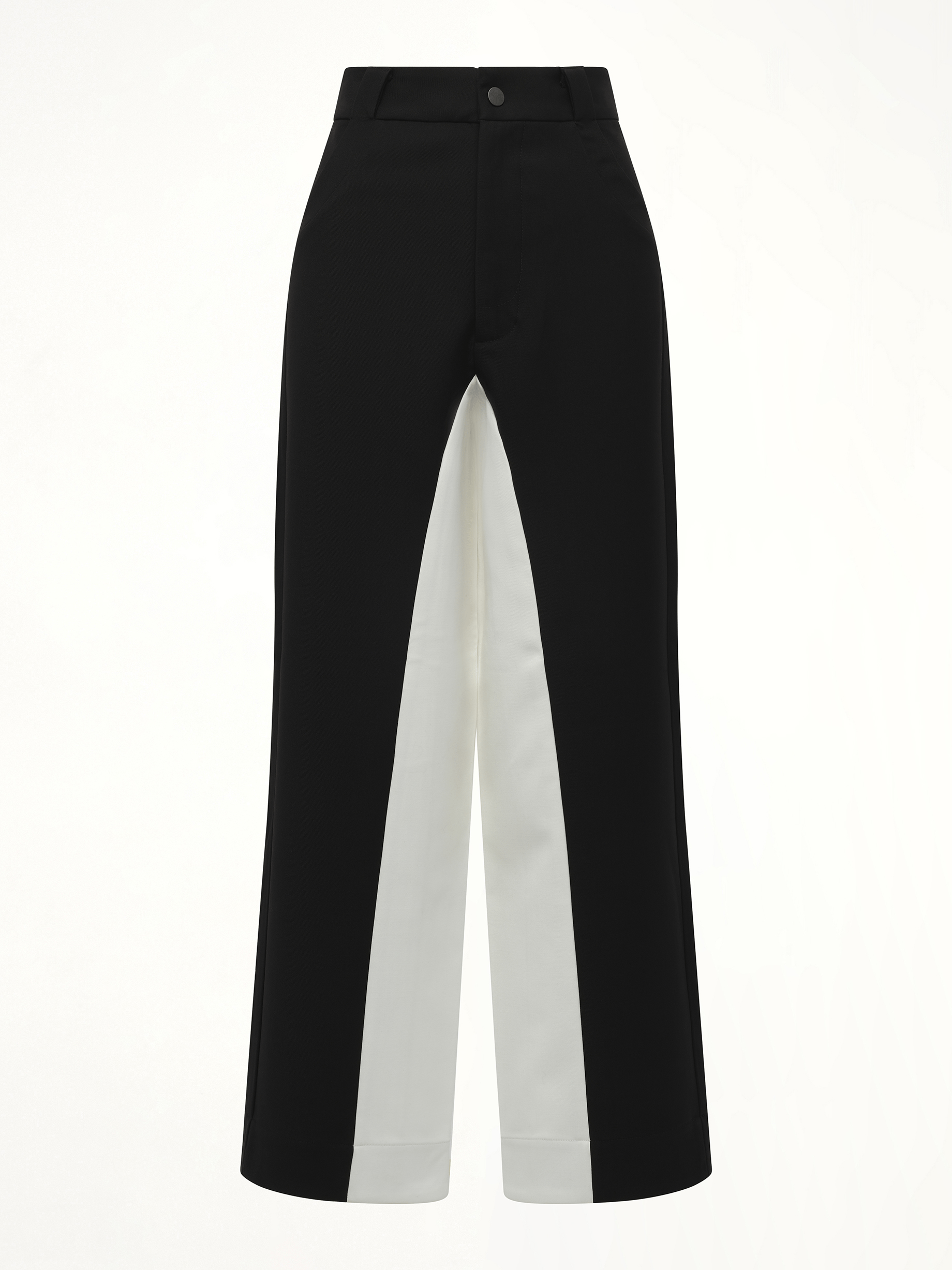 Fax Copy Express's Black & White Stitched Suit Pants in Black, combining classic tailoring with a modern twist. The subtle contrast stitching elevates these pants, making them a standout piece for both formal and casual occasions.