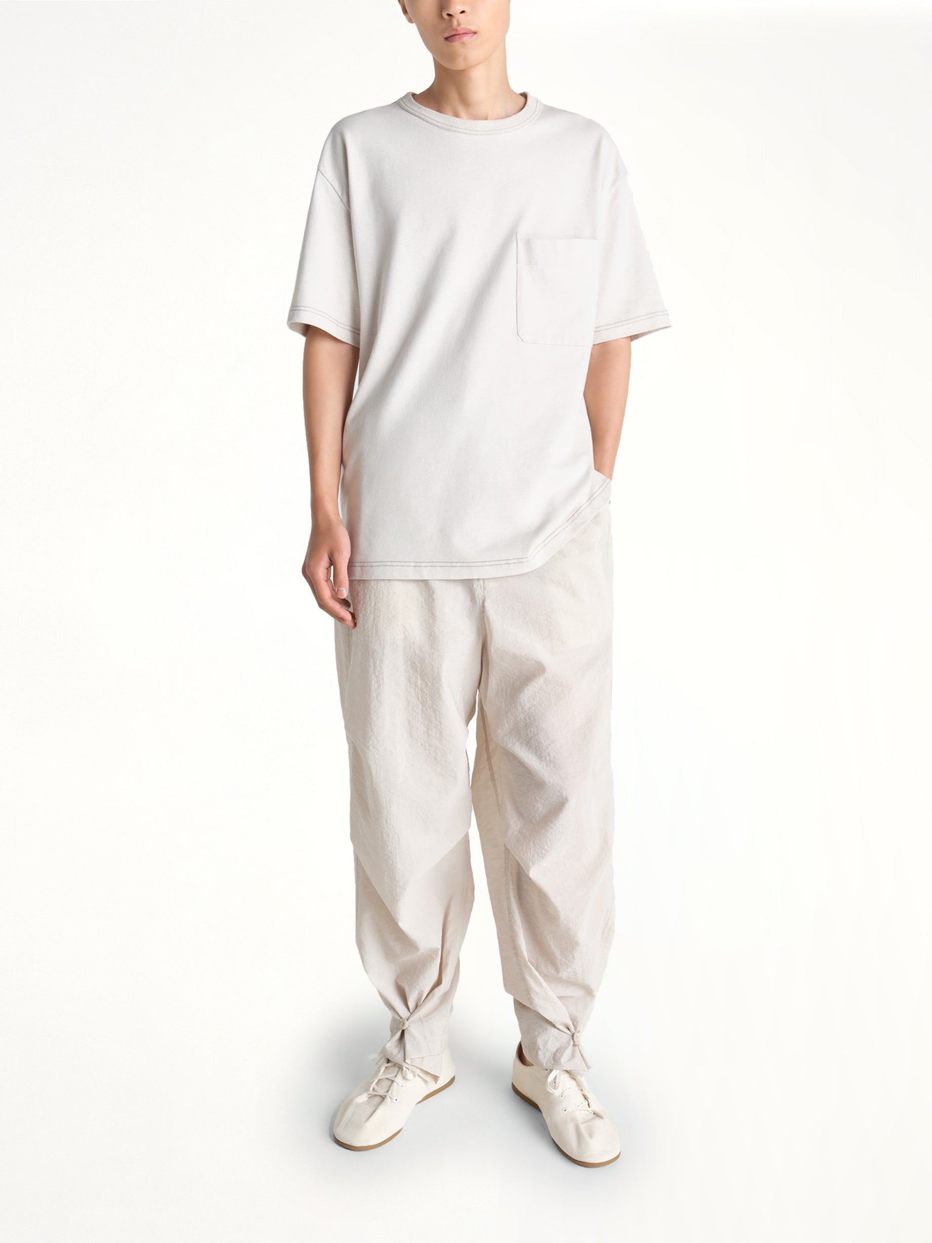 Lemaire's Boxy SS T-Shirt in Pearl is a versatile and stylish addition to any wardrobe. Its relaxed fit and subtle color make it perfect for both casual and semi-formal occasions.