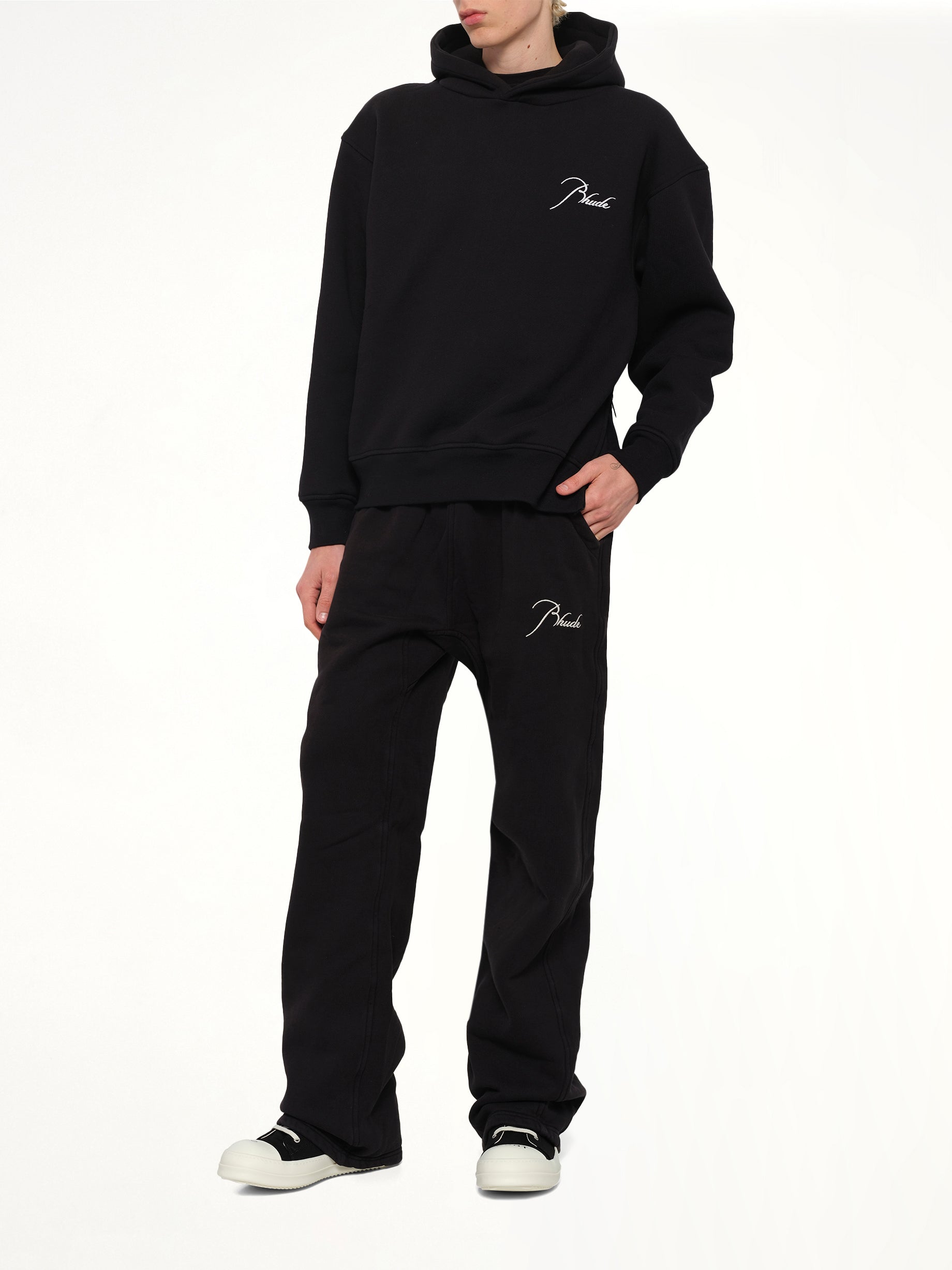 Rhude's Classique Side Zip Pullover Hoodie in Black/White is a stylish and versatile addition to any wardrobe. This hoodie combines modern design with comfort, making it perfect for casual outings or relaxed days at home.