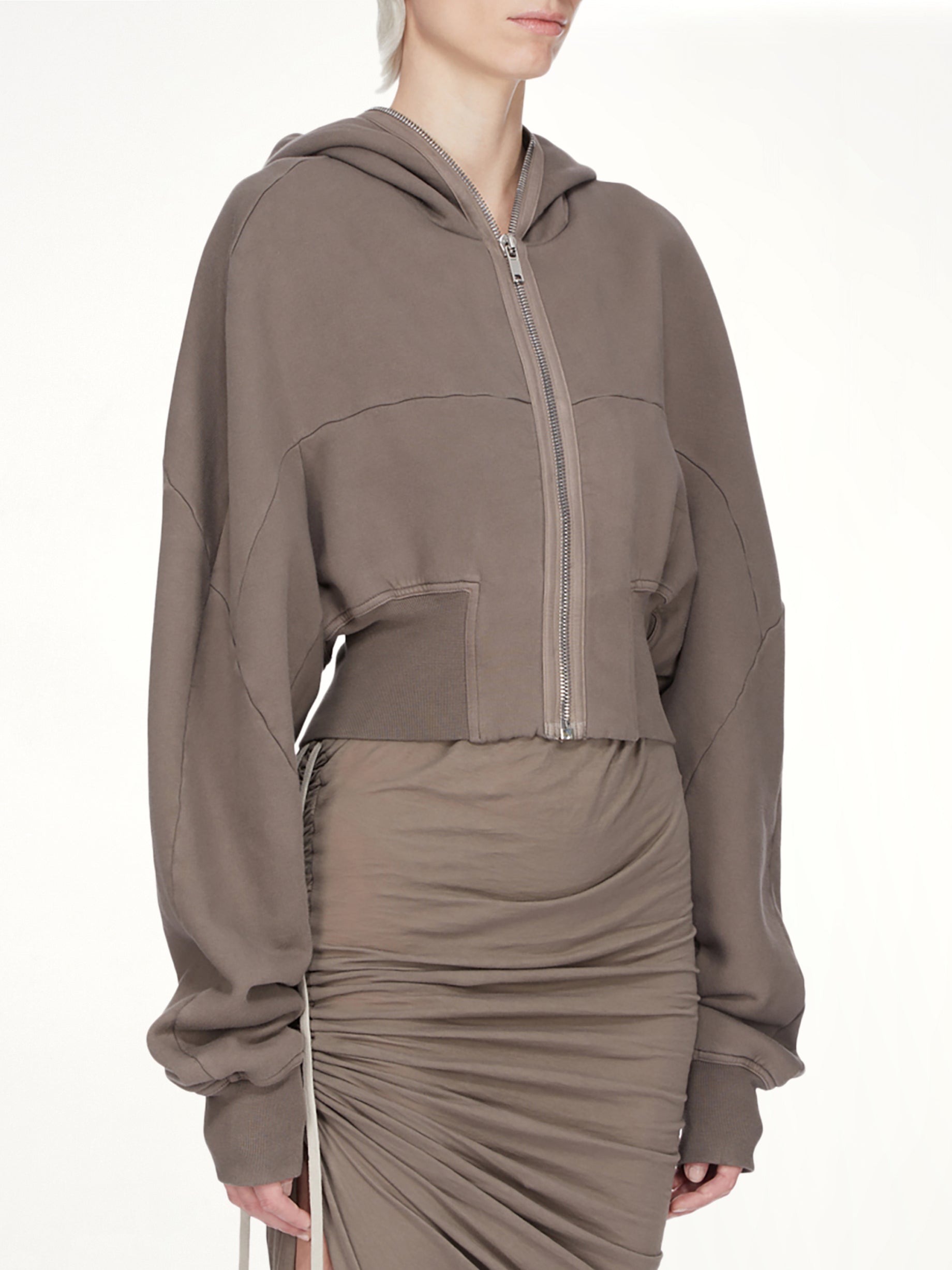 Rick Owens DRKSHDW's Collage Gimp Hoodie in Dust is a distinctive piece that combines avant-garde design with everyday functionality. This hoodie features a unique collage pattern that adds a modern edge to any outfit.