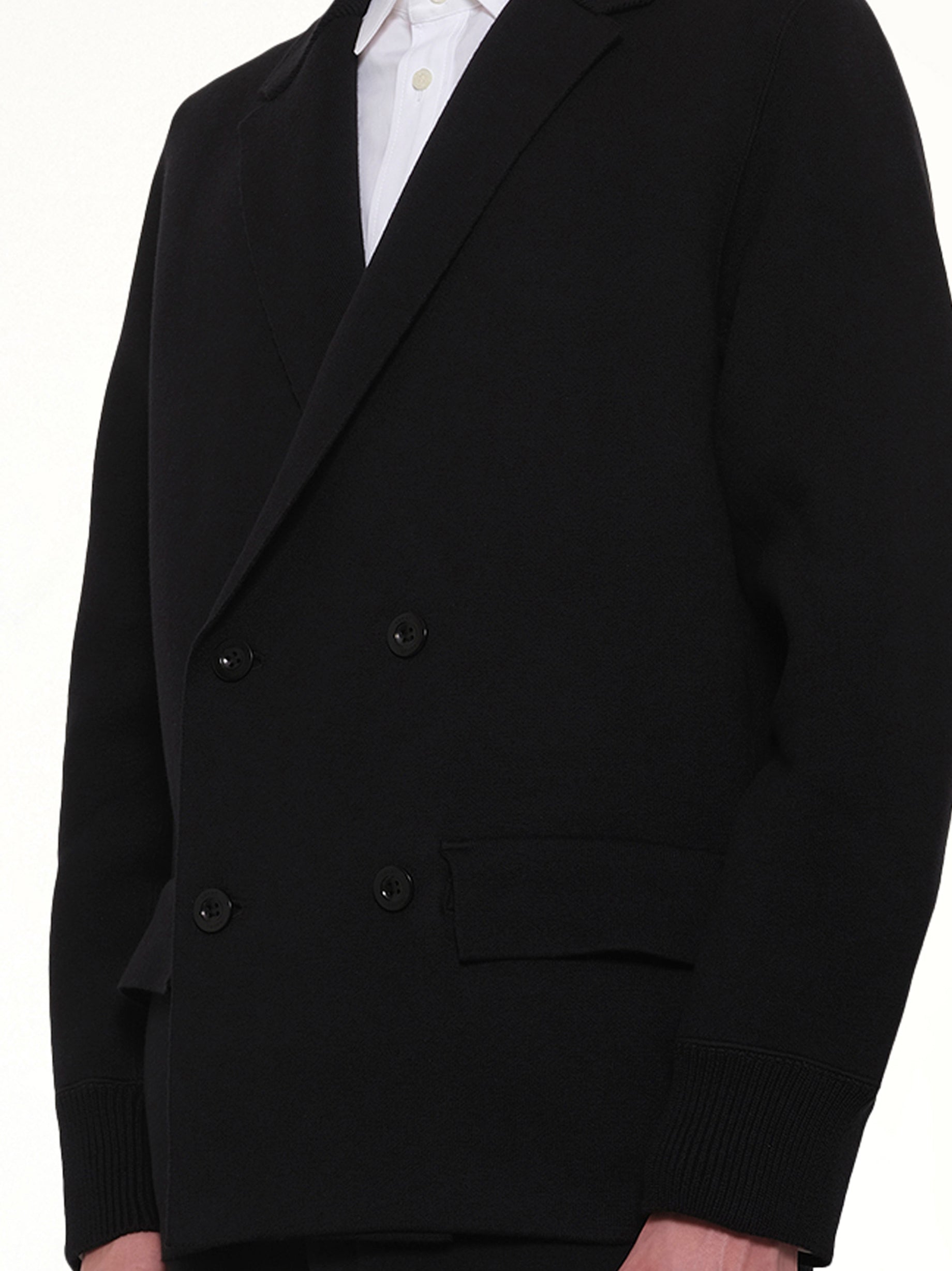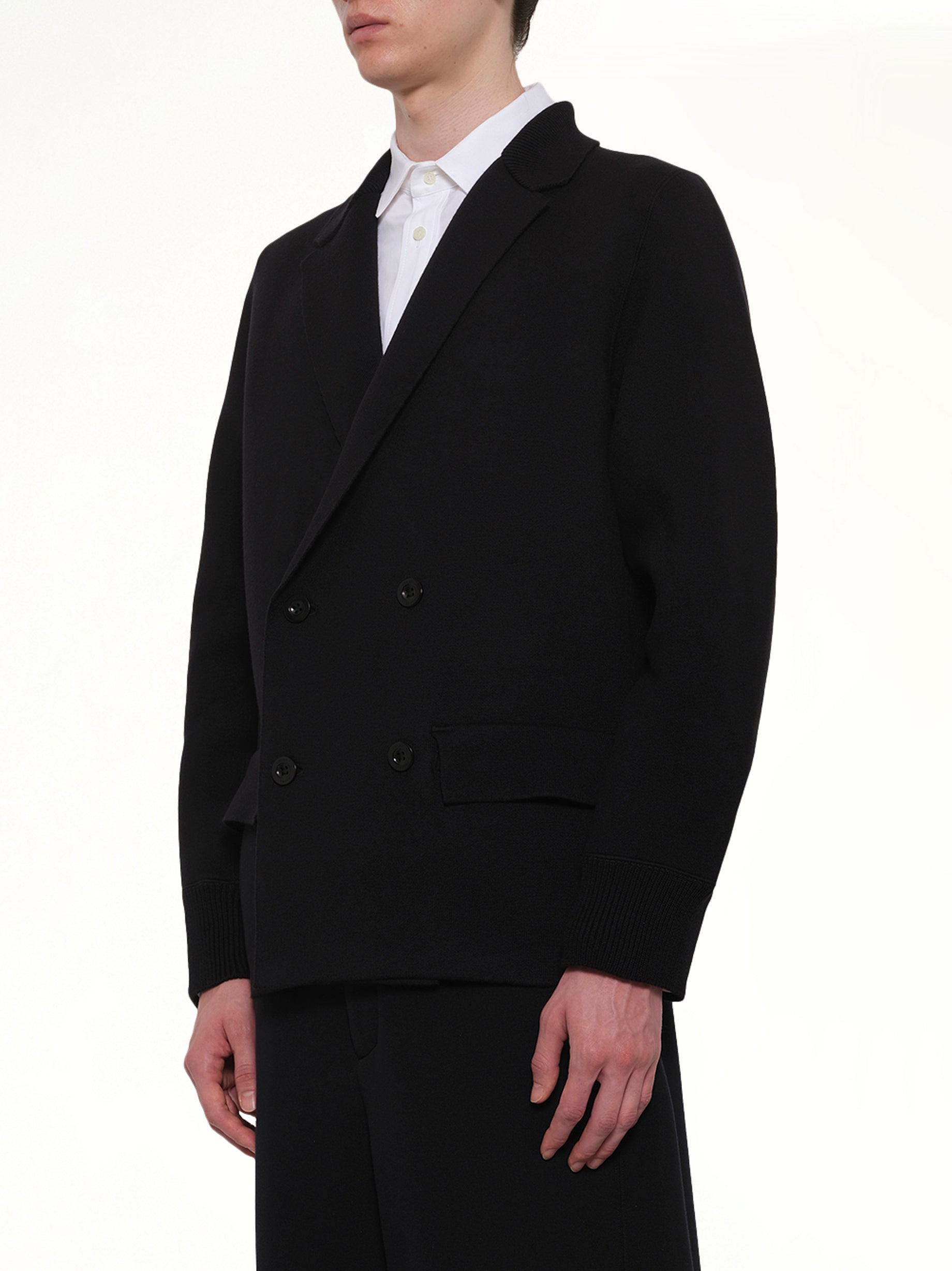 Sacai's Cotton Cashmere Knit Jacket in Black is a sophisticated blend of comfort and style, perfect for elevating any wardrobe. This versatile piece offers a modern silhouette with unique detailing, making it a standout choice for any occasion.
