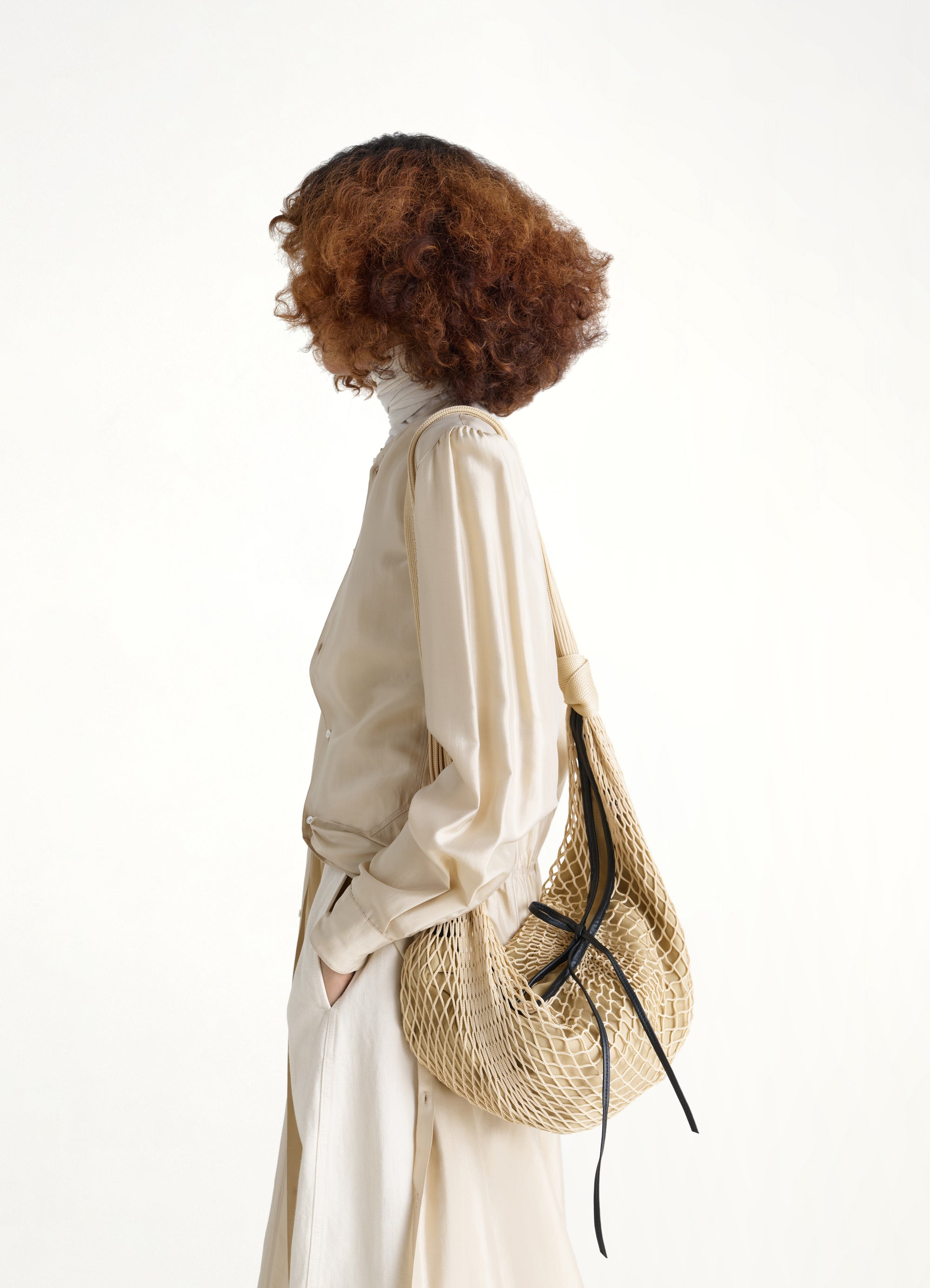Lemaire's Croissant Filt Bag in Light Beige is a stylish and versatile accessory that complements any outfit. Its unique design and neutral color make it a must-have for fashion enthusiasts.