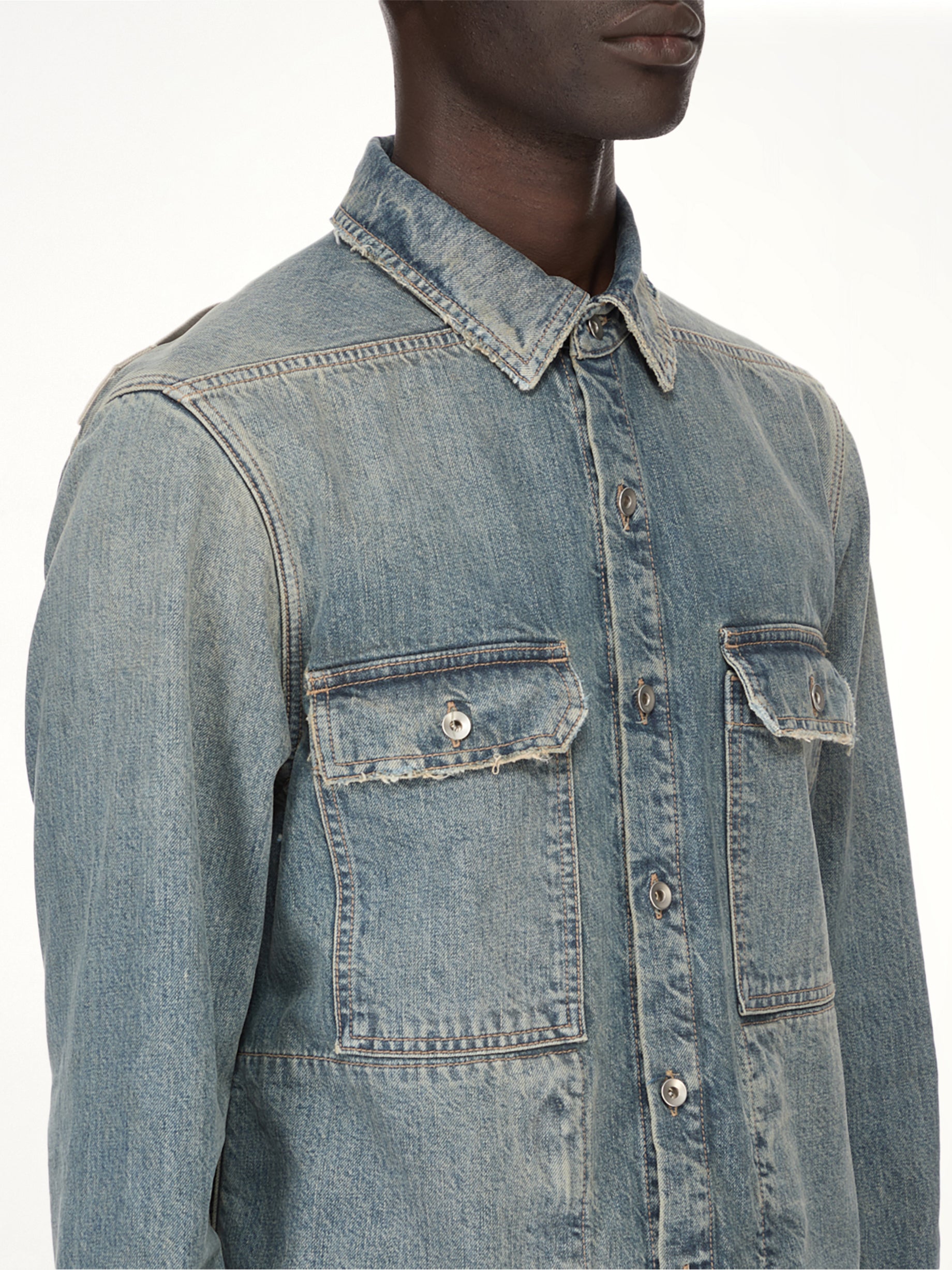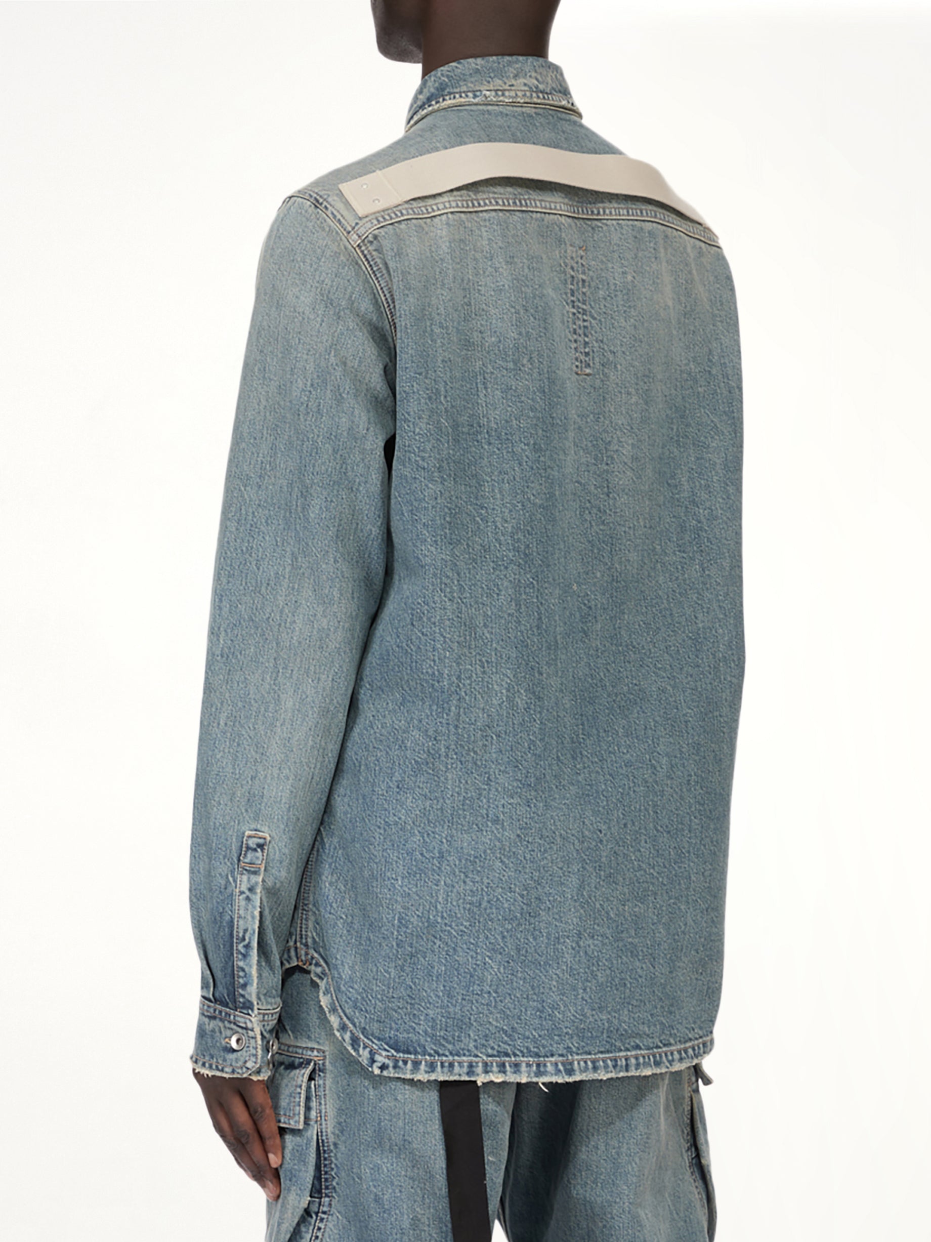 Rick Owens DRKSHDW's Denim Outershirt in Washed Indigo is a versatile piece that combines contemporary style with classic denim appeal. This outershirt is designed for those who appreciate a blend of comfort and edgy fashion.