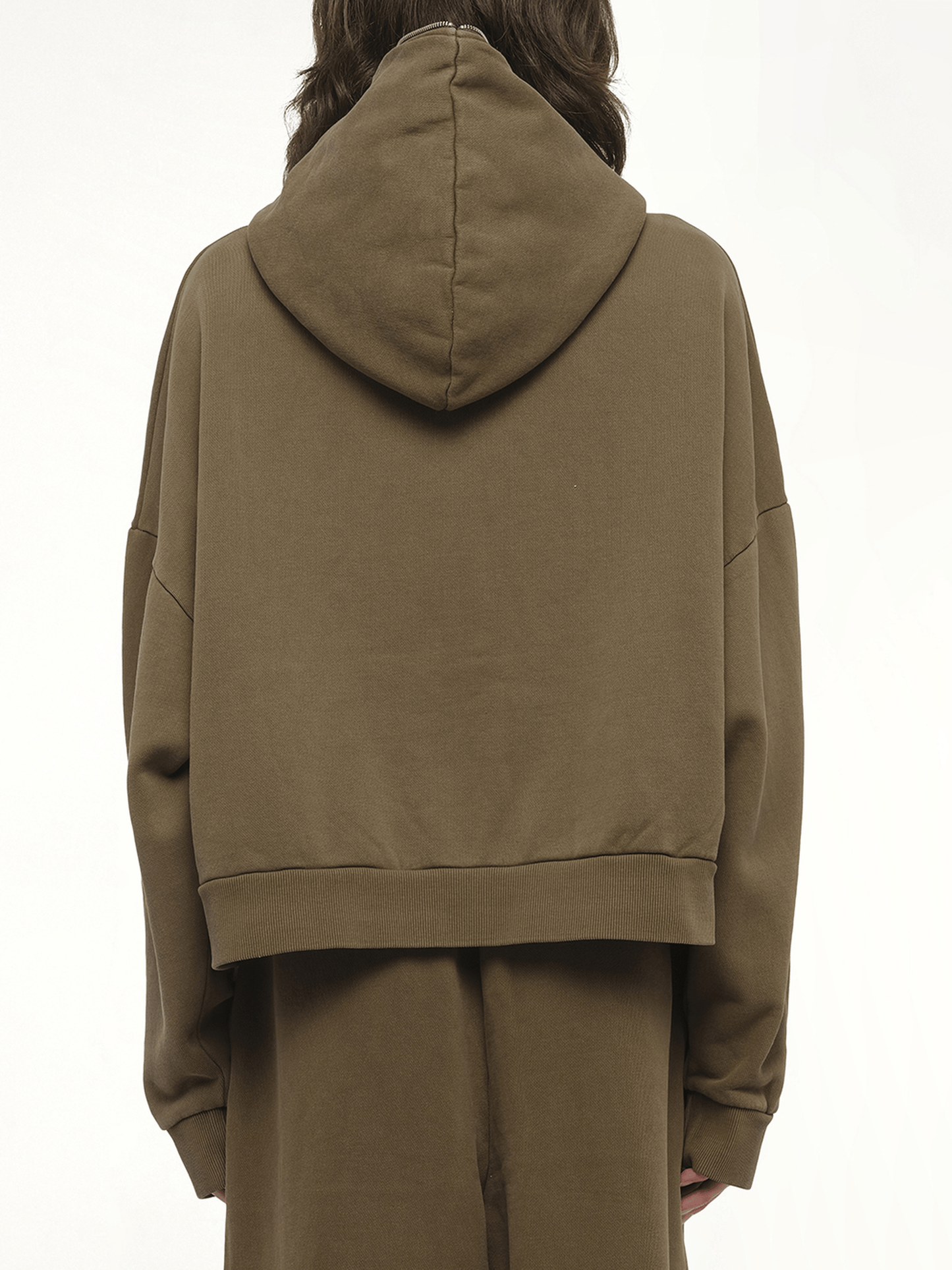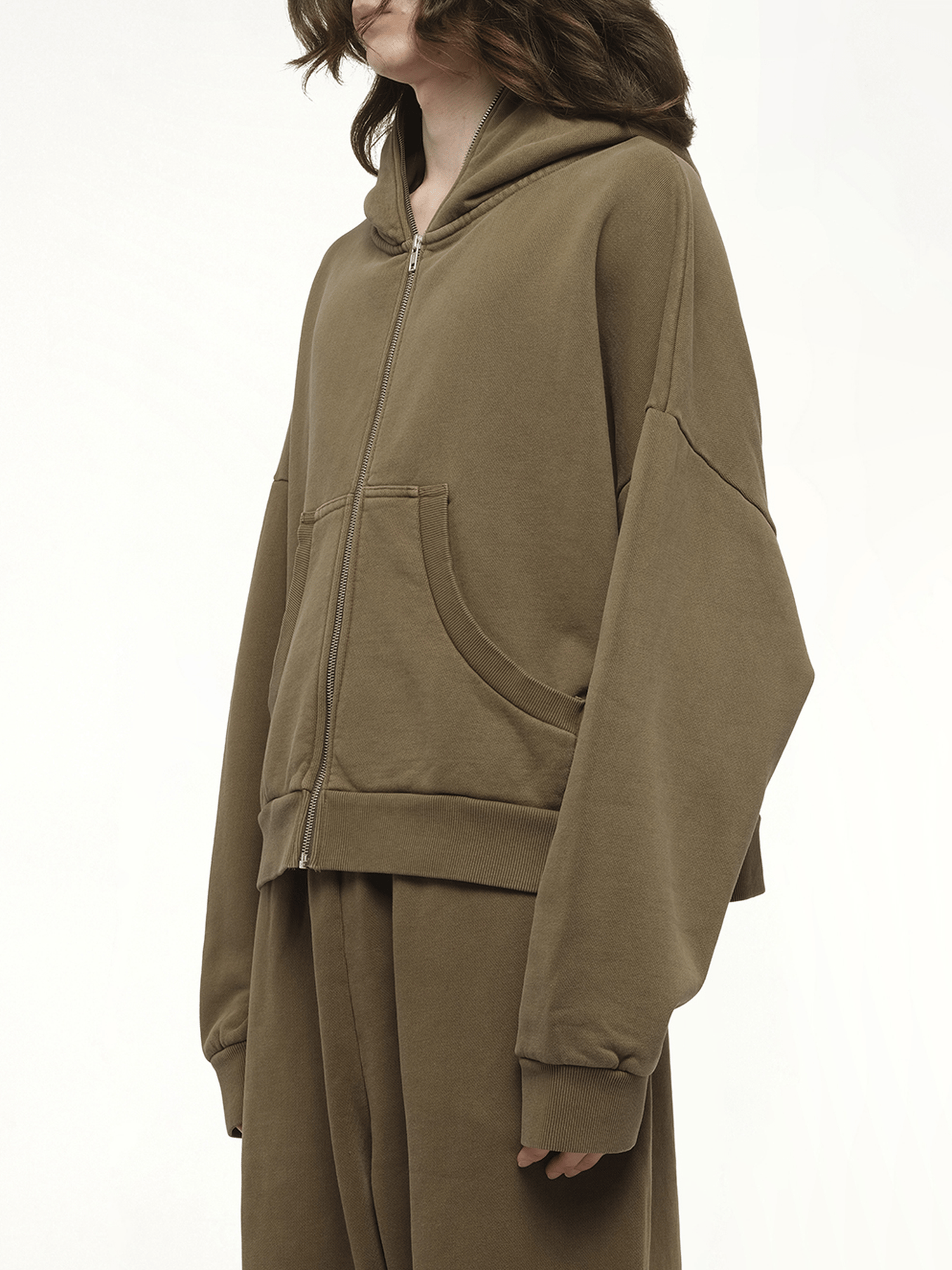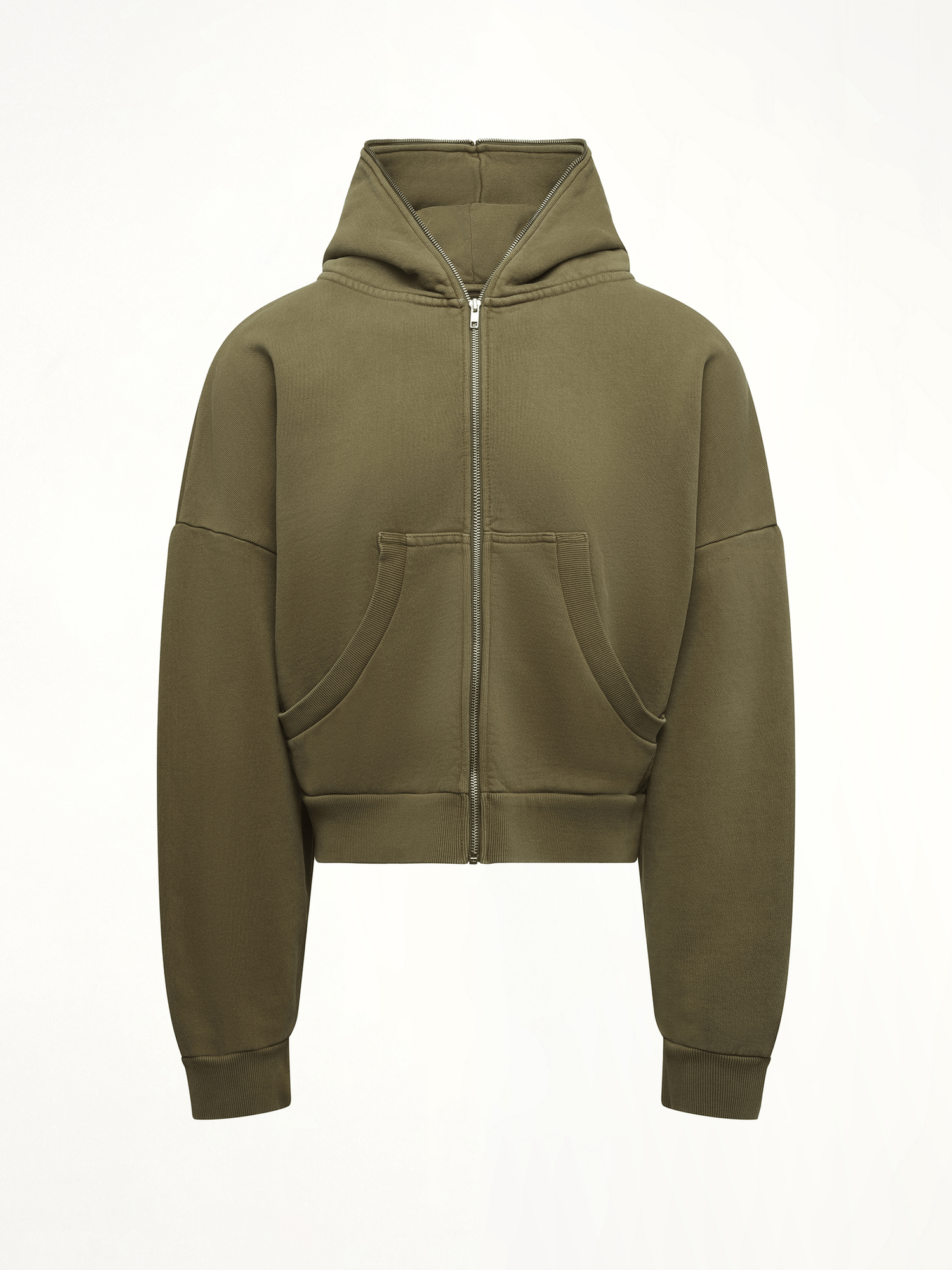ENTIRE STUDIOS's Eternal Zip Hoodie in Military is a versatile and stylish addition to your wardrobe. This hoodie combines comfort with a sleek design, perfect for any casual outing.