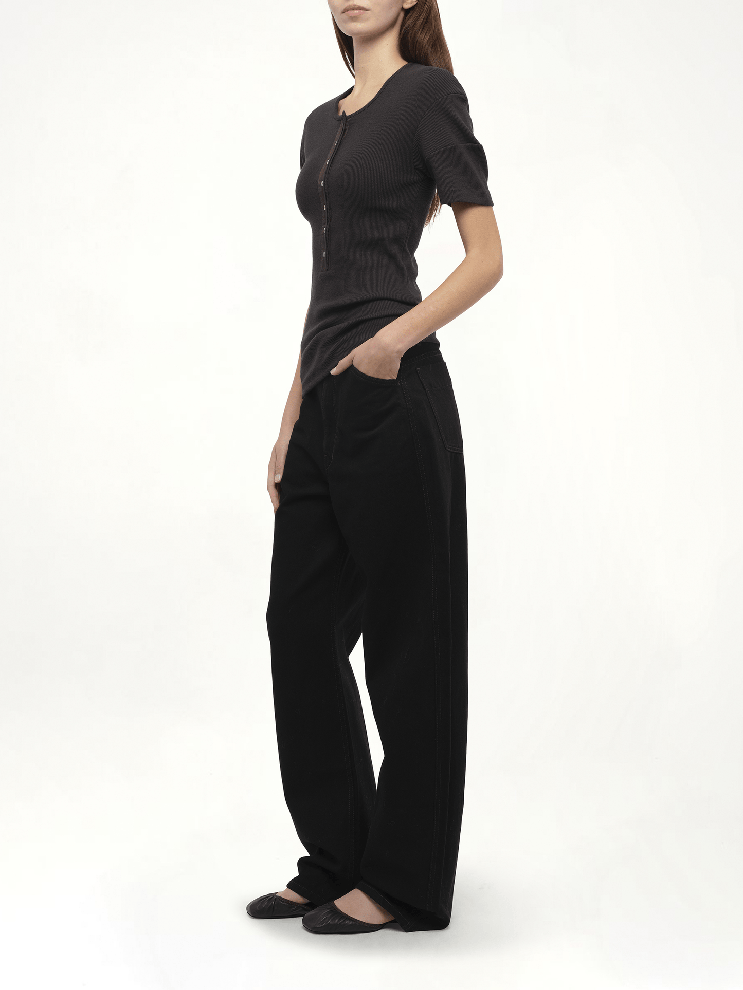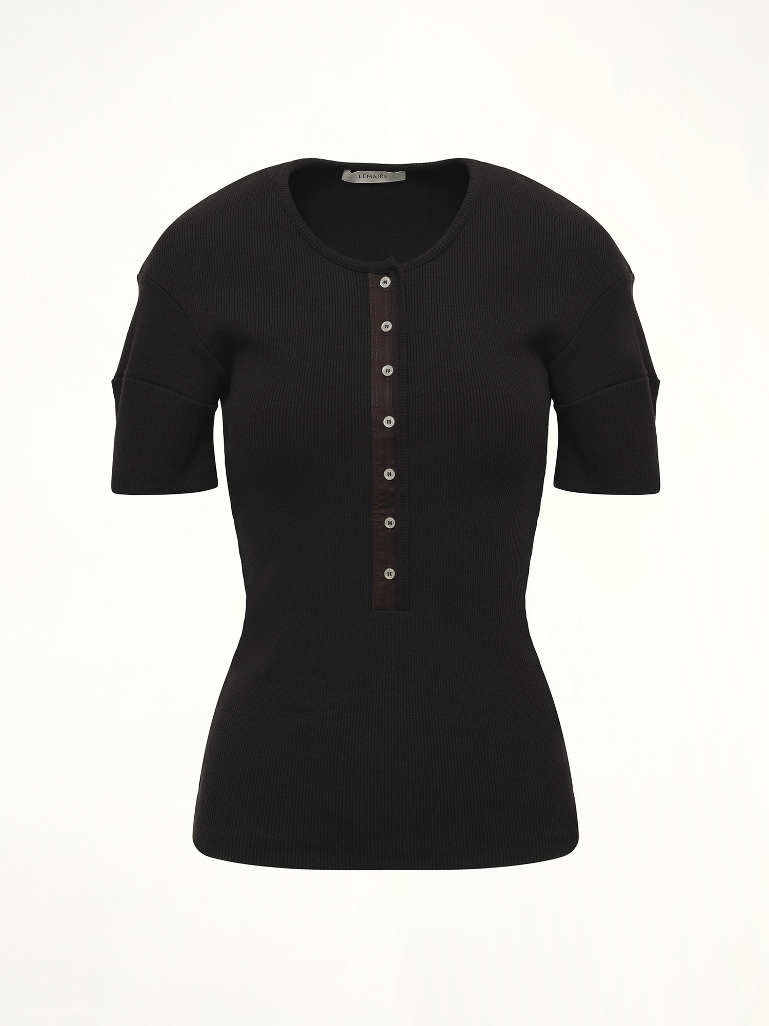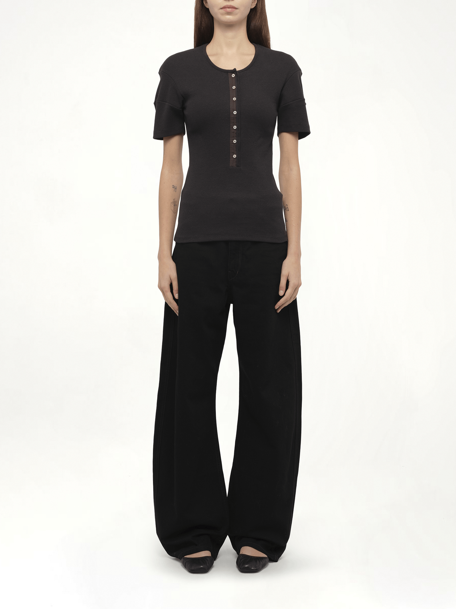 LEMAIRE's Fitted Henley in Jet Black is a sophisticated blend of comfort and style, perfect for any modern wardrobe. Elevate your everyday look with this versatile piece.