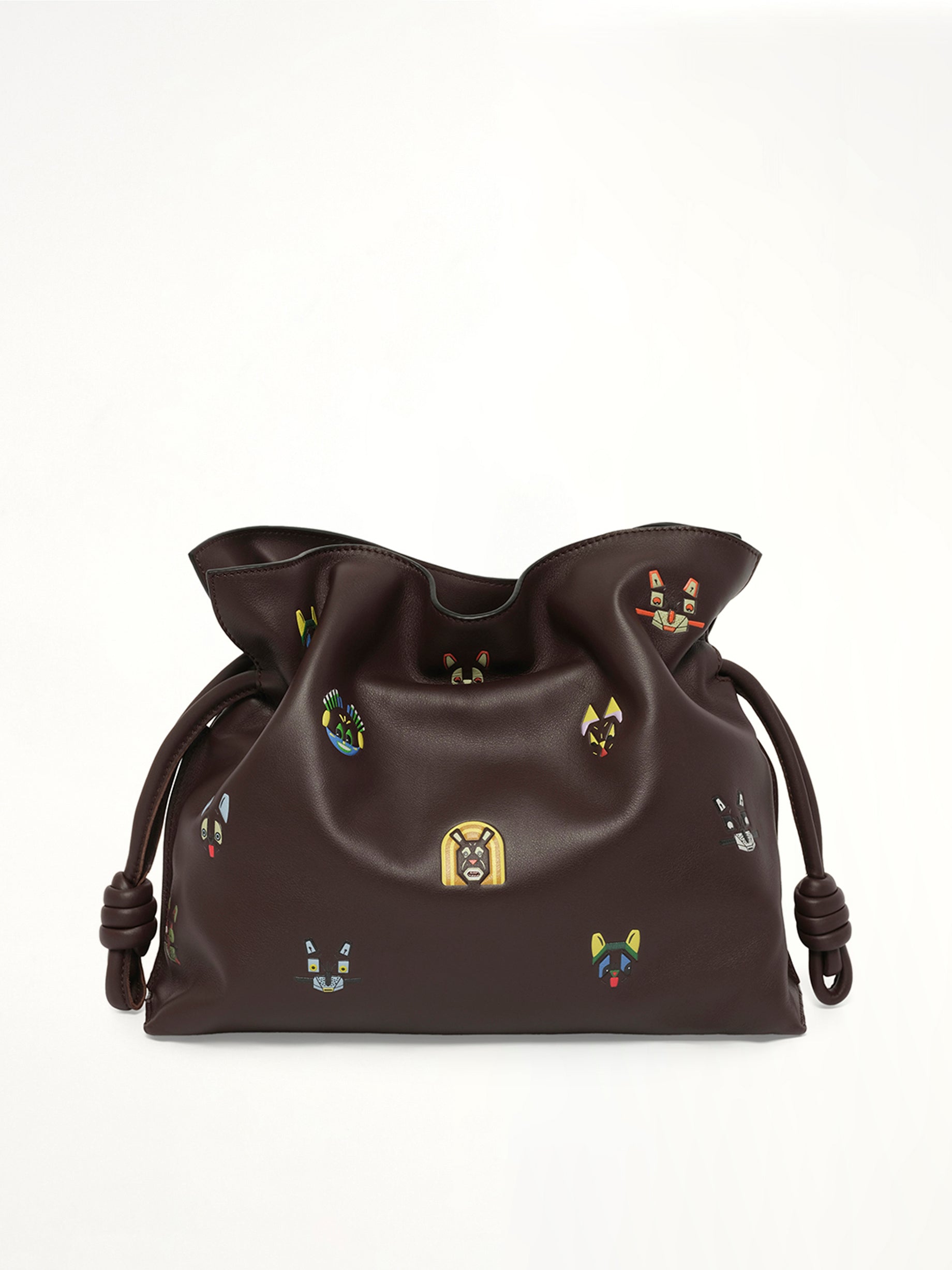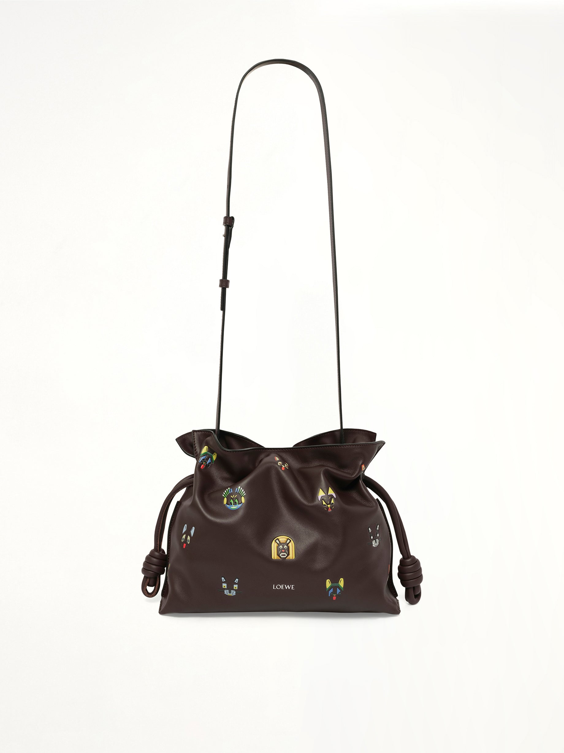 Loewe's Flamenco Clutch Cats Medium Bag in Brown is a stylish and playful accessory that combines elegance with a touch of whimsy. Perfect for both casual outings and sophisticated events, this bag is a versatile addition to any wardrobe.