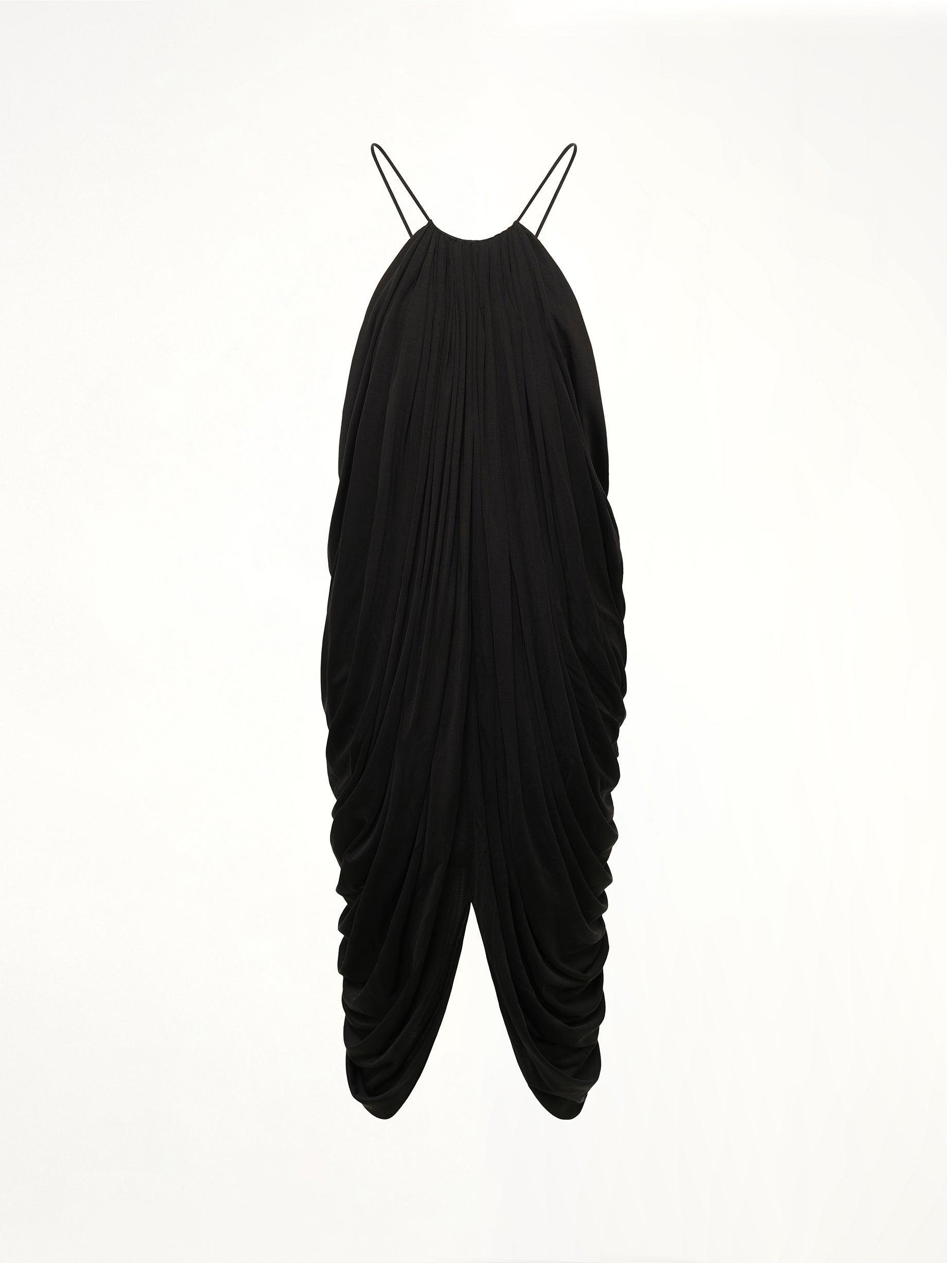 Loewe's Draped Dress in Black is a sophisticated and elegant piece that exudes timeless style. Perfect for any formal occasion, this dress features a flattering silhouette and exquisite detailing.