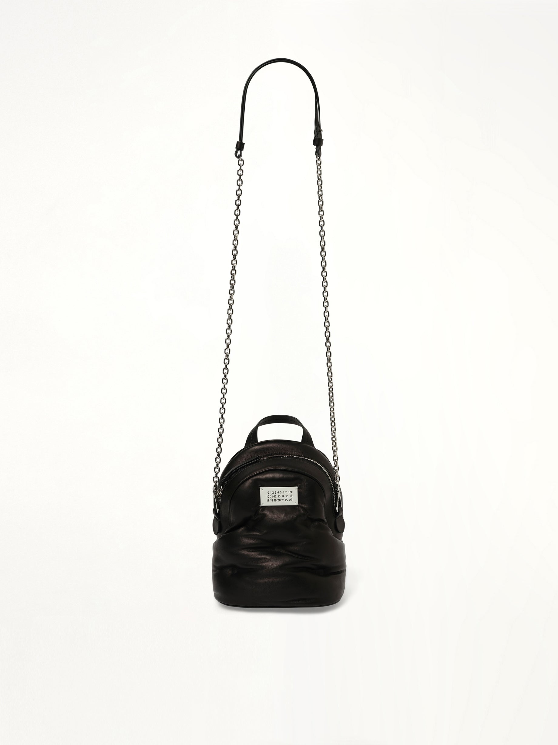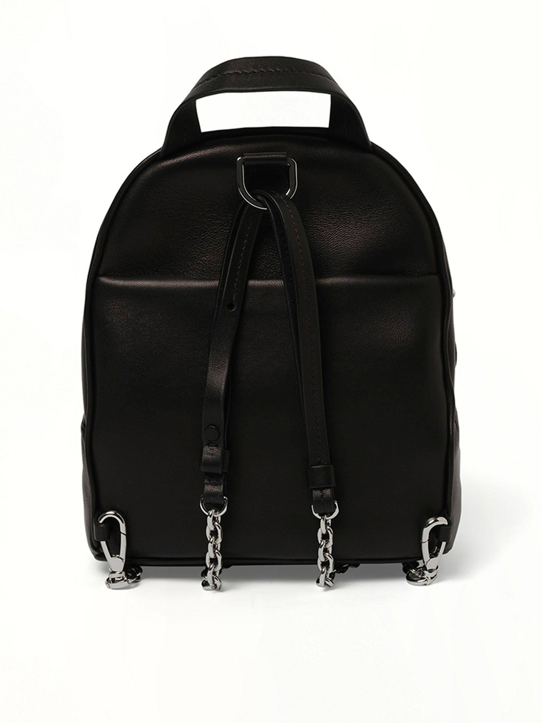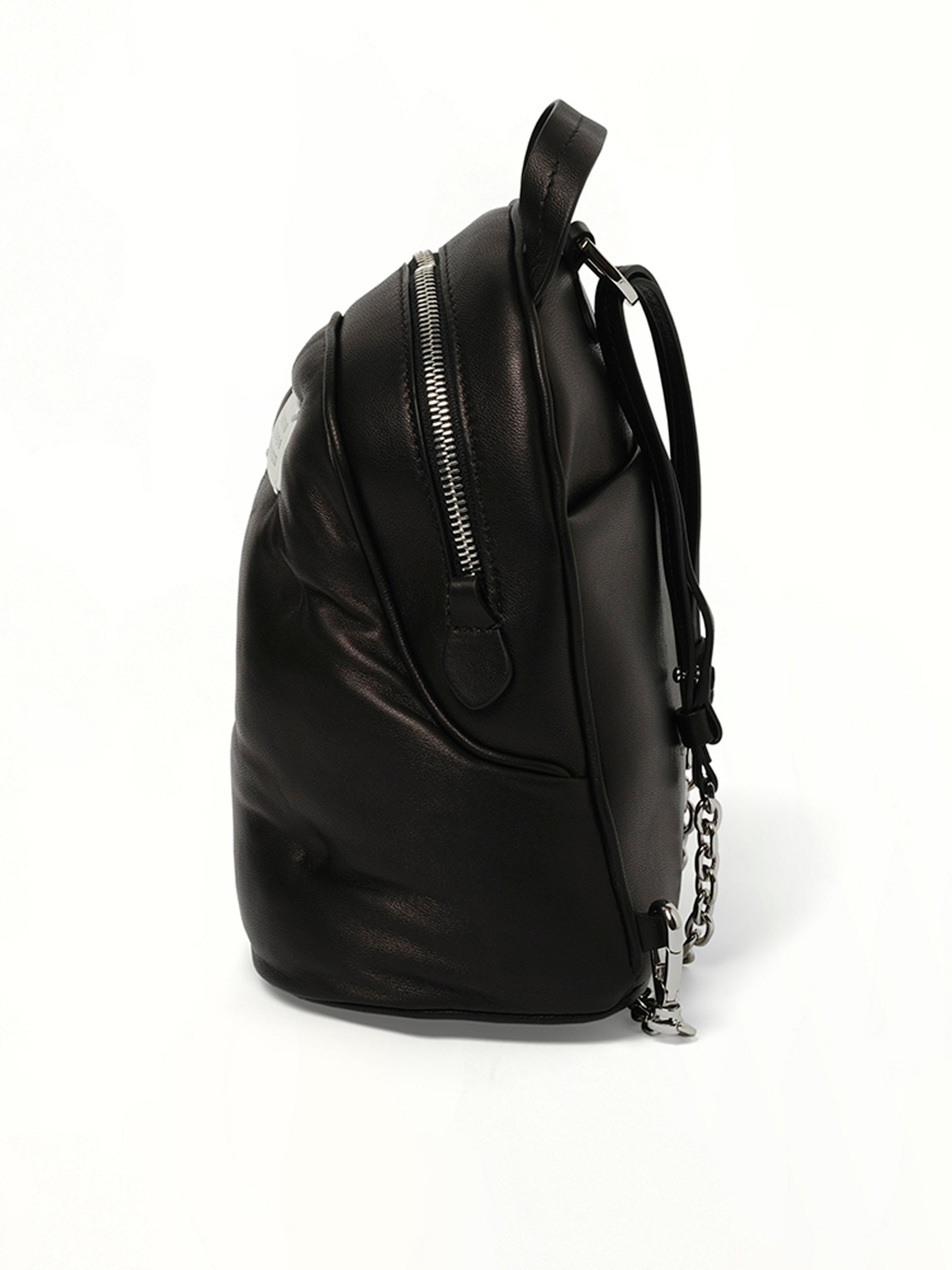 Quilted backpack in black leather with signature number logo in front and adjustable shoulder straps with chain detail With this backpack, you'll carry timeless sophistication on your shoulders. It's crafted from luxurious black leather with a signature number logo and delicate chain details. And, with adjustable shoulder straps, you can make sure it's always a perfect fit.