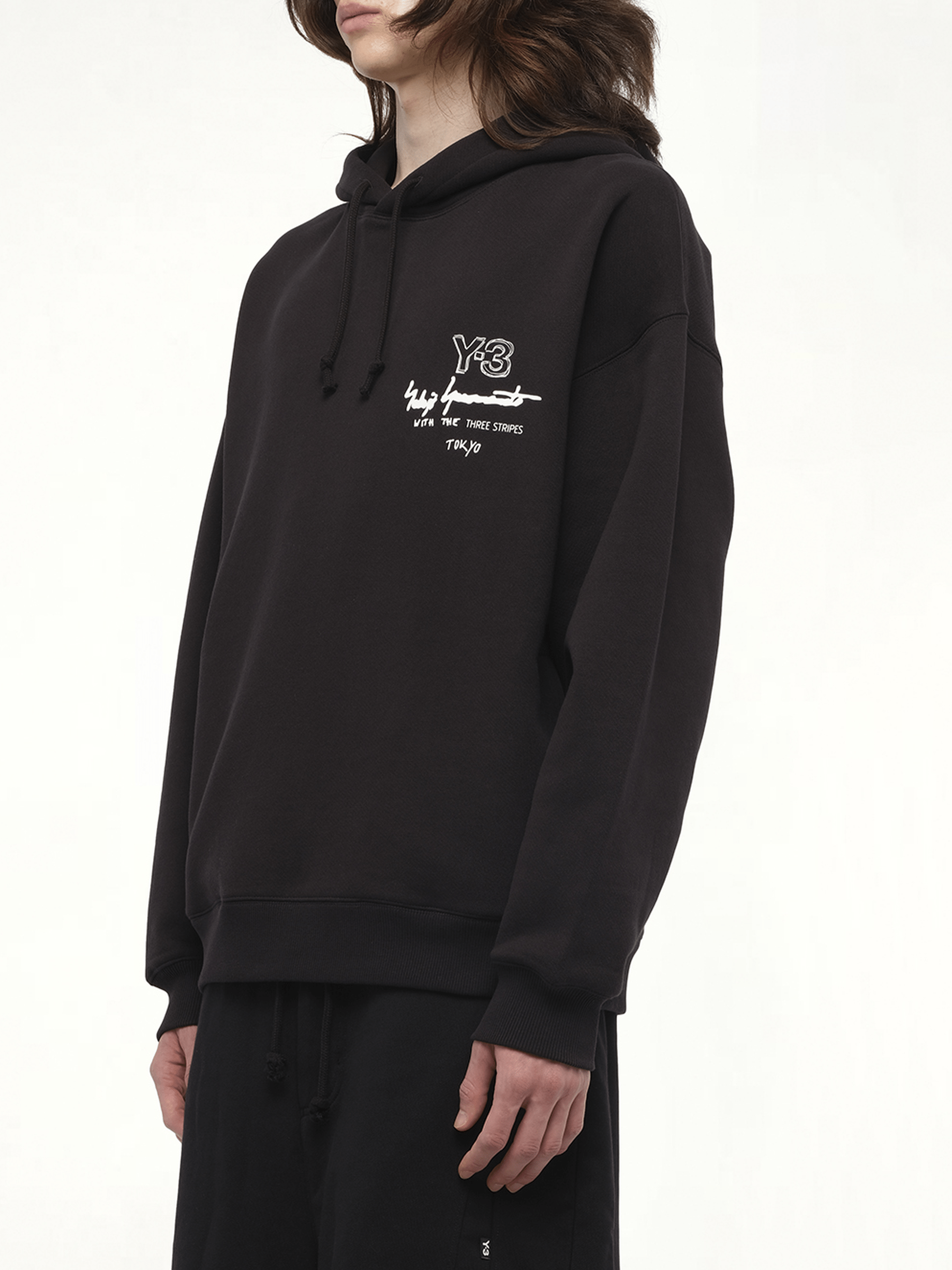 Y-3's Graphic Ft Hoodie in Black combines contemporary style with comfort, making it a versatile addition to any wardrobe. Elevate your casual look with this standout piece that effortlessly blends fashion and function.