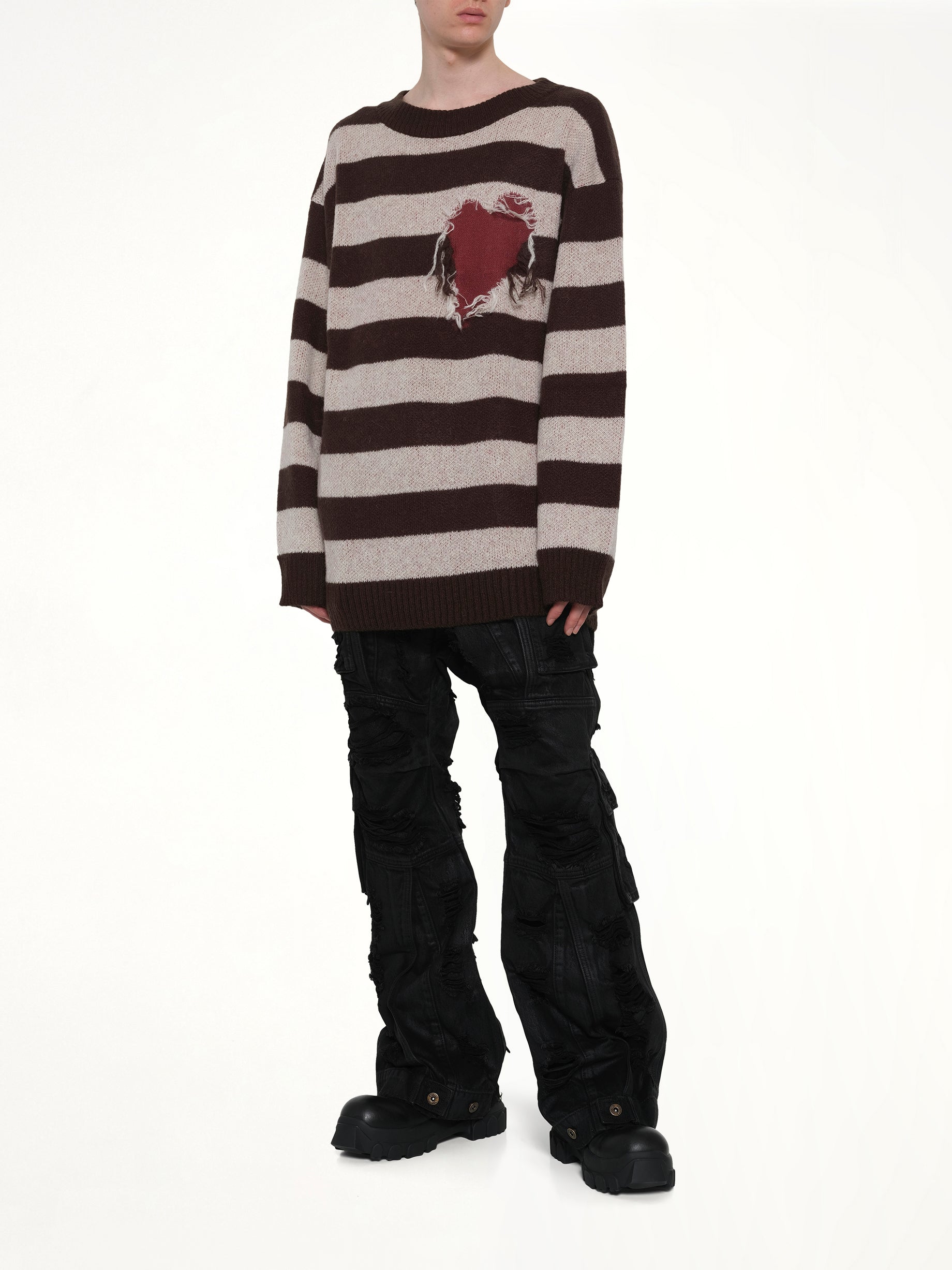 We11done's Grunge Stripe Pullover in Brown is a stylish and versatile piece that adds a touch of edge to any wardrobe. Its unique design and comfortable fit make it a must-have for fashion-forward individuals.