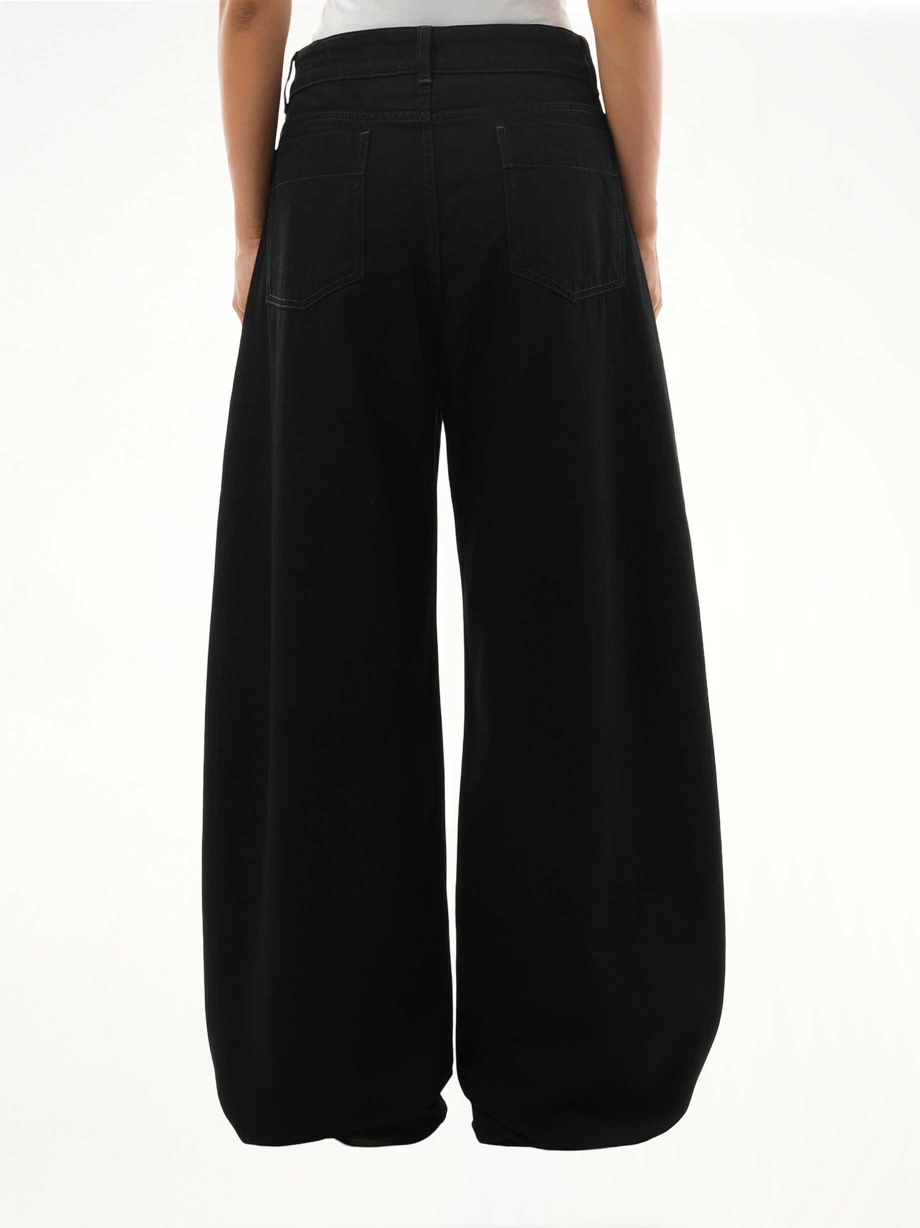 As industry experts, we present our high waisted curved denim pants in black. Made with a flattering design, they offer both style and comfort. The high waist and curved fit accentuate the natural curves of your body, giving you a confident and chic look.