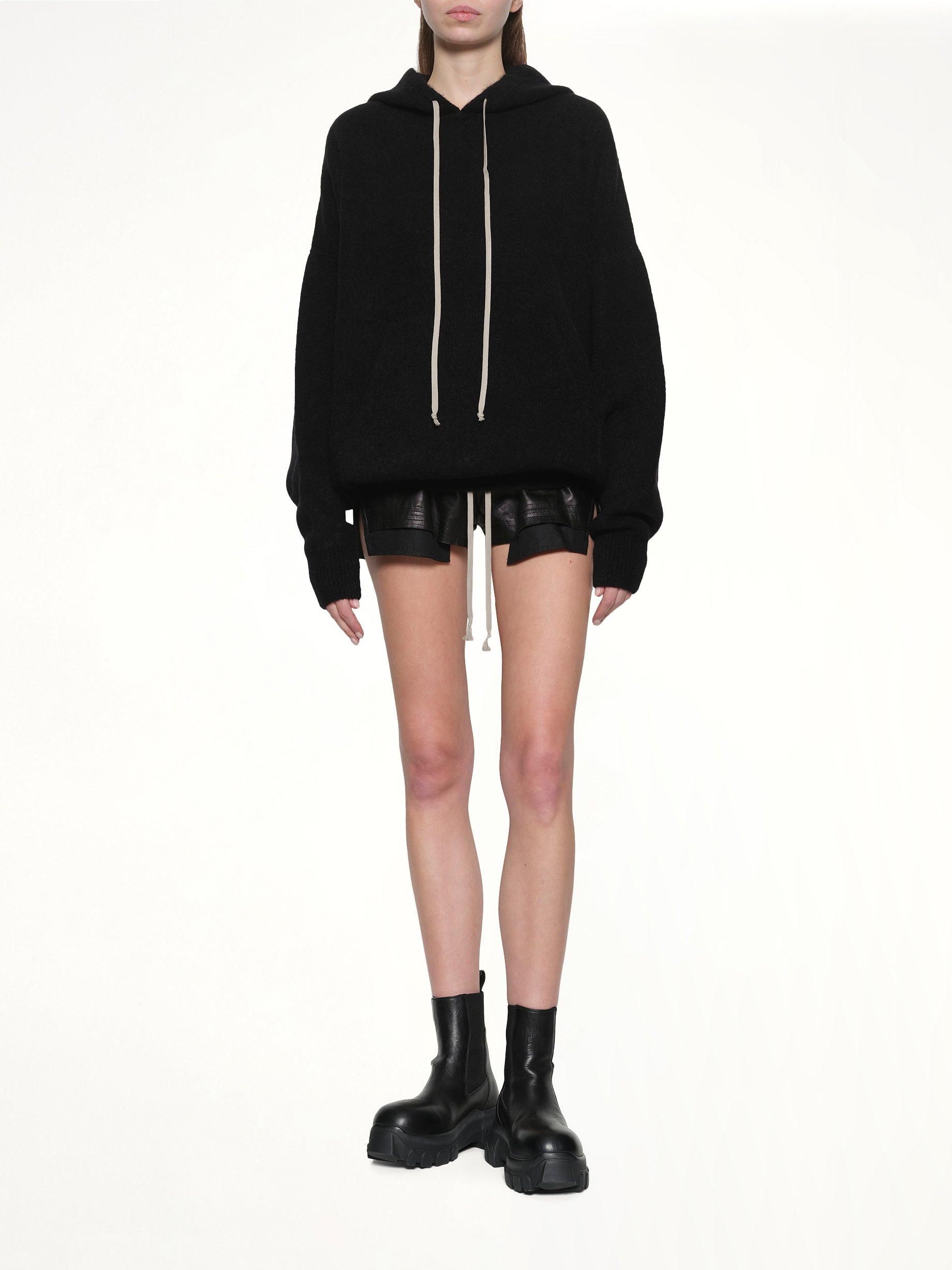 Rick Owens's Hun Hoodie in Black is a statement piece that combines avant-garde design with everyday functionality. This hoodie offers a unique silhouette that stands out while providing comfort and versatility.