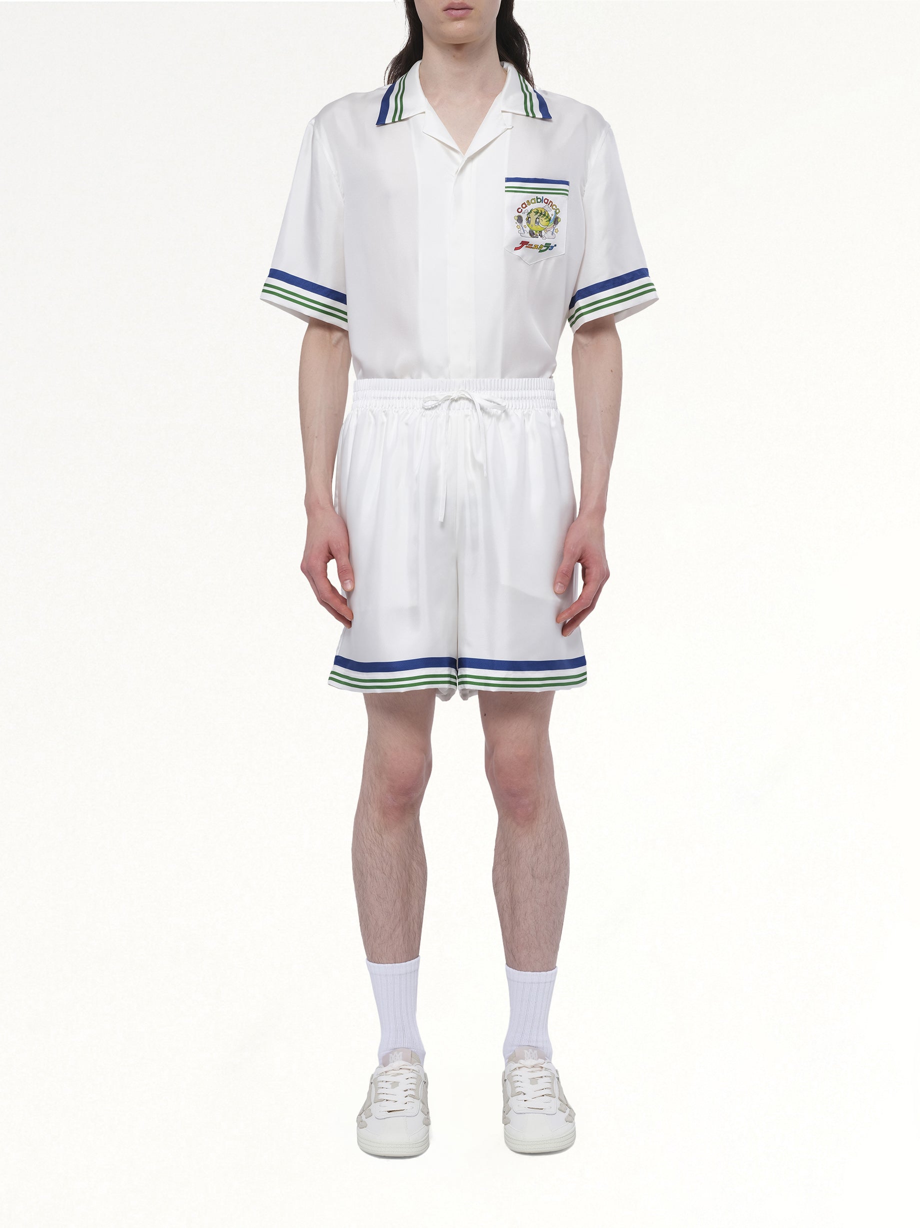 Casablanca's Kawaii Tennis Boy Shorts in Multicolour is a vibrant addition to any wardrobe, offering a playful yet stylish look. Perfect for both casual outings and sporty activities, these shorts combine comfort with a unique design.