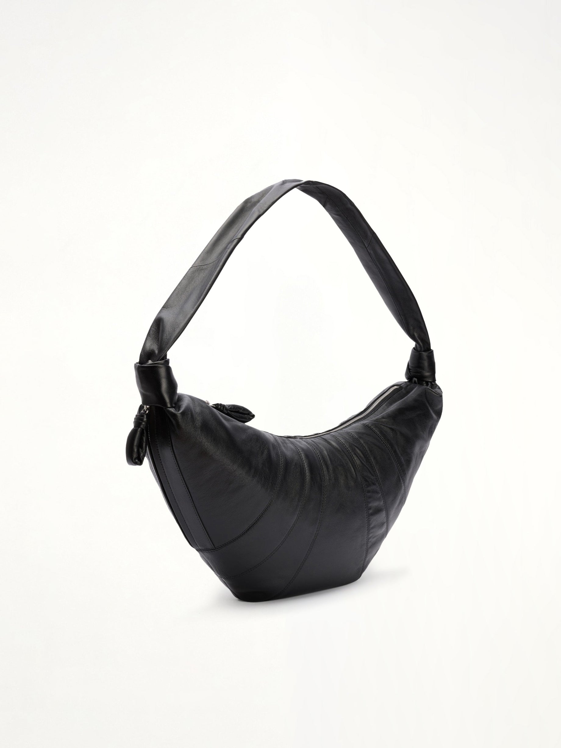 Lemaire's Lambskin Large Croissant Bag in Black is a sophisticated accessory that combines elegance with functionality. Its unique shape and spacious interior make it a versatile choice for any occasion.