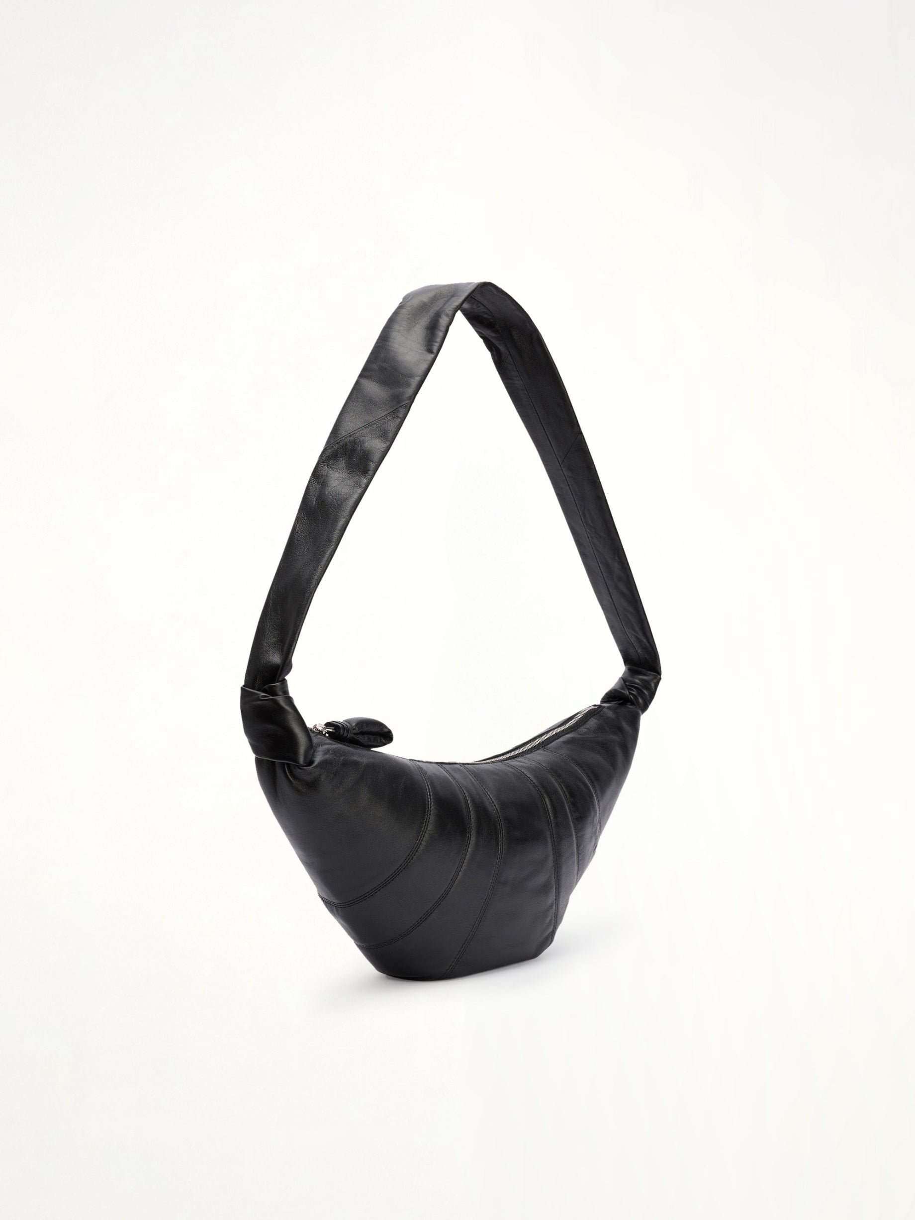 Expertly crafted from luxurious lambskin leather, the Medium Croissant Bag in Black is the perfect blend of elegance and functionality. Its spacious interior and stylish design make it a versatile choice for any occasion.