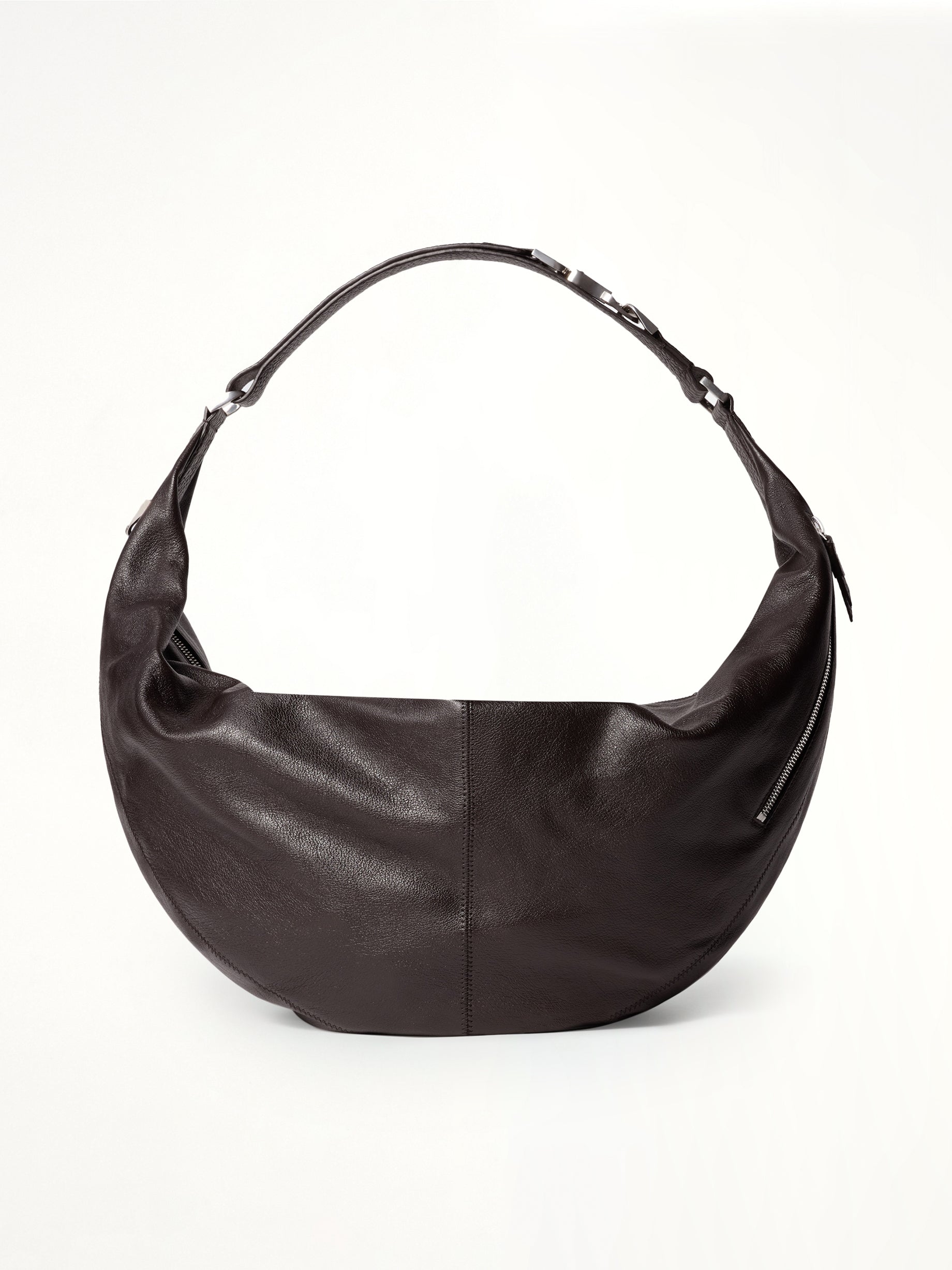 Lemaire's Large Quiver Clip Bag in Dark Chocolate is a sophisticated accessory designed for the modern individual. Its sleek design and rich color make it a versatile addition to any wardrobe.