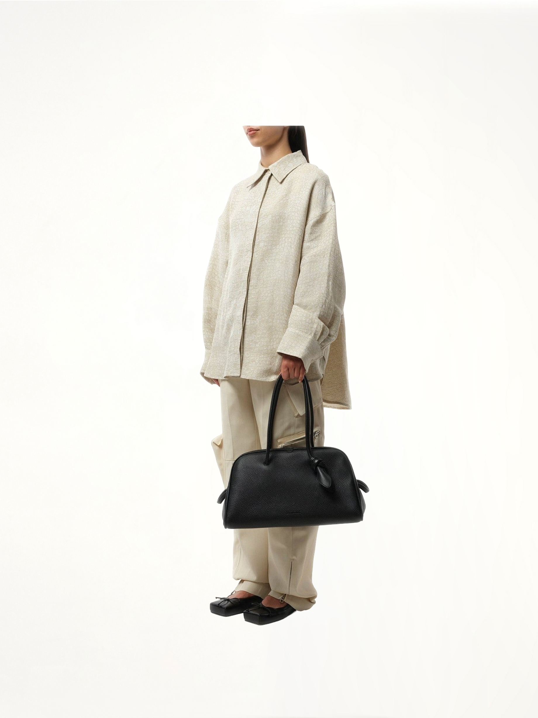 Jacquemus's Le Turismo in Black is a structured shoulder bag crafted from smooth calf leather. The curved silhouette and refined detailing give it a timeless, functional appeal.