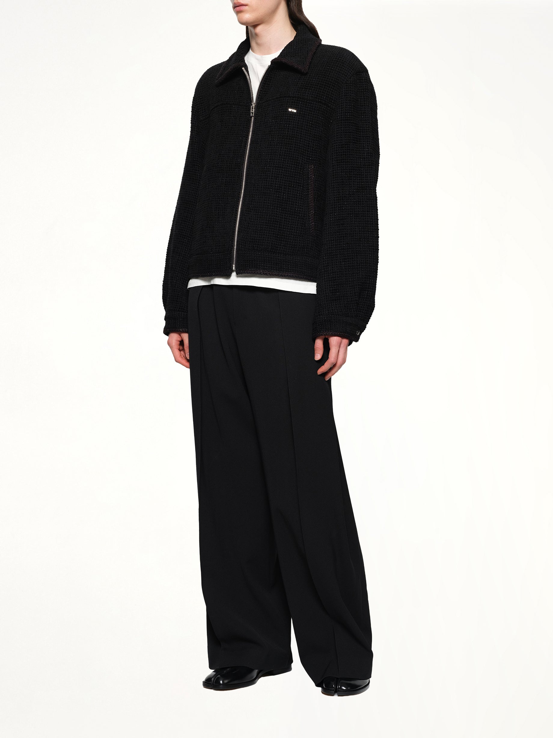 Wooyoungmi's Light Blouson in Black is a sleek and versatile outerwear piece designed for modern style. Its minimalist design and tailored fit make it a perfect addition to any wardrobe.