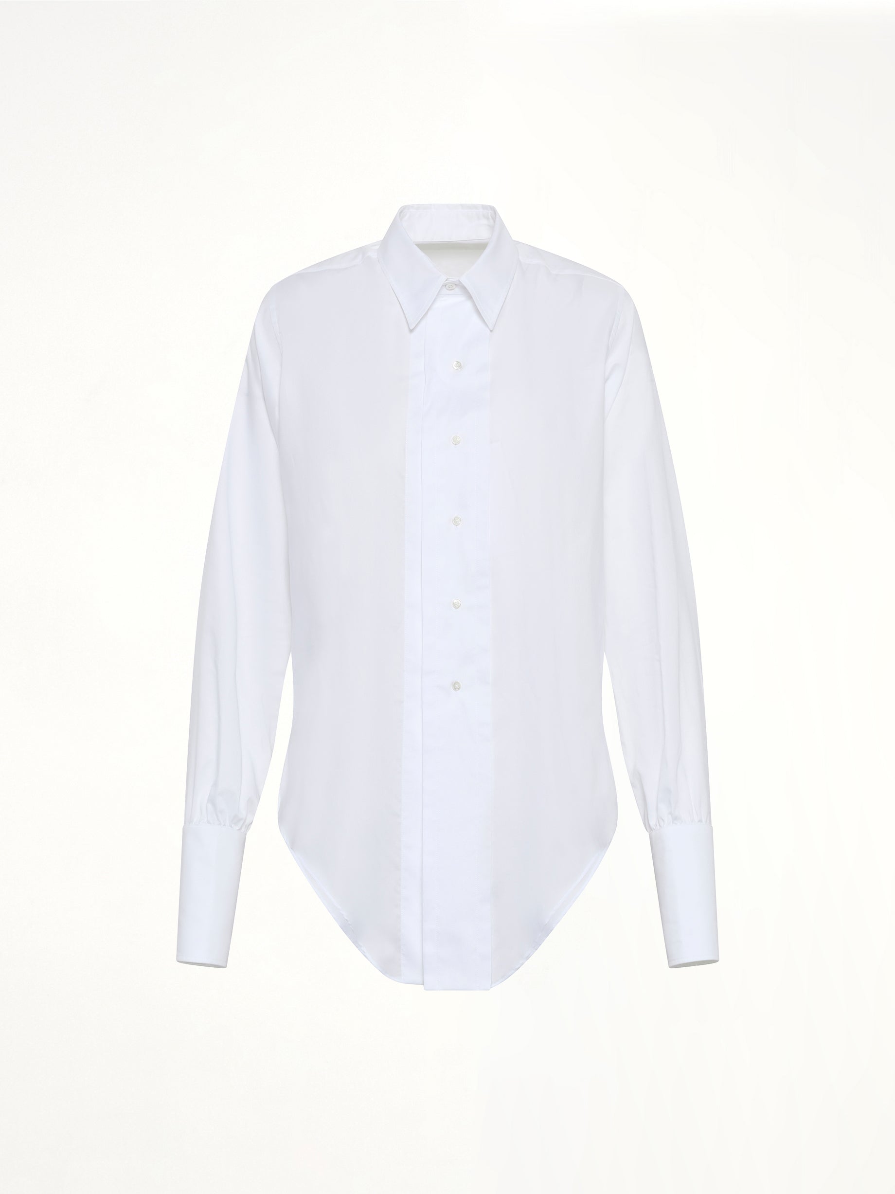 Maison Margiela's Long-sleeved Shirt in White is a sophisticated addition to any wardrobe, offering a timeless design with a modern twist. Perfect for both formal and casual occasions, this shirt embodies elegance and versatility.