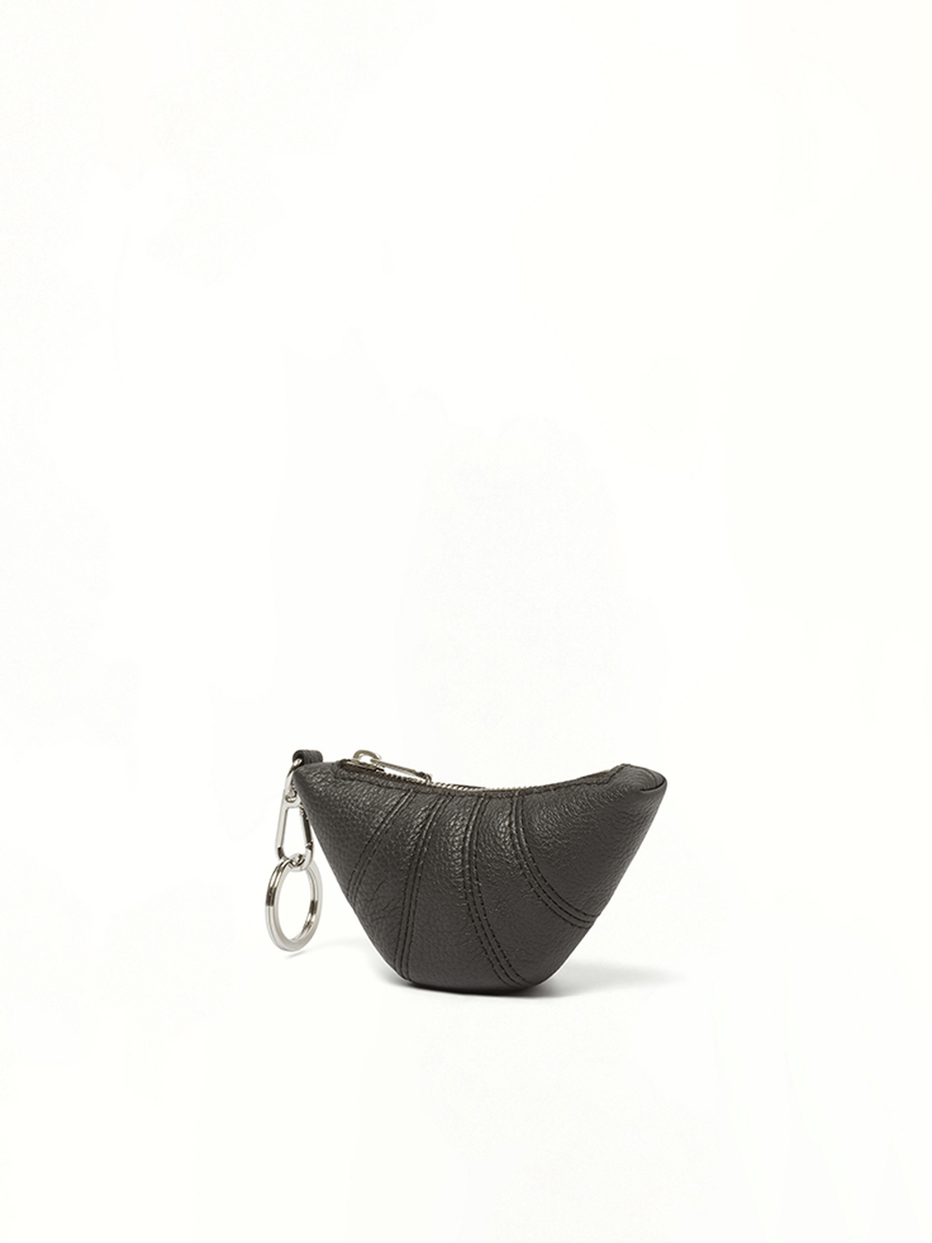 Lemaire's Mini Croissant Keyring in Dark Chocolate, this sleek accessory combines practicality with a touch of elegance.= Crafted from 100% cotton and 100% cow leather, this keyring is both durable and stylish. Keep your keys organized in a chic and practical way.