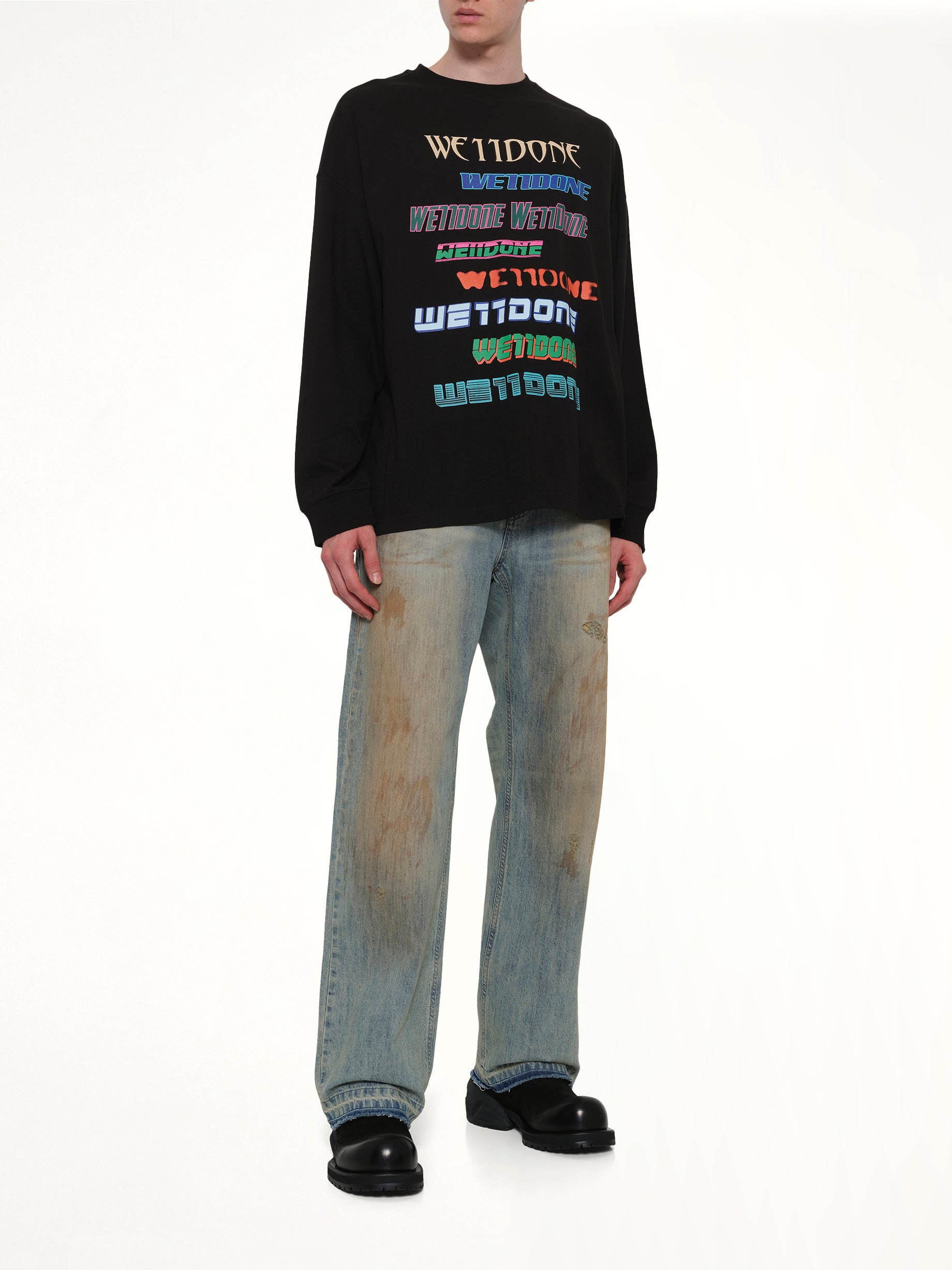 We11done's Multi Logo Long Sleeve T-Shirt in Black is a stylish and versatile addition to any wardrobe. This t-shirt features a unique design with multiple logos, offering a modern and trendy look.