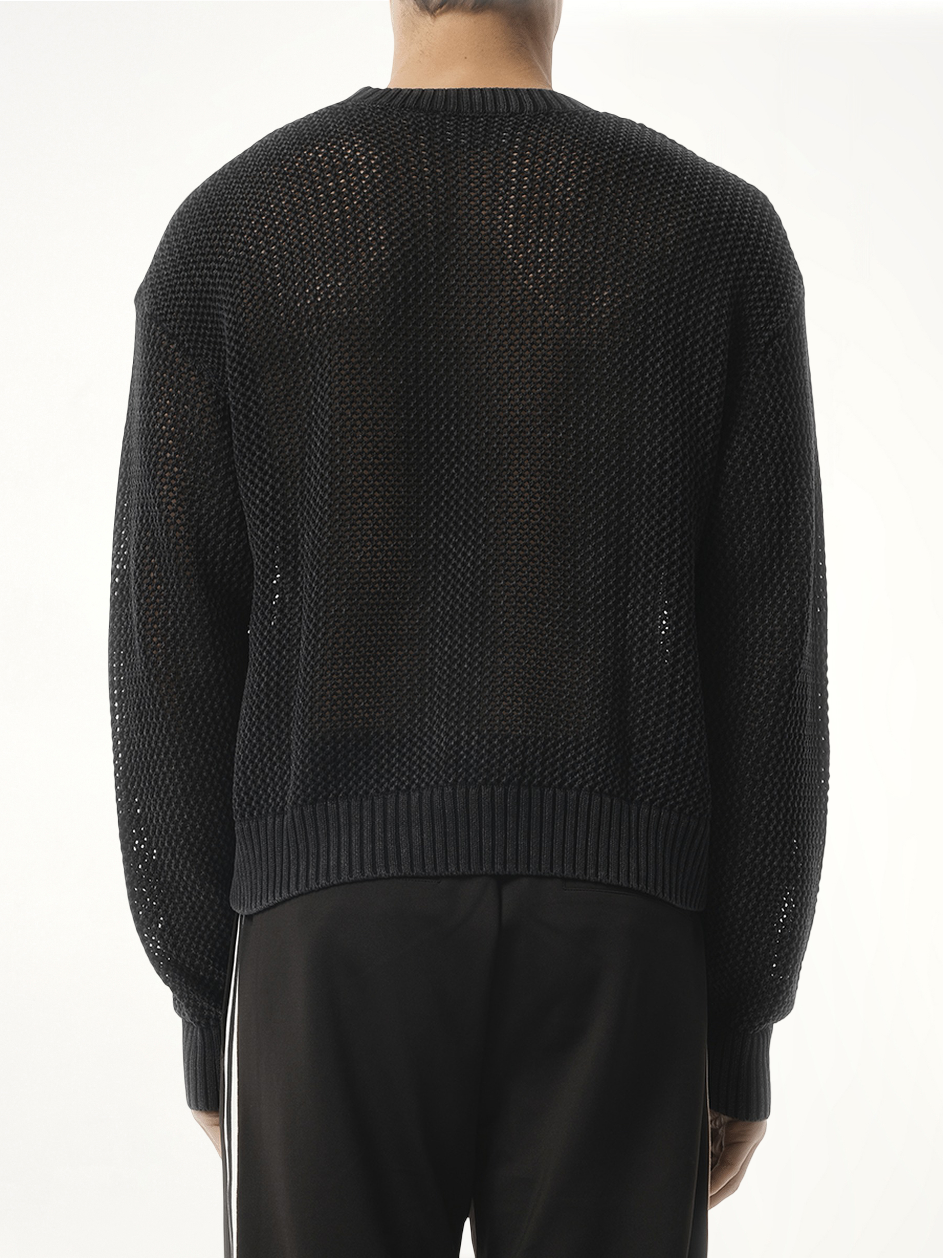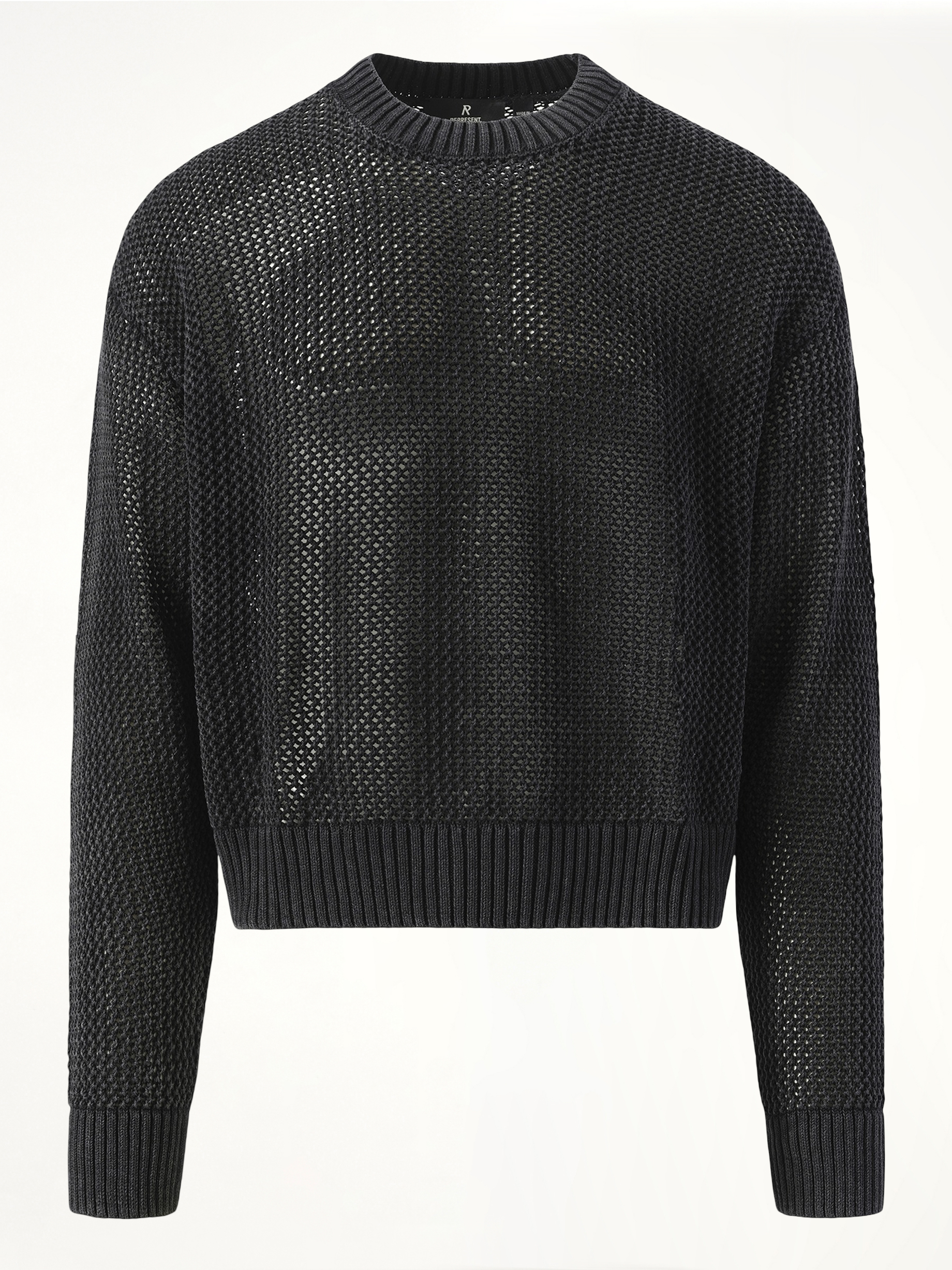 Represent's Open Gauge Knit Sweater in Jet Black combines a contemporary open-knit design with classic style. Made from 100% cotton, this sweater offers a breathable, lightweight feel with a slightly oversized fit.