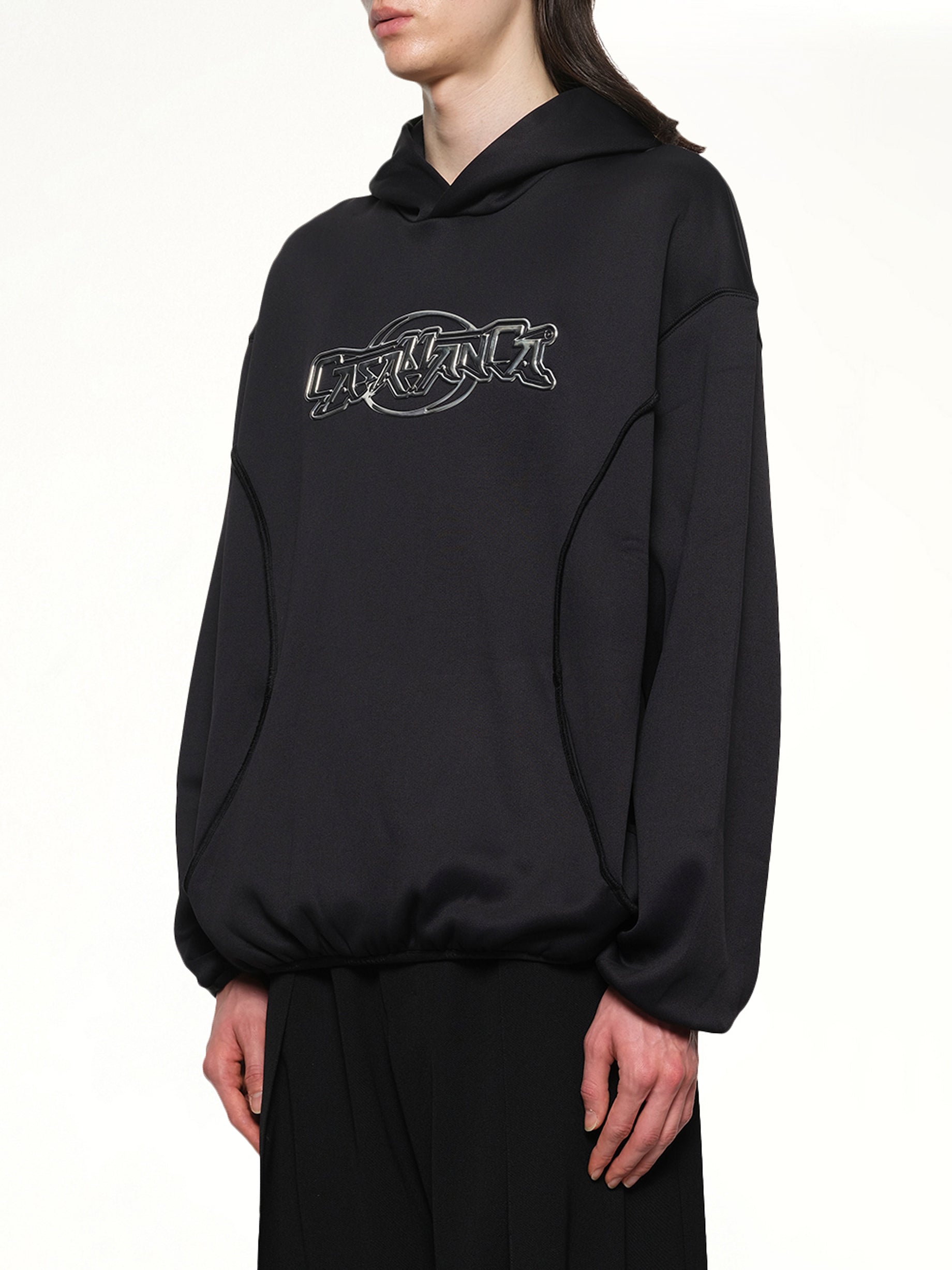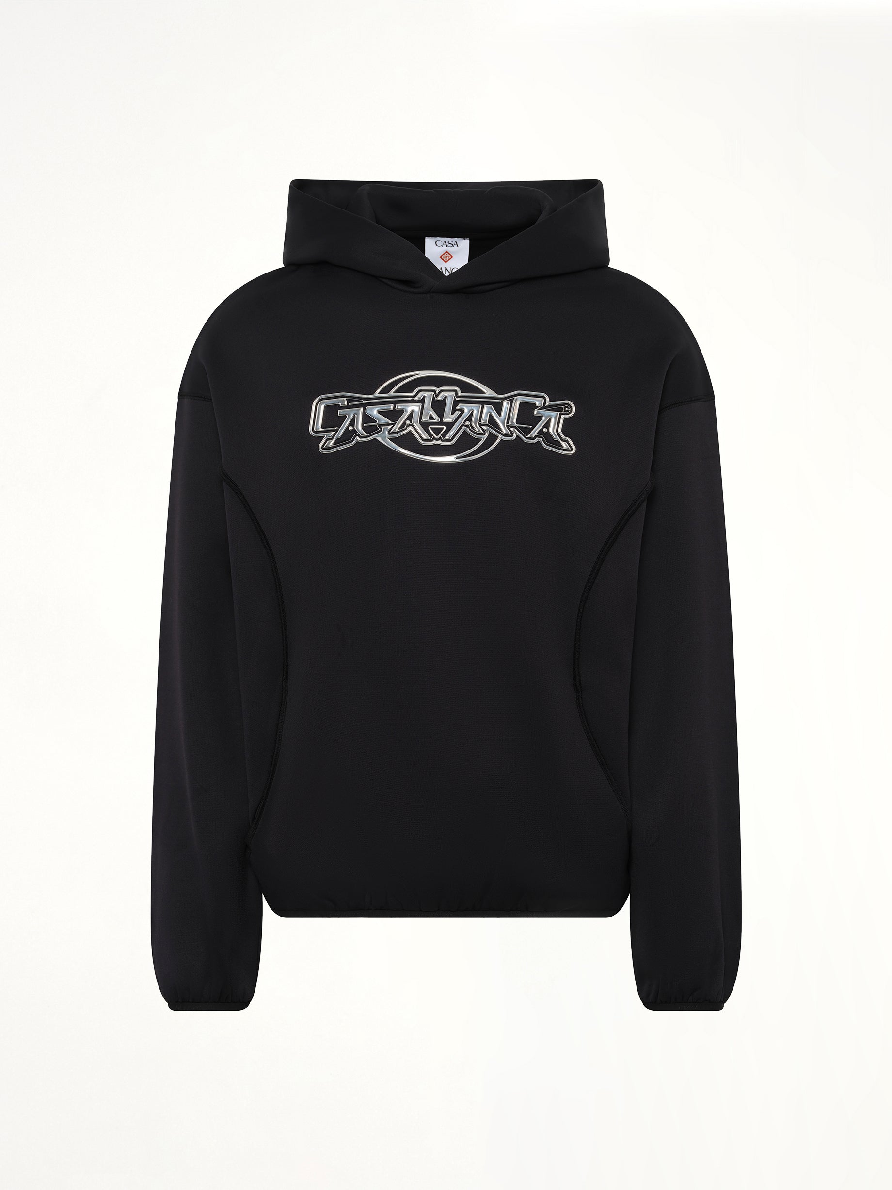 Casablanca's Oversized Panneled Hoodie in Black is a stylish and comfortable addition to any wardrobe. This hoodie combines a modern design with practical features for everyday wear.