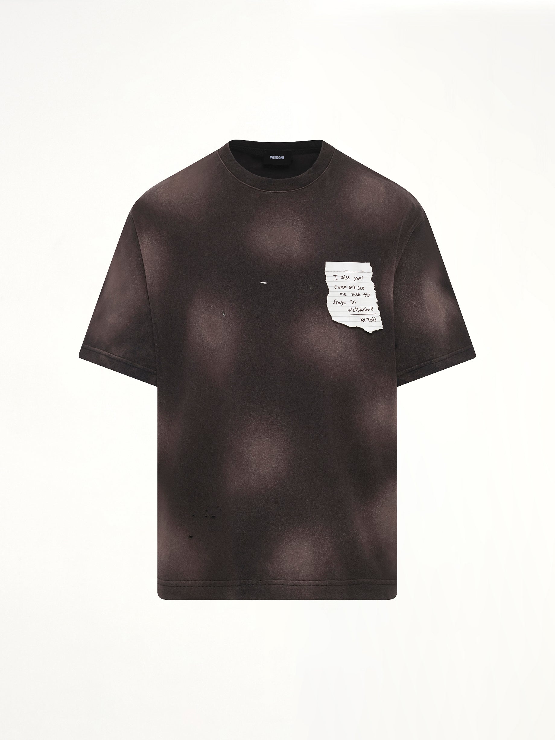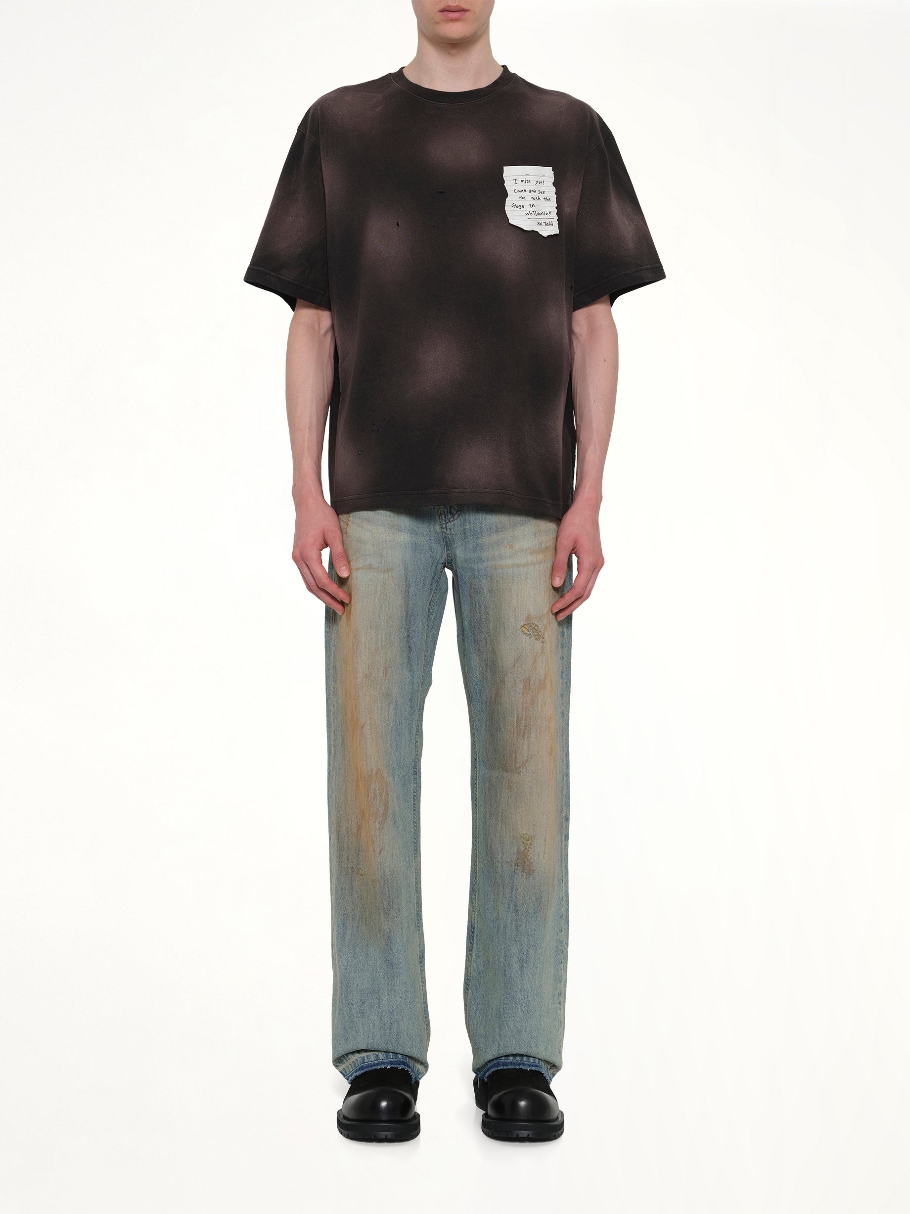 We11done's Paper Note Grunge T-Shirt in Black is a statement piece that combines edgy design with everyday comfort. This t-shirt features a unique paper note graphic that adds a touch of rebellious style to any outfit.