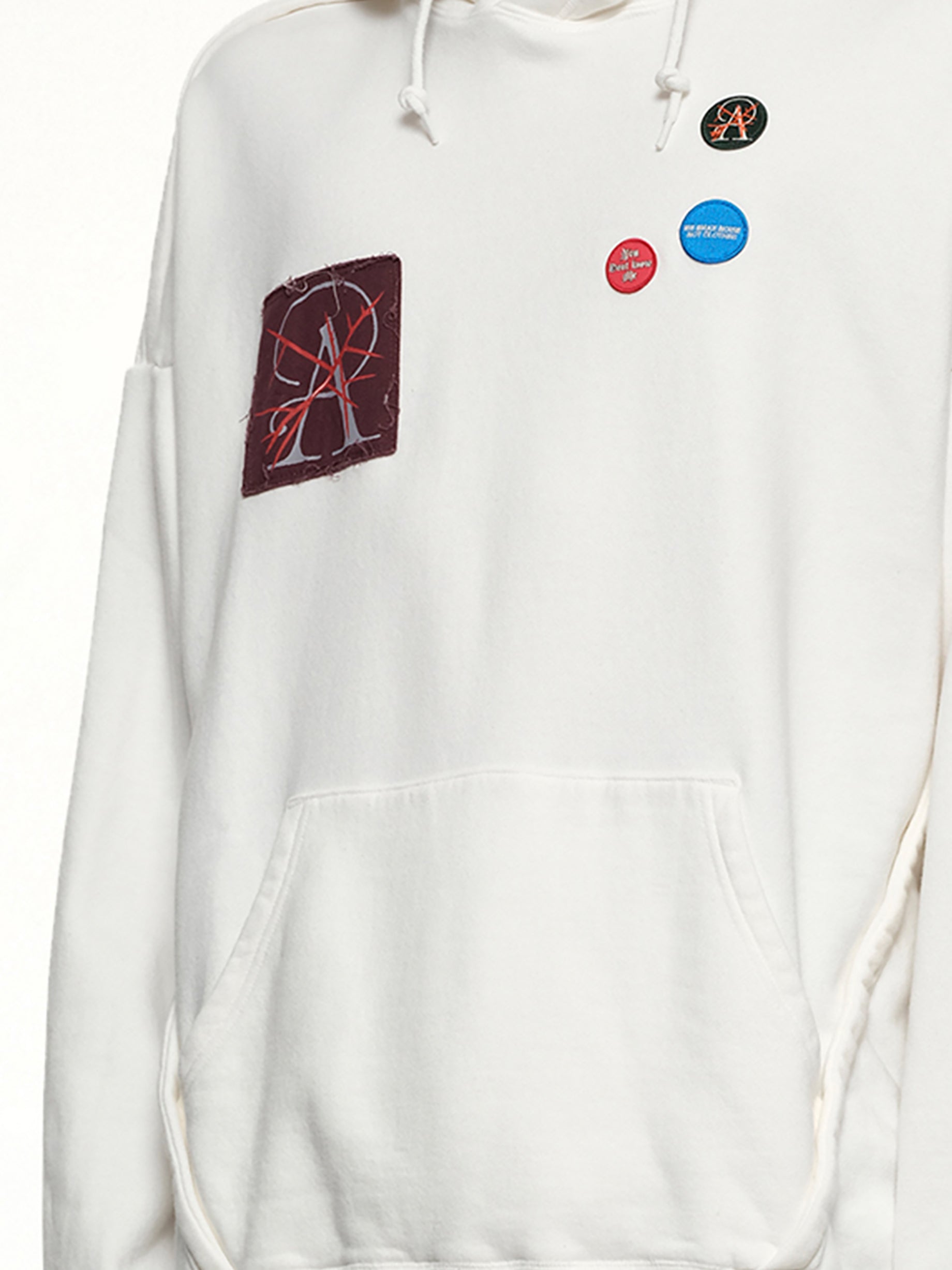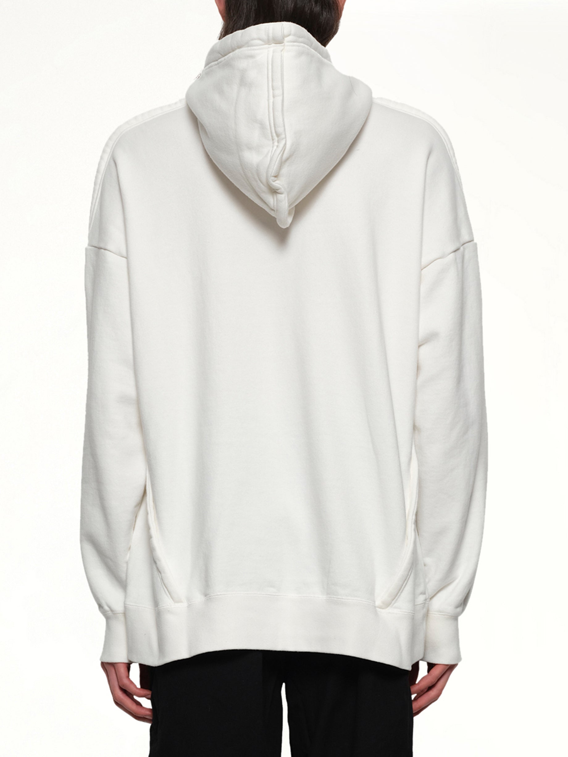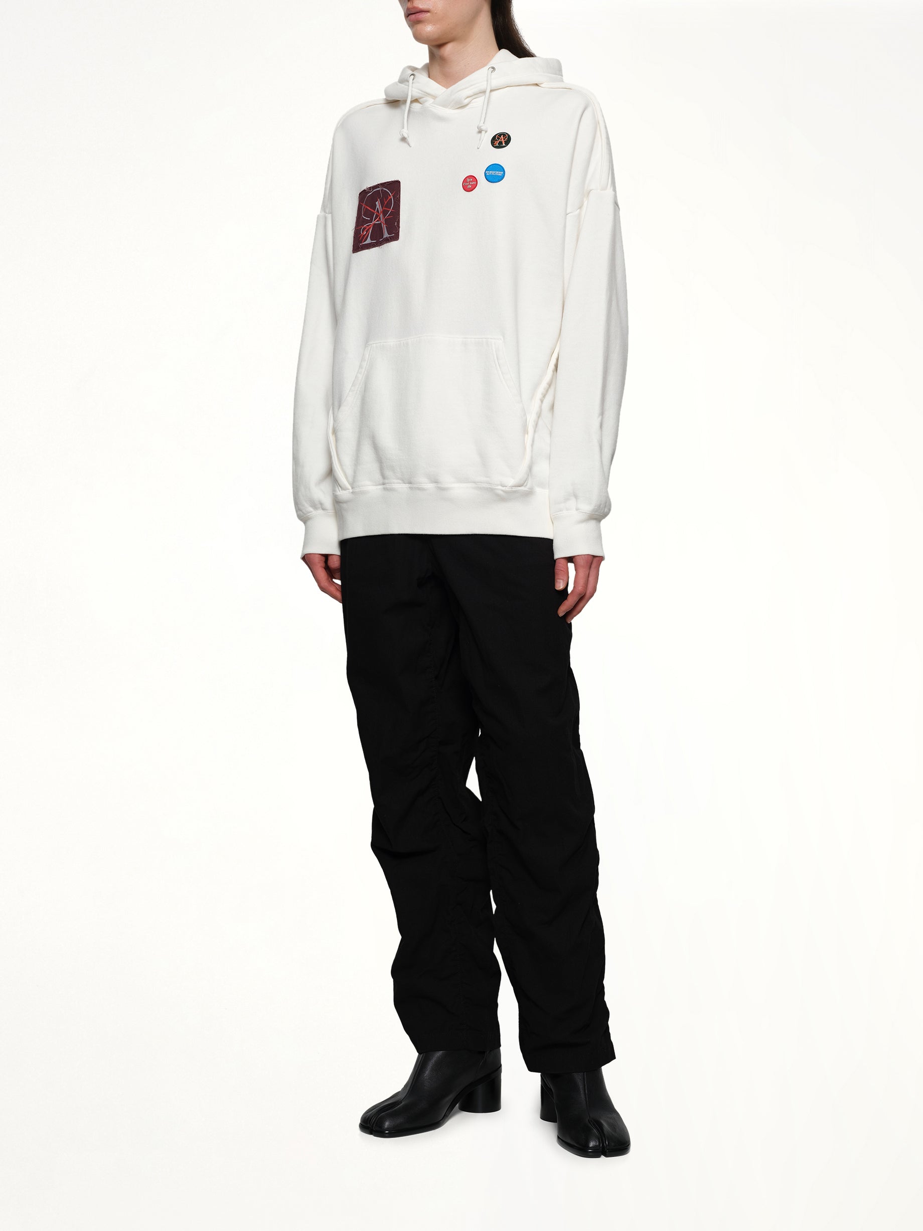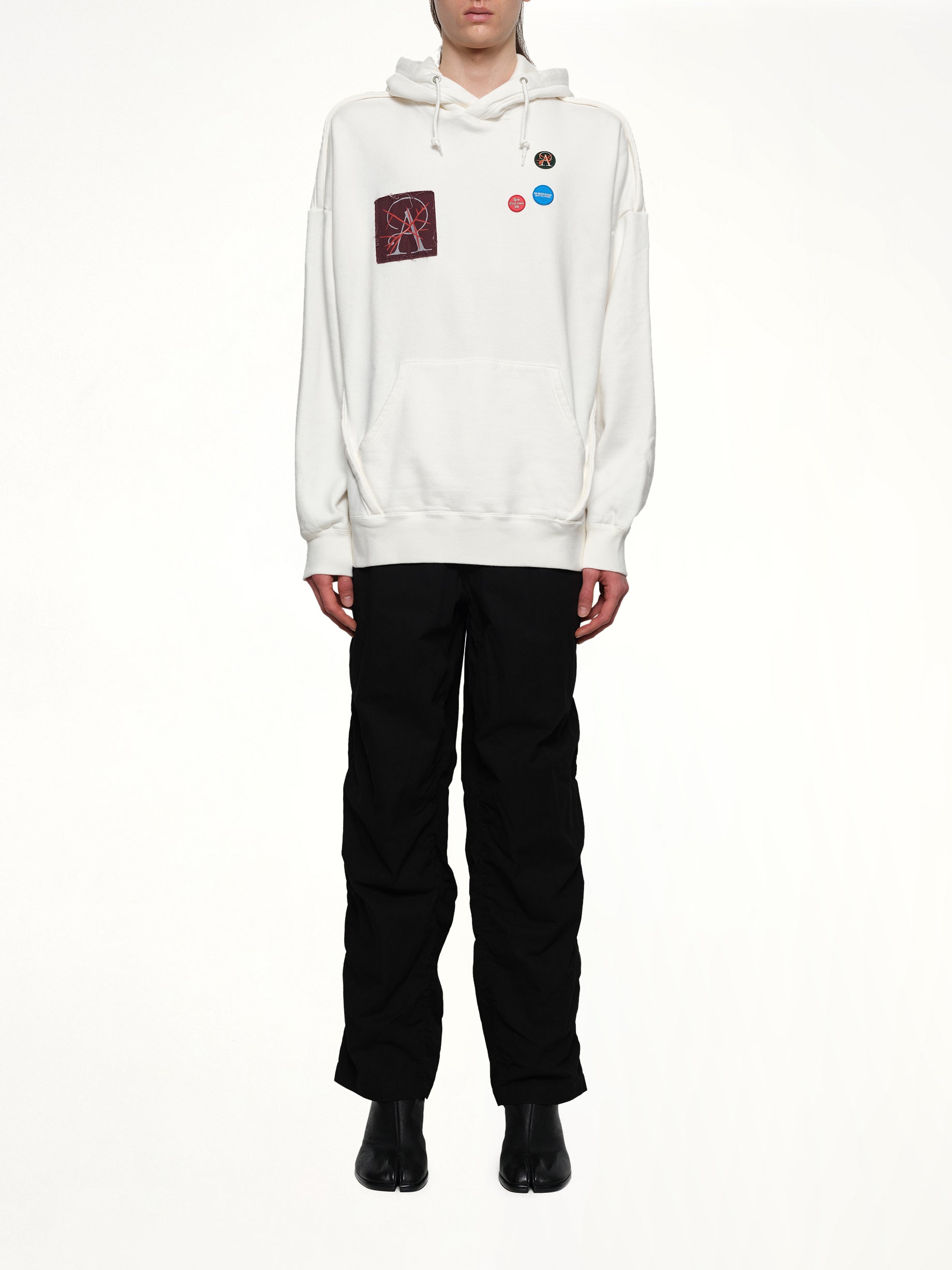 Undercover's Patches Hoodie in White is a stylish and contemporary piece that combines comfort with unique design elements. Perfect for casual wear, this hoodie stands out with its distinctive patchwork detailing.