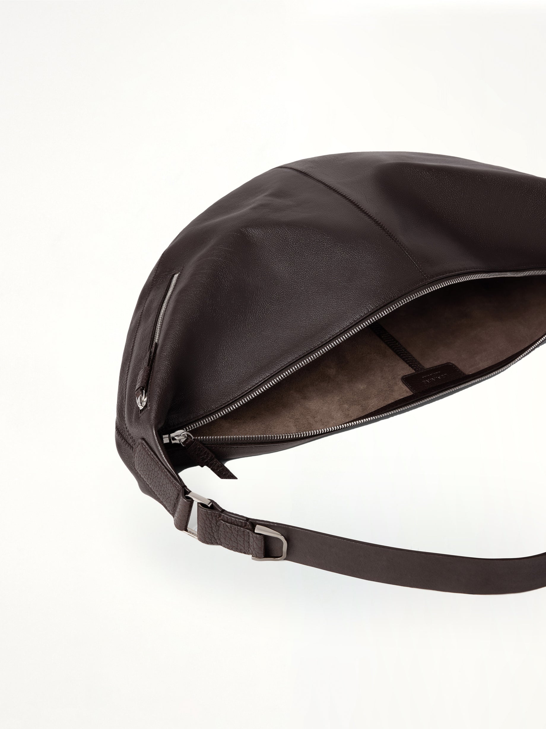 Lemaire's Quiver Clip Bag in Dark Chocolate is a sophisticated accessory designed for the modern individual. Its sleek design and rich color make it a versatile addition to any wardrobe.