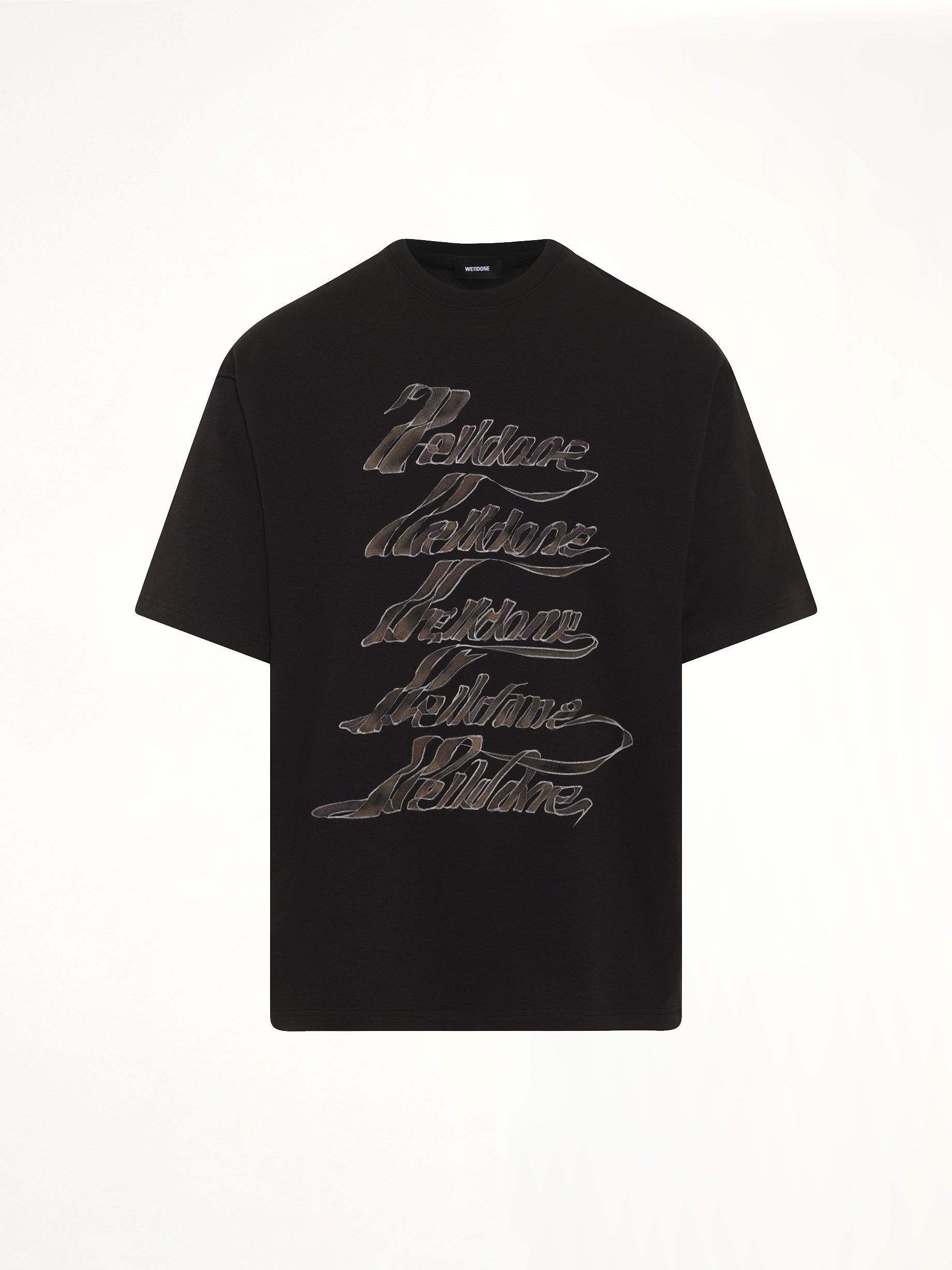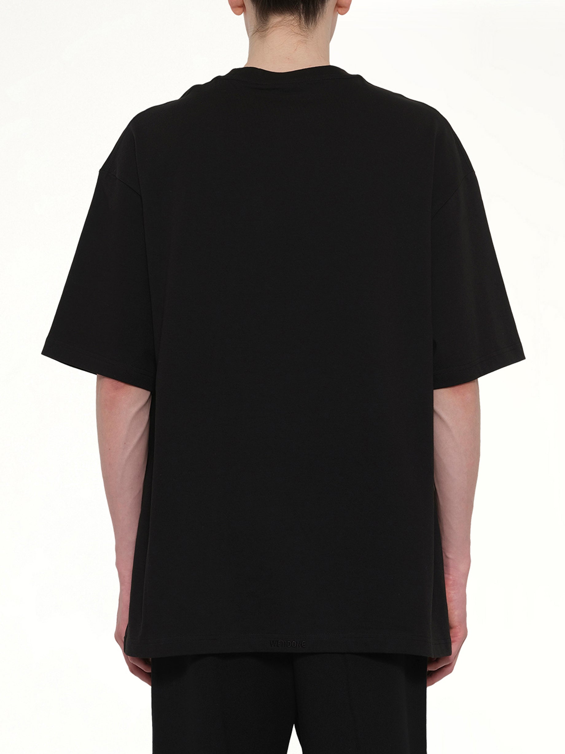 We11done's Ribbon Multi-Logo T-Shirt in Black is a stylish and contemporary piece that showcases the brand's unique design aesthetic. This t-shirt features multiple logo prints, adding a bold statement to any casual outfit.