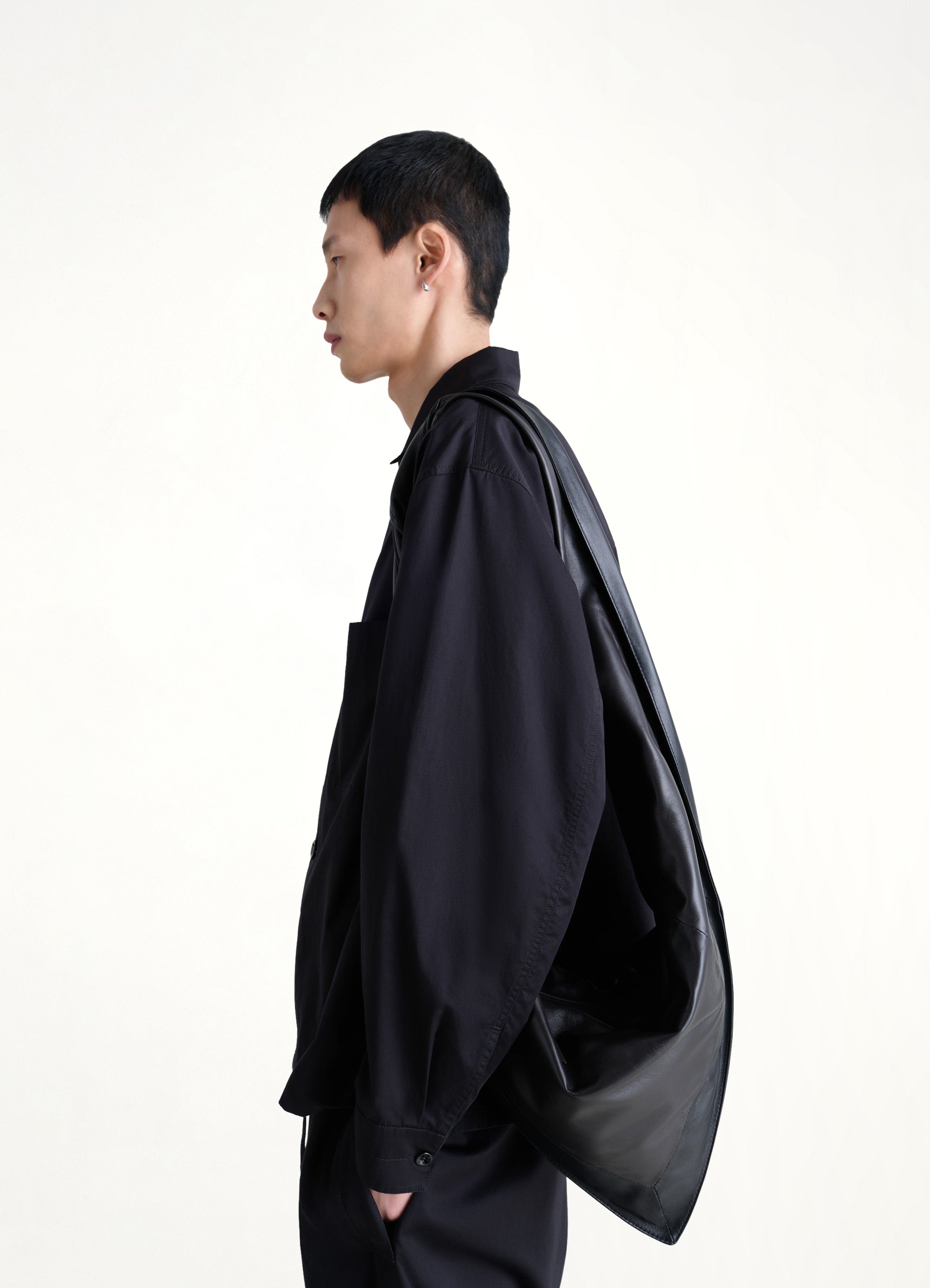 Lemaire's Scarf Bag Small in Black / Dark Chocolate is a versatile accessory that combines elegance with functionality. Its compact design makes it perfect for carrying essentials while adding a touch of sophistication to any outfit.