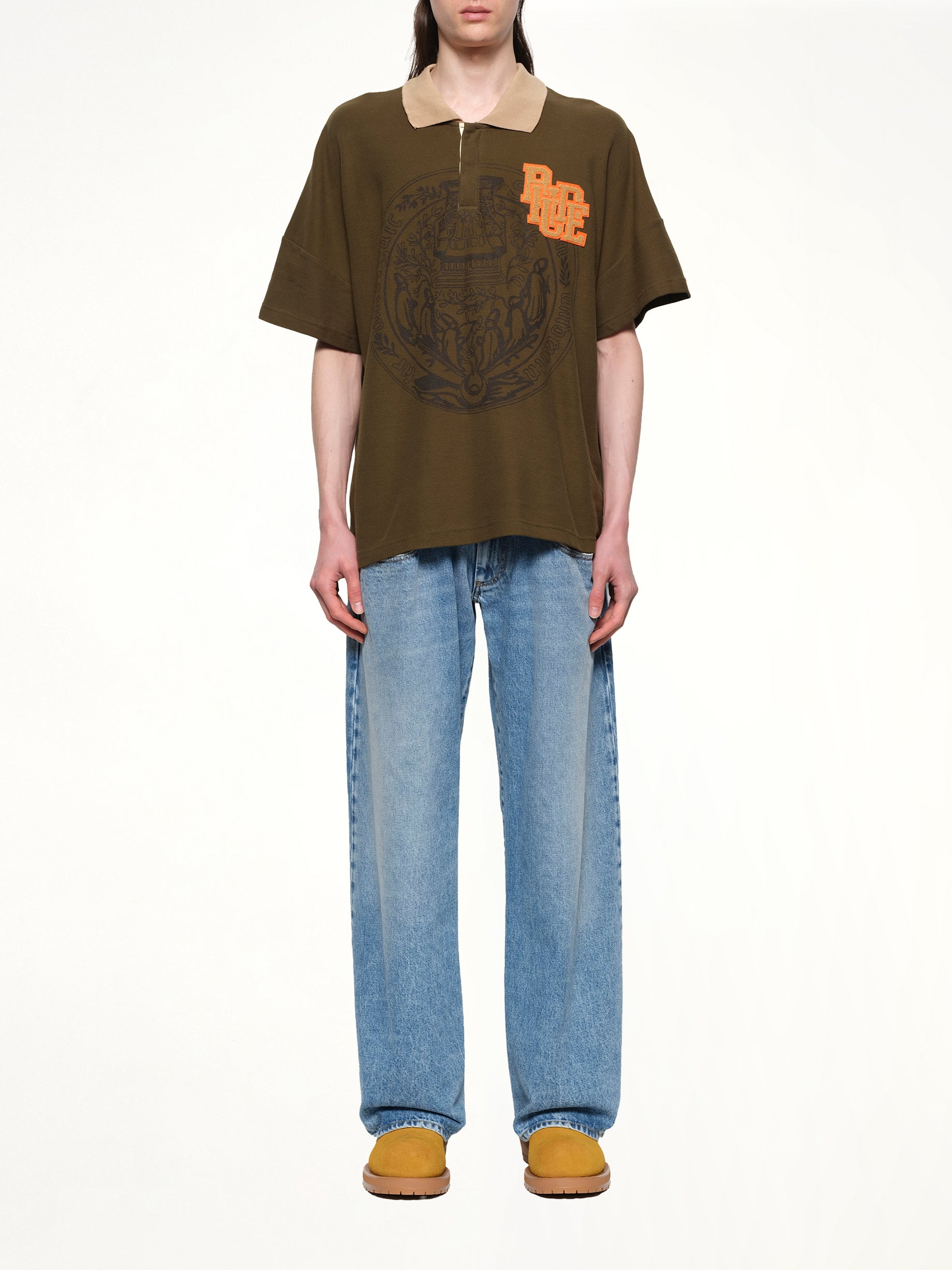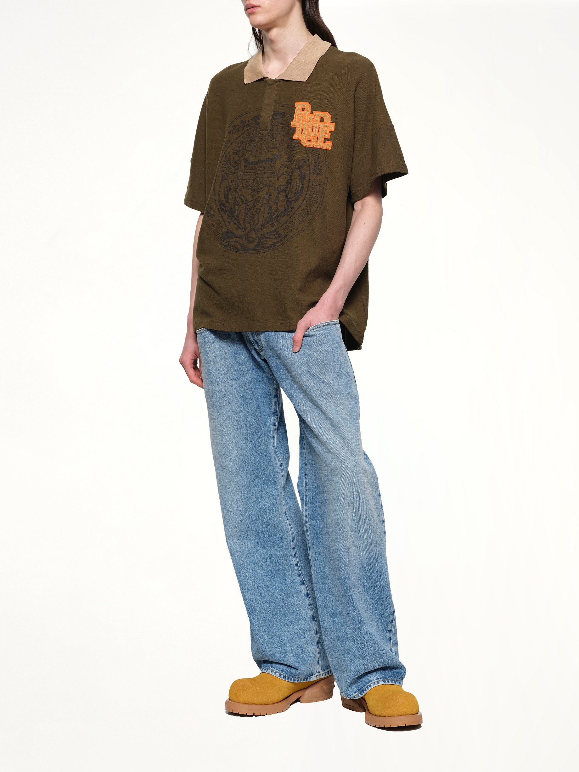 Rhude's Scramble Logo Stamp Polo in Green is a stylish and contemporary piece that combines casual comfort with a bold design. Perfect for making a statement, this polo features a unique logo stamp that adds a touch of modern flair.