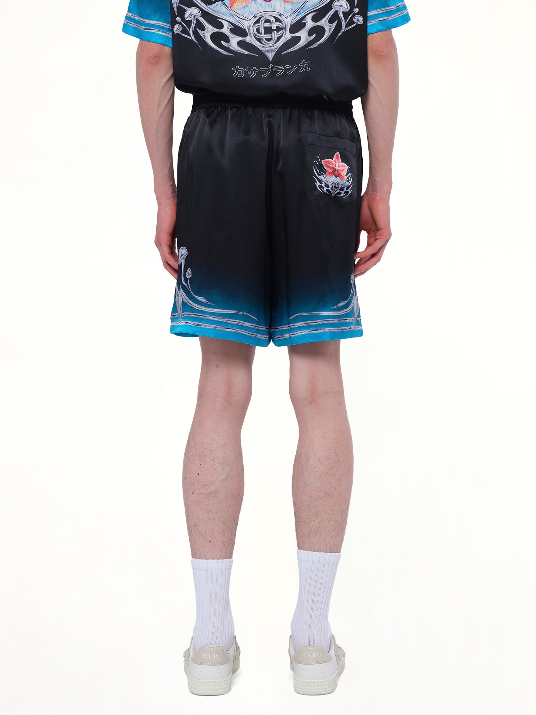 Casablanca's Silk Satin Blades Shorts in Multicolour is a vibrant addition to any wardrobe, offering a luxurious feel and eye-catching design. Perfect for both casual outings and stylish events, these shorts combine comfort with a bold aesthetic.