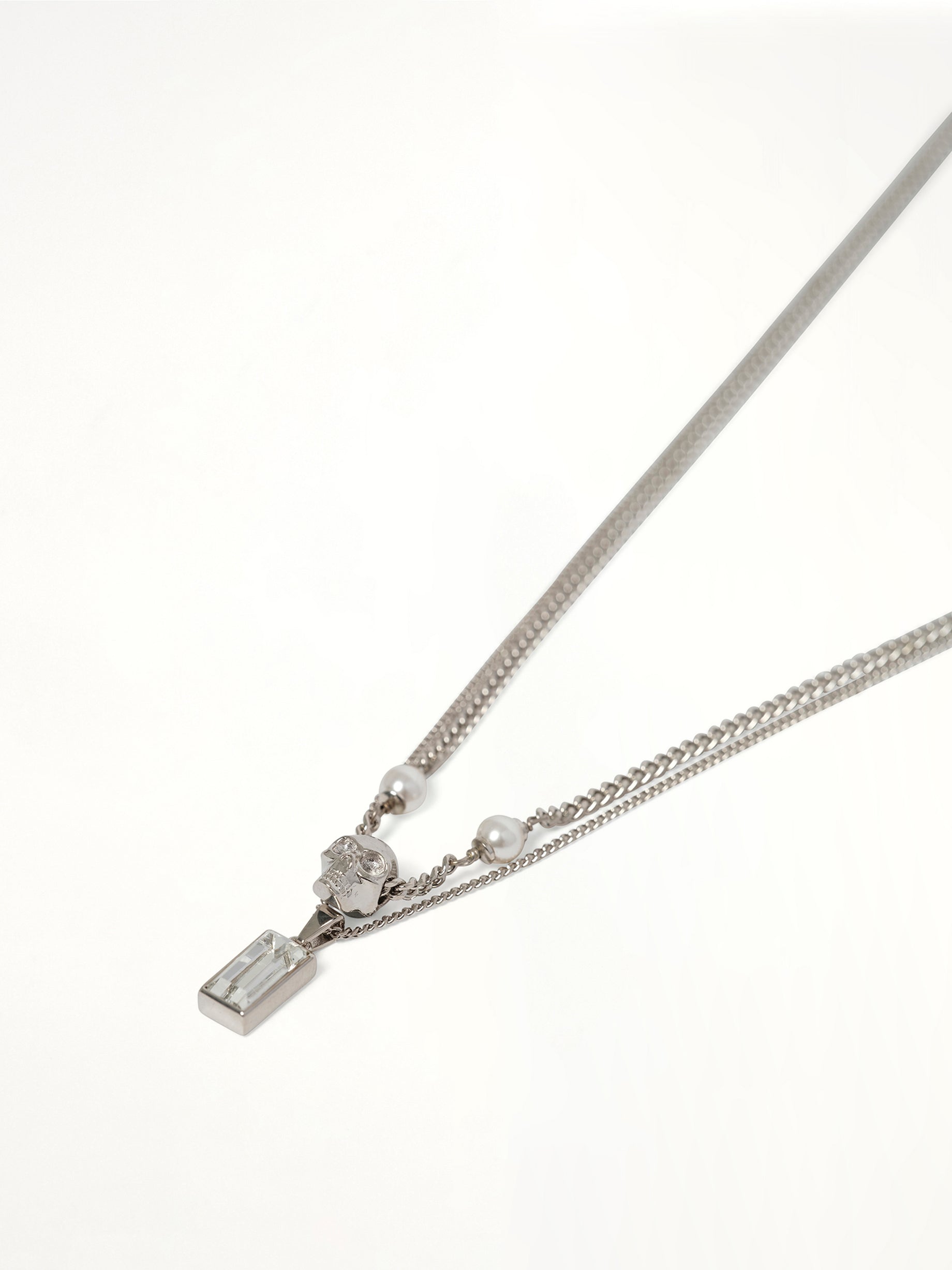 Skull & Pearl Necklace in Silver