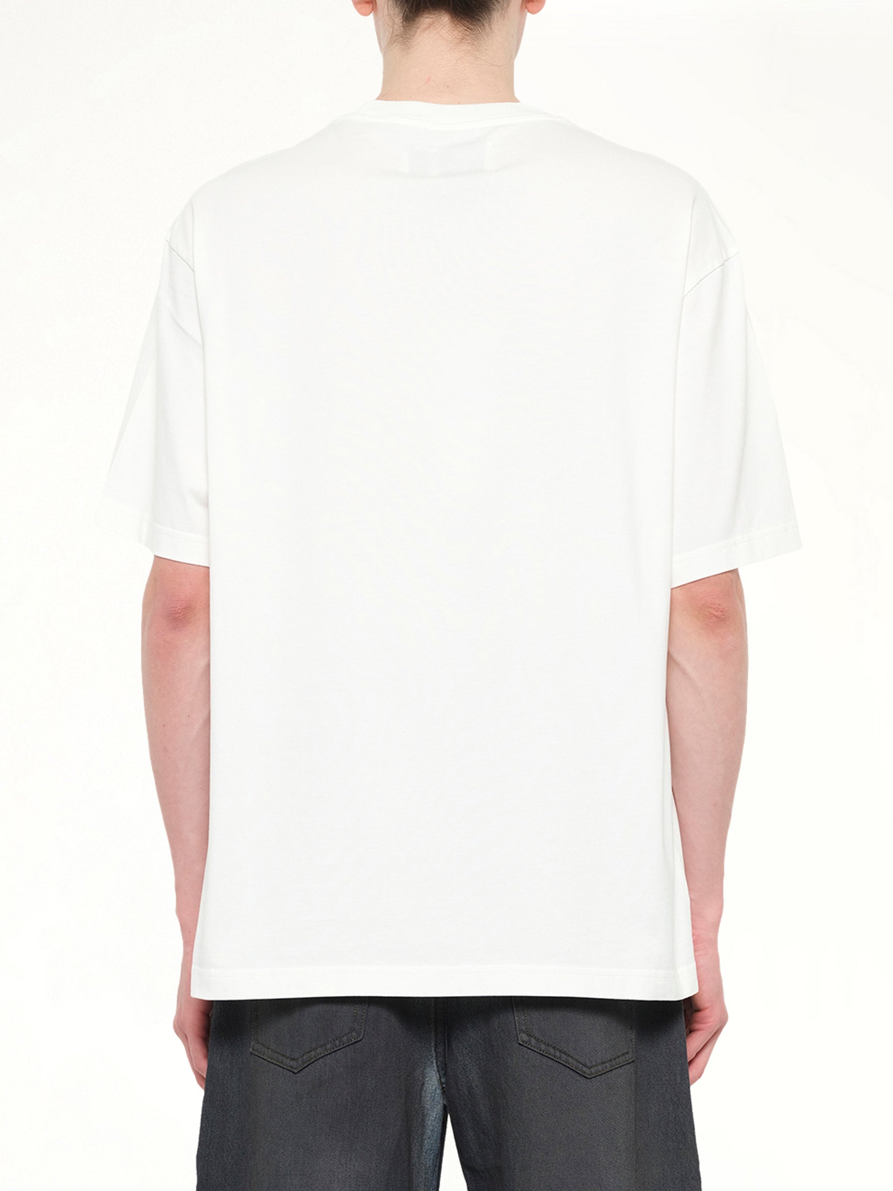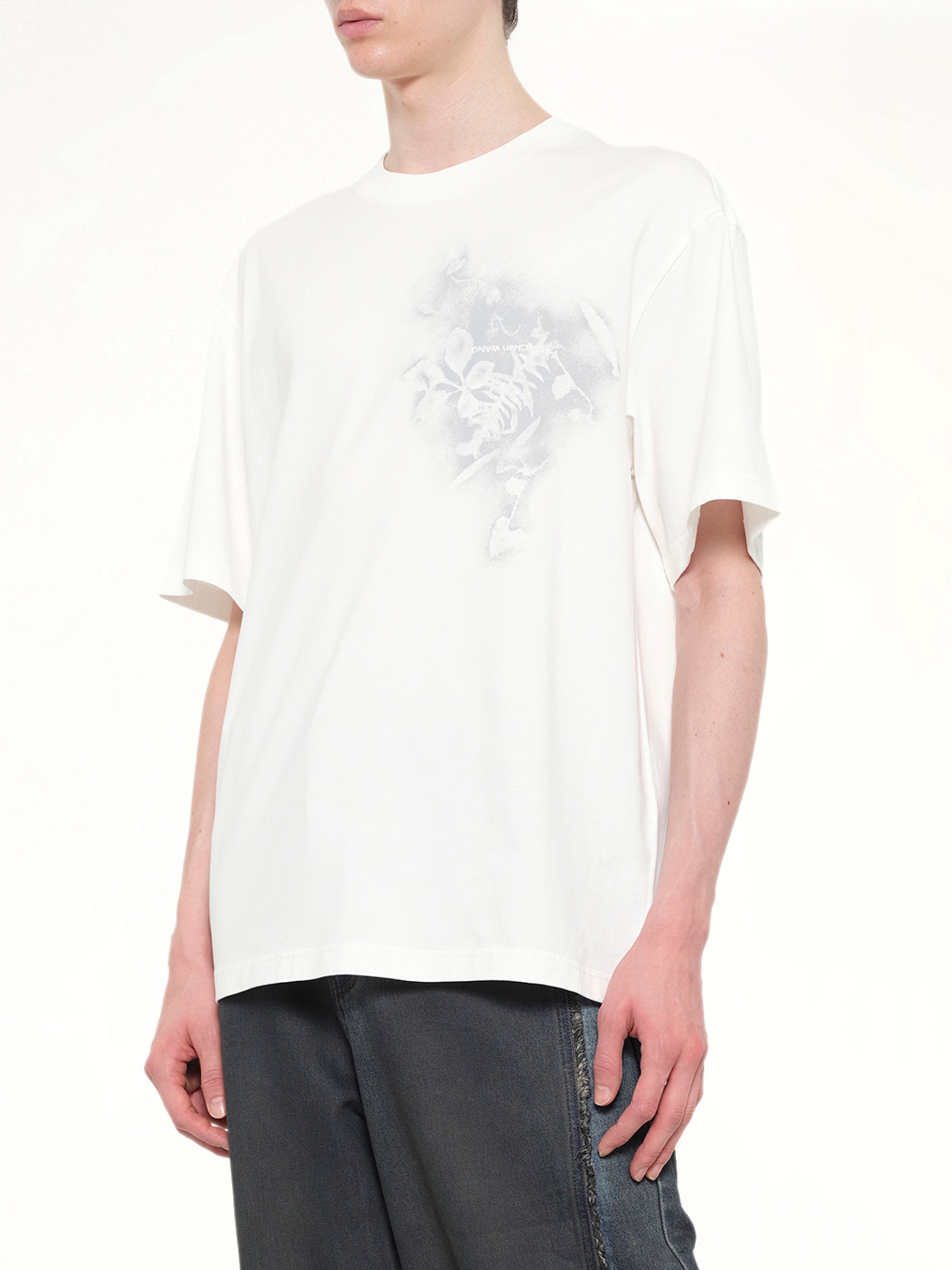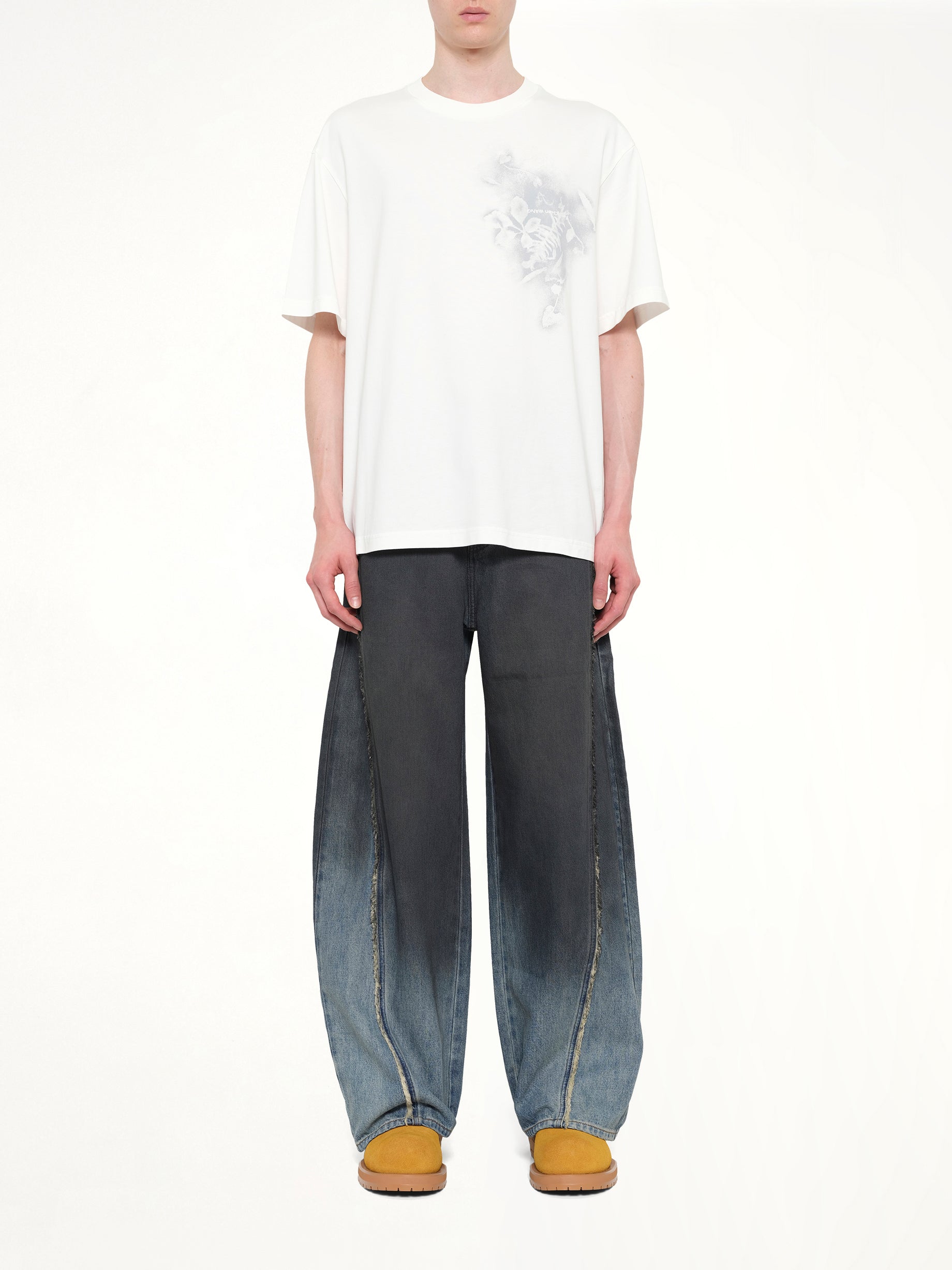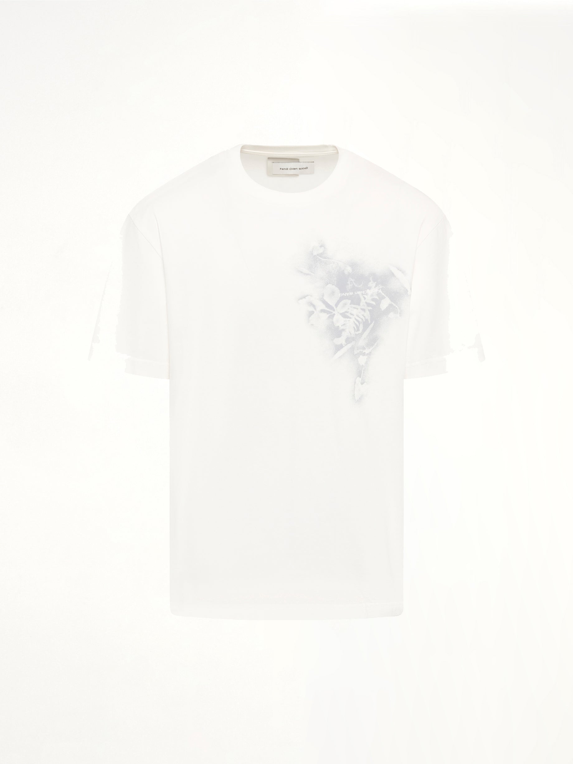 Feng Chen Wang's Spray Painted Plants Dye T-Shirt in White is a unique piece that combines artistic flair with modern fashion. This t-shirt features a distinctive spray-painted design that adds a touch of creativity to any wardrobe.