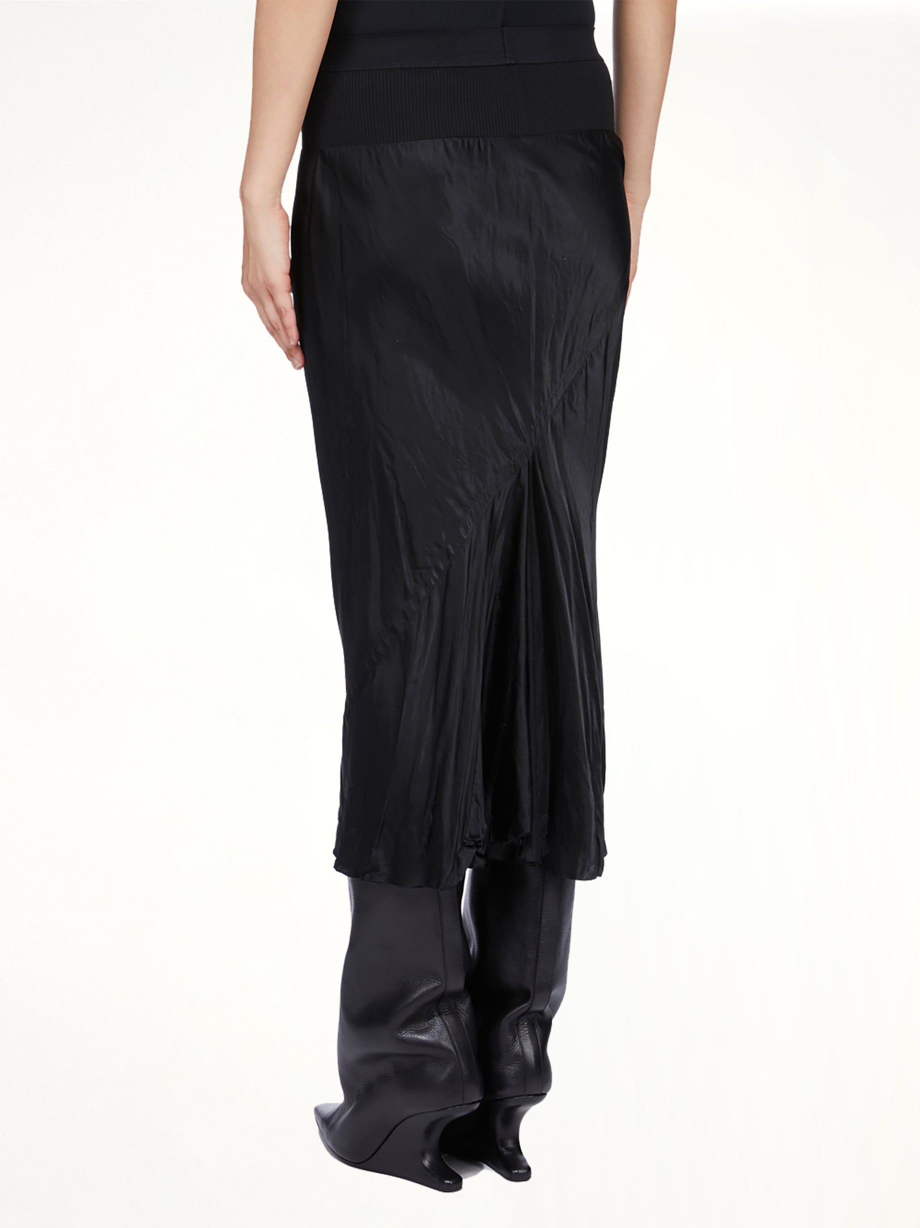 Rick Owens's Knee Bias Skirt in Black is a sophisticated and versatile piece that embodies the brand's signature avant-garde aesthetic. This skirt is designed to flatter the silhouette with its unique bias cut.