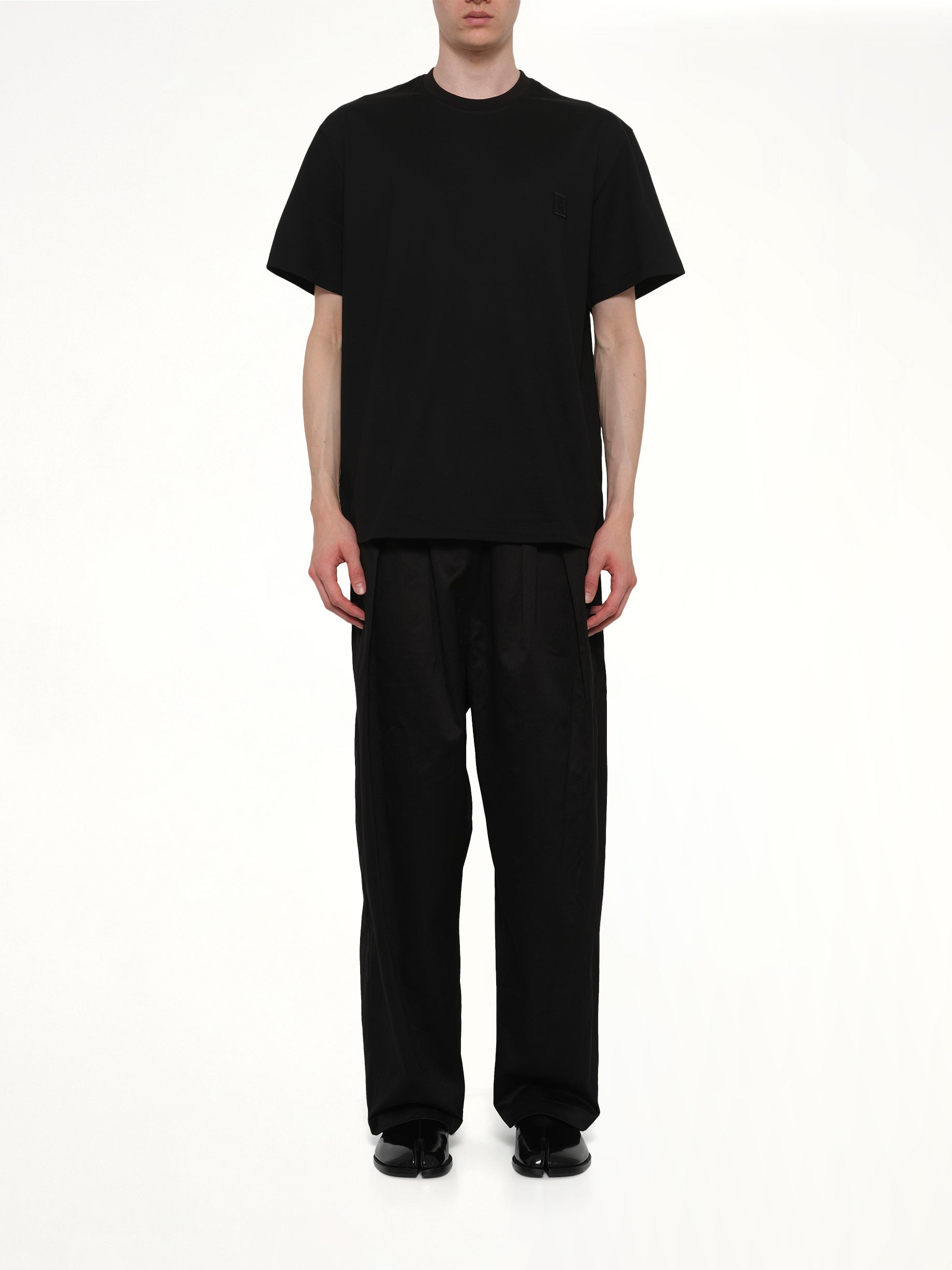 Wooyoungmi's Logo T-Shirt in Black is a stylish and versatile addition to any wardrobe. This classic piece features a minimalist design with a modern edge.
