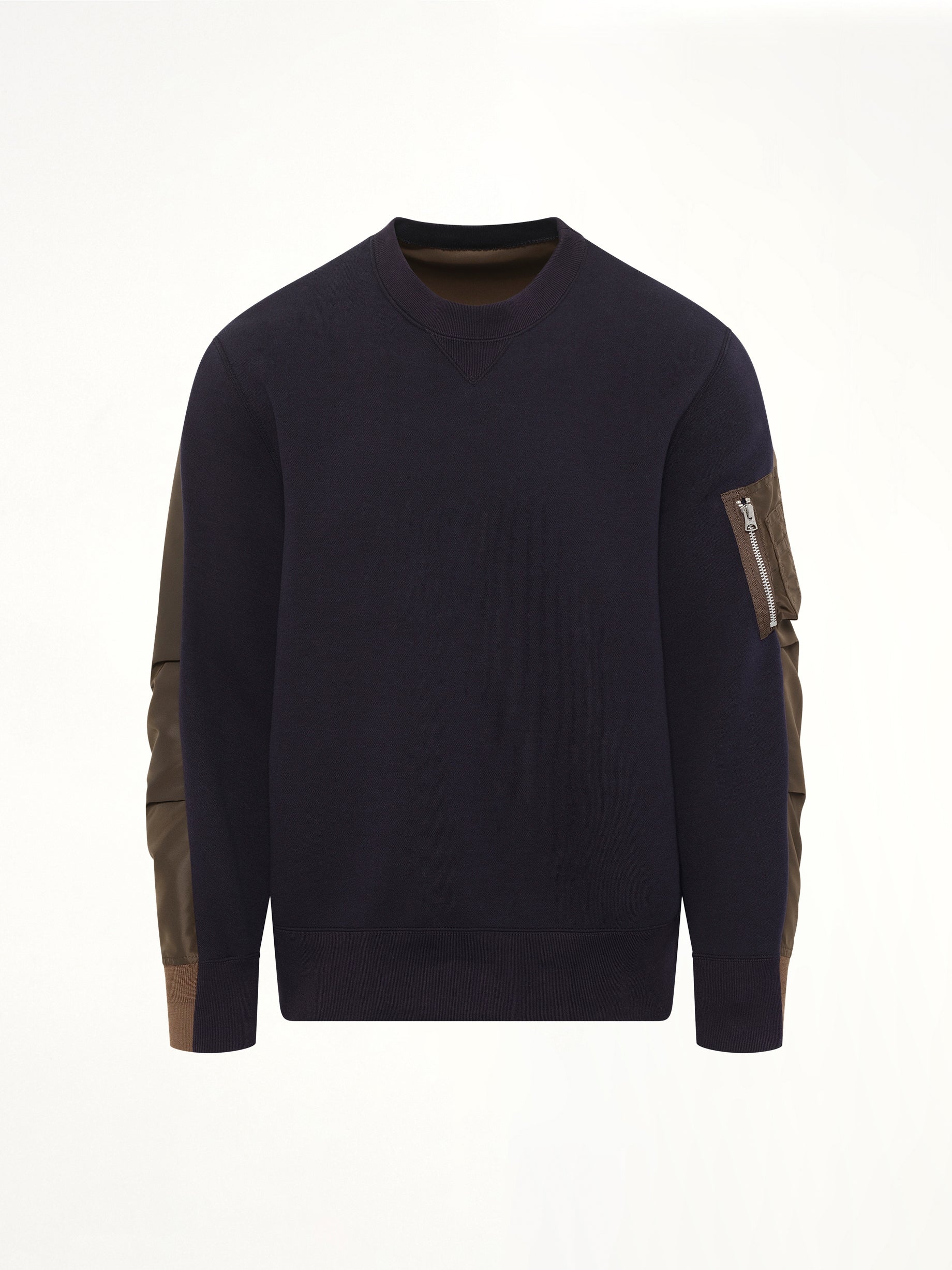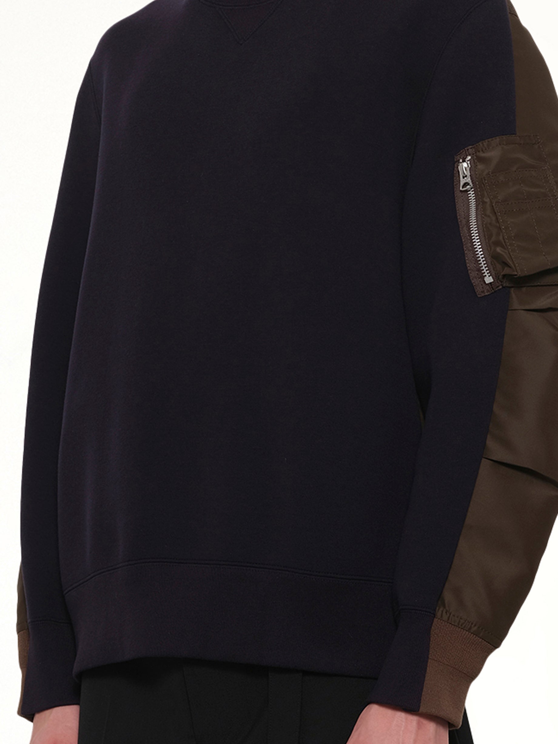 Sacai's Sponge Sweat Pullover in Navy/Dark Khaki is a versatile and stylish addition to any wardrobe. This pullover combines comfort with a modern aesthetic, making it perfect for both casual and semi-formal occasions.