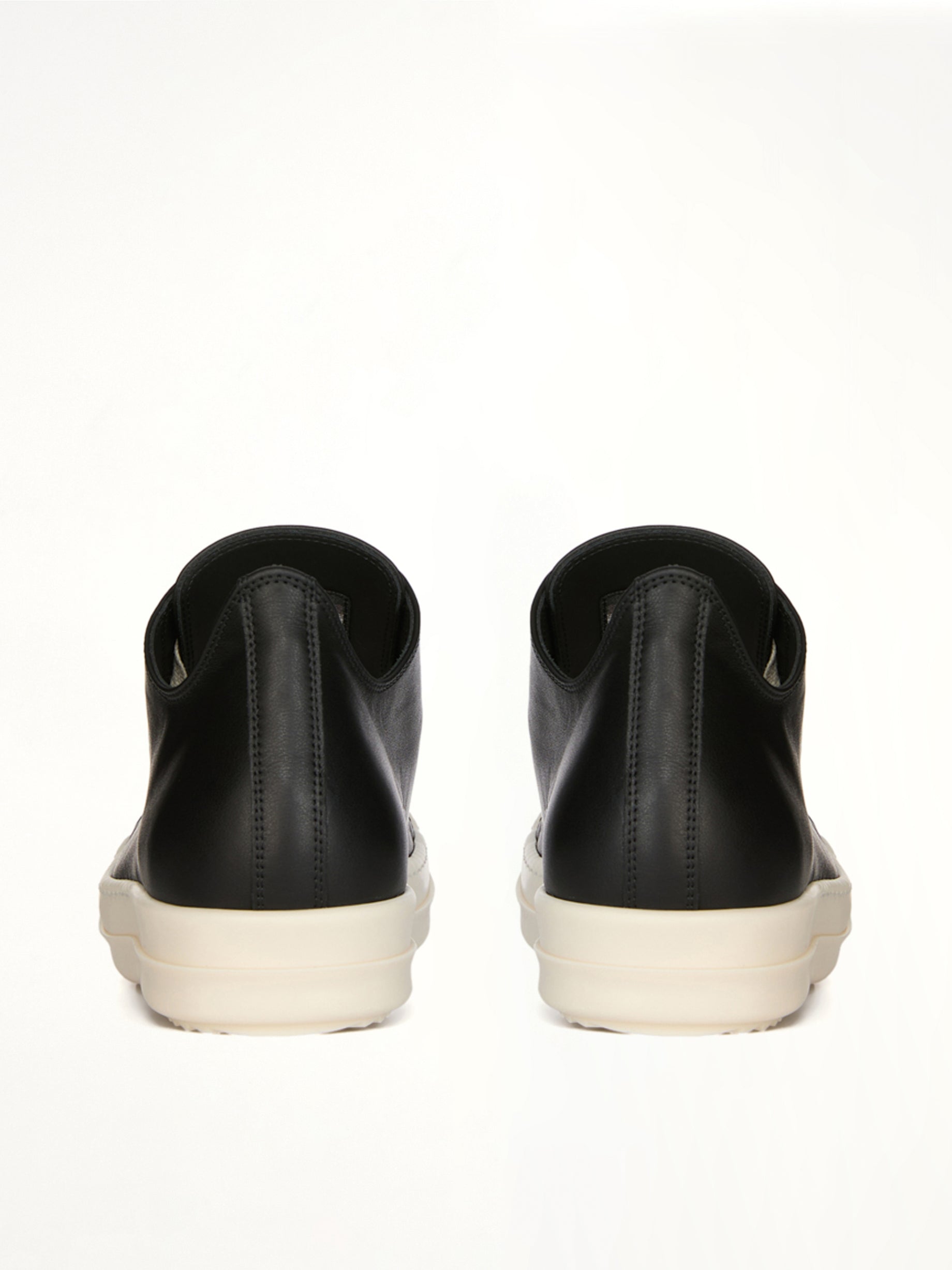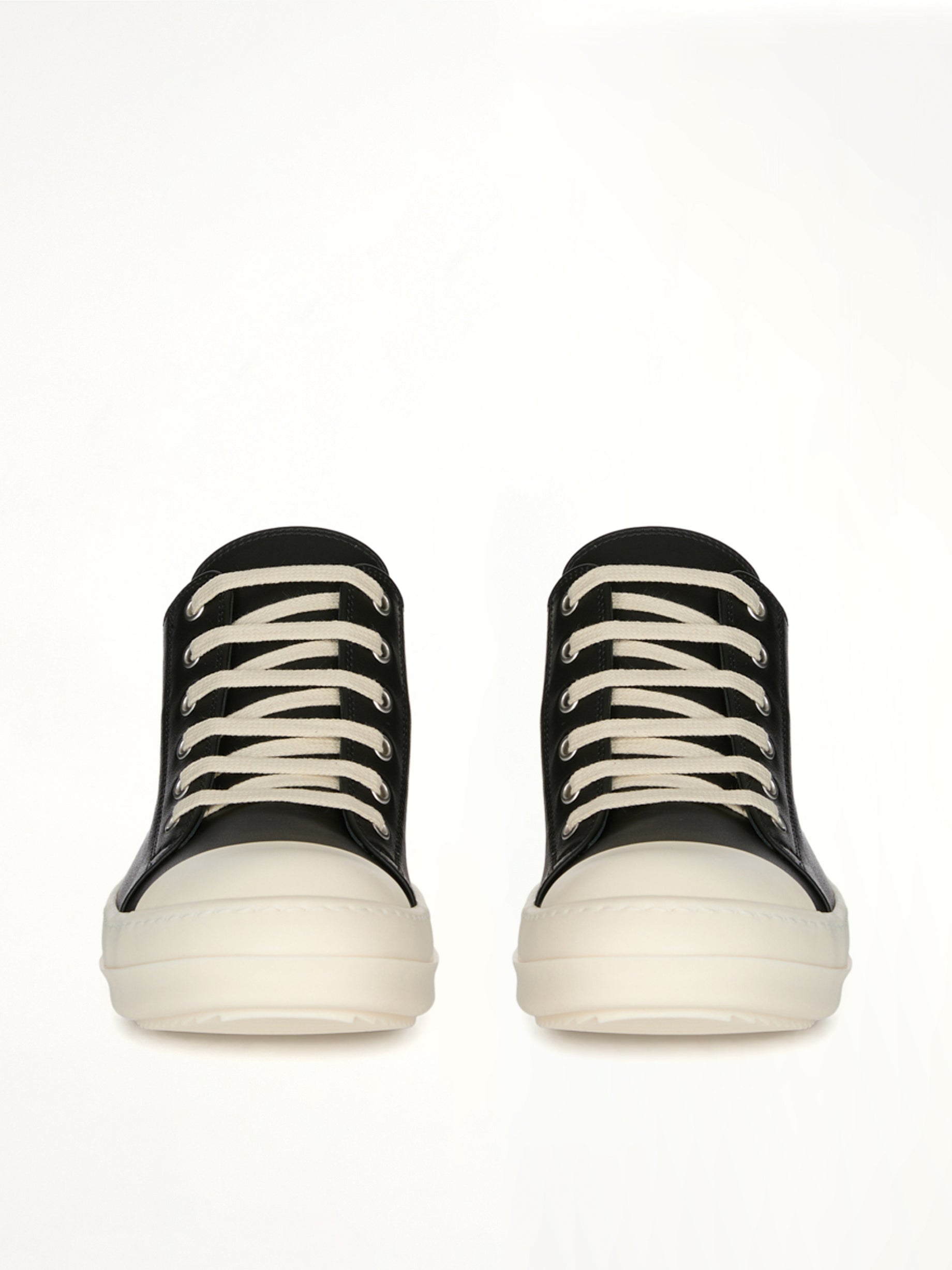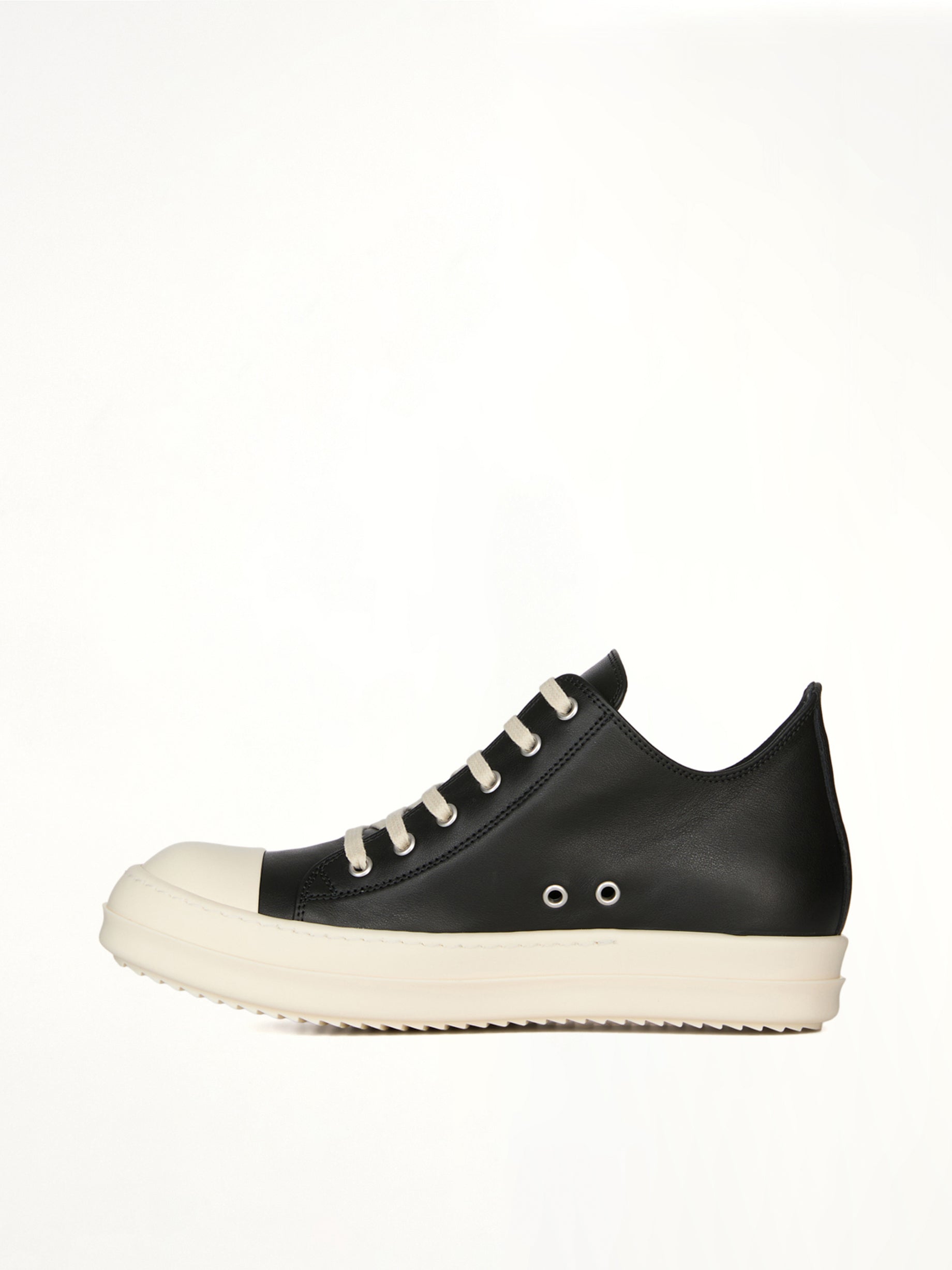 Rick Owens's Low Sneaks in Black/Milk is a striking pair of sneakers that combines avant-garde design with everyday functionality. These sneakers feature a bold color contrast and a unique silhouette, making them a standout addition to any footwear collection.