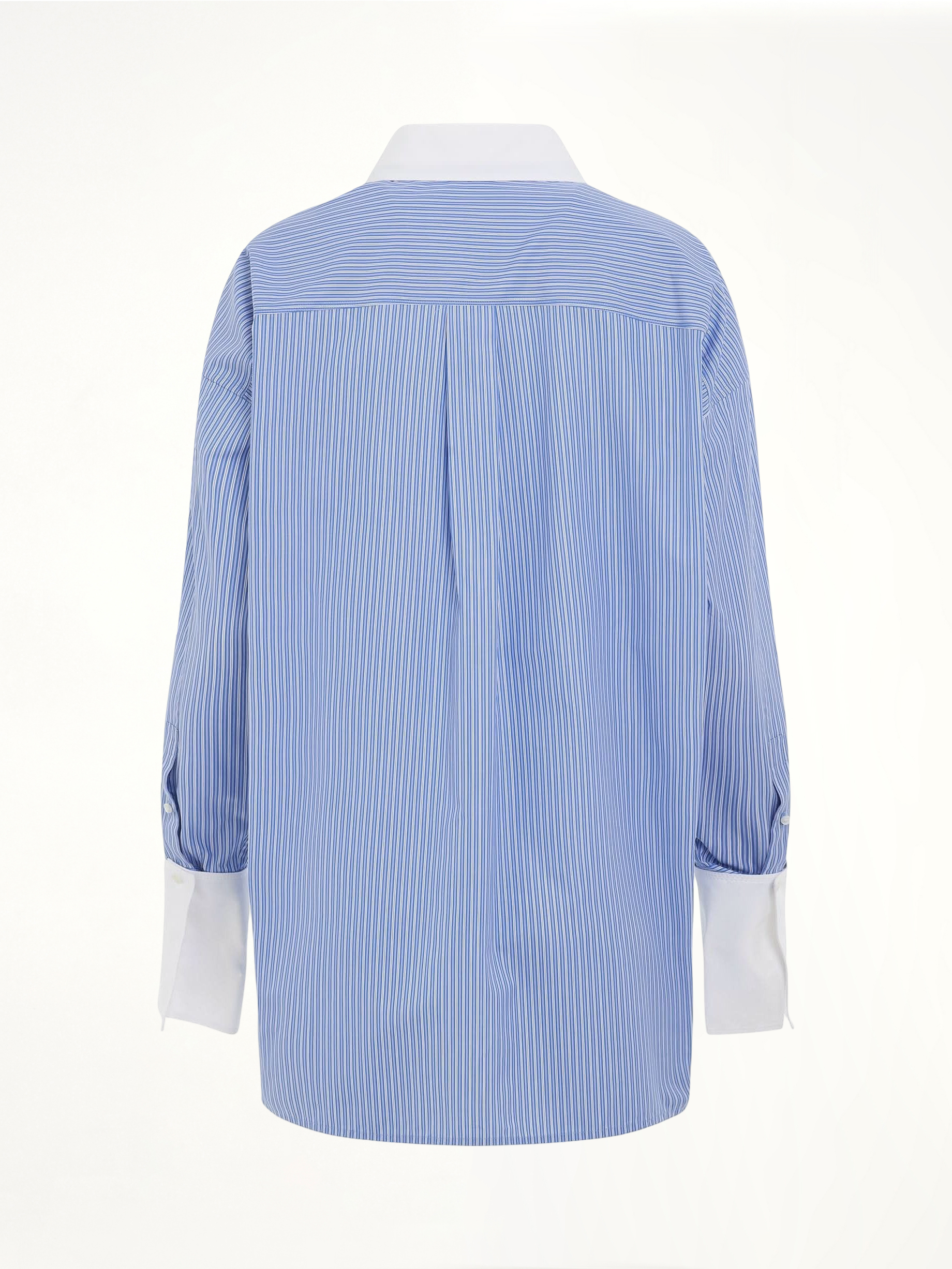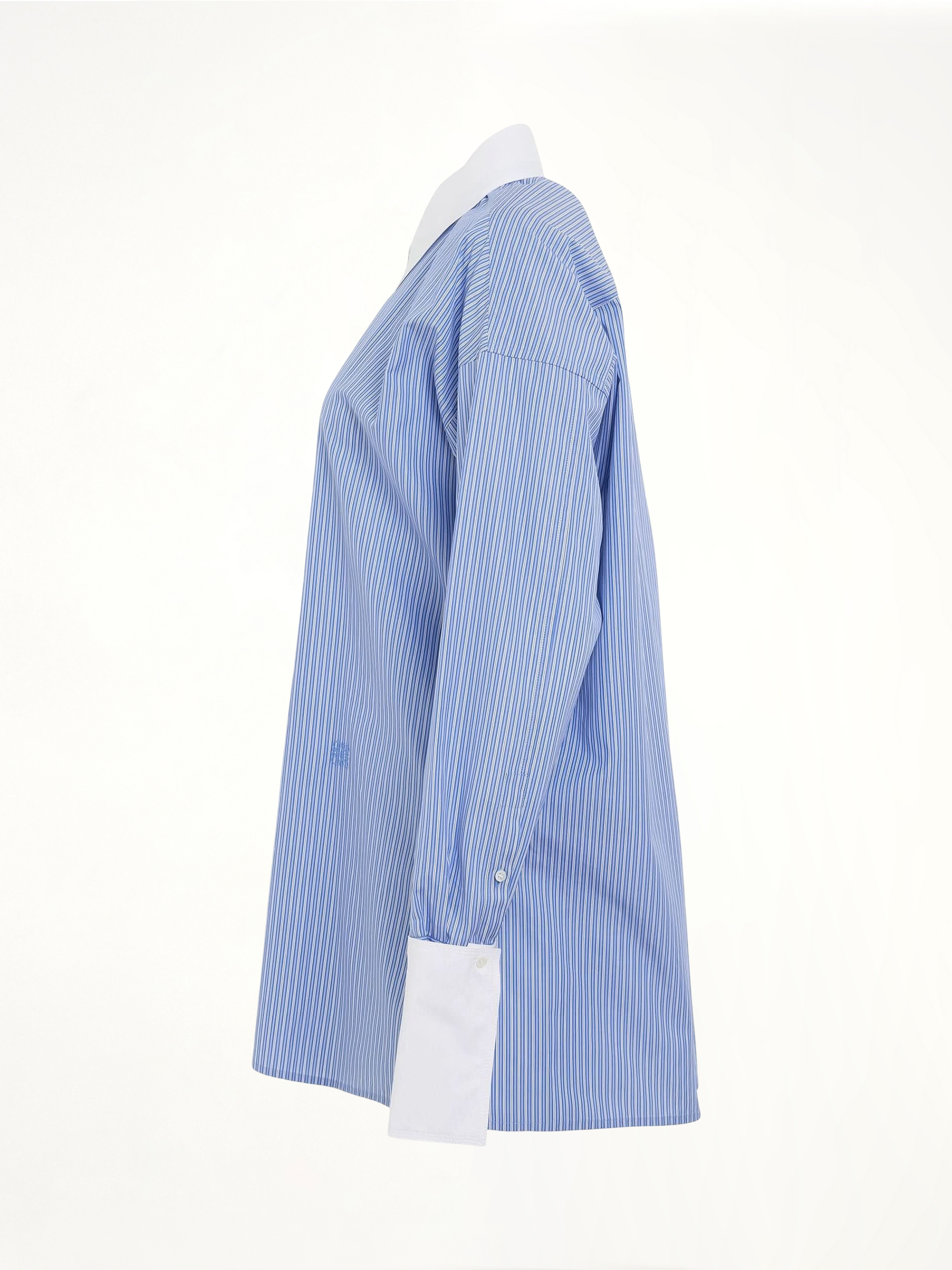 LOEWE button fronts long sleeved stripe shirt in Blue/White with classic collar and buttoned cuffs