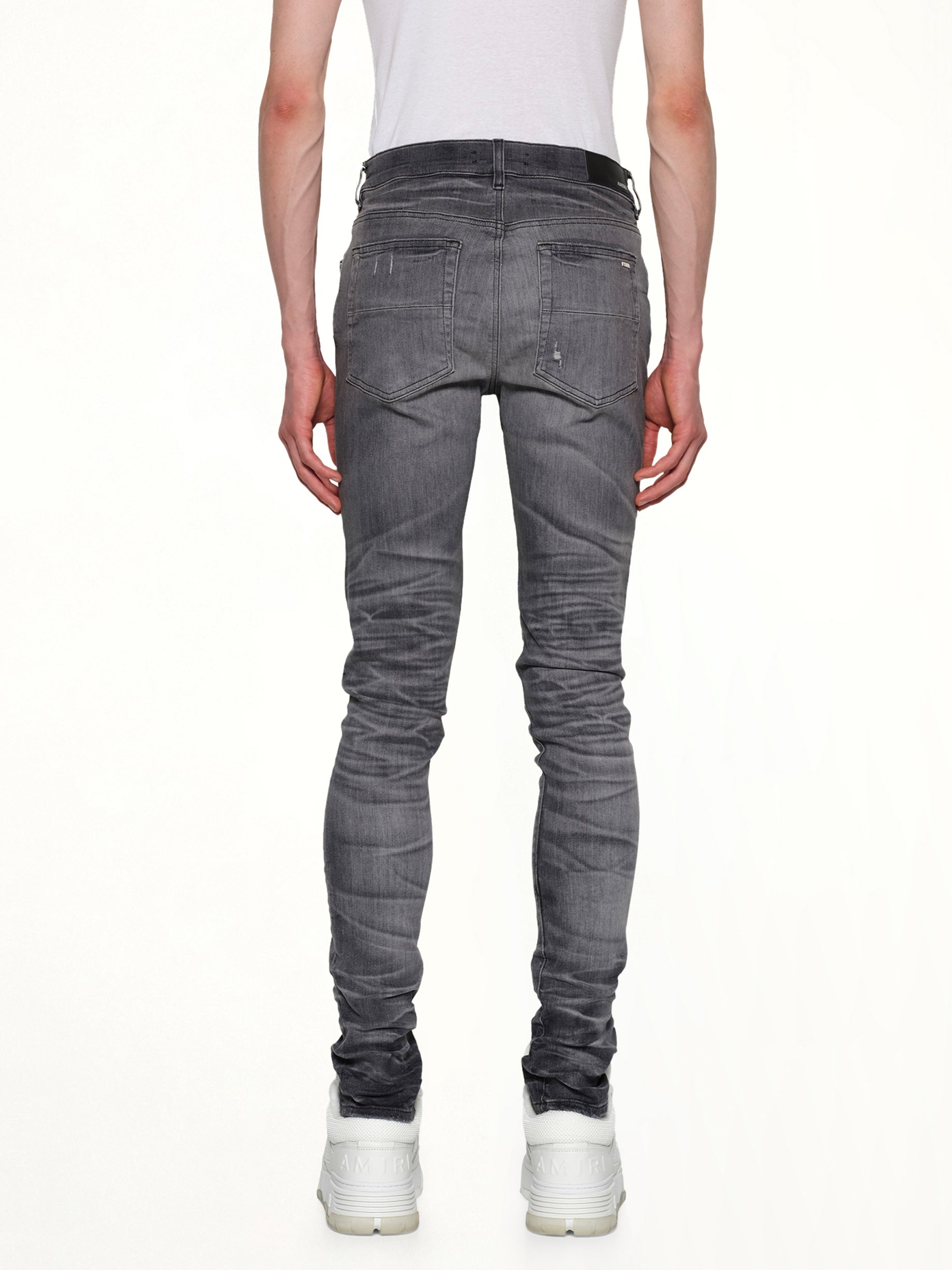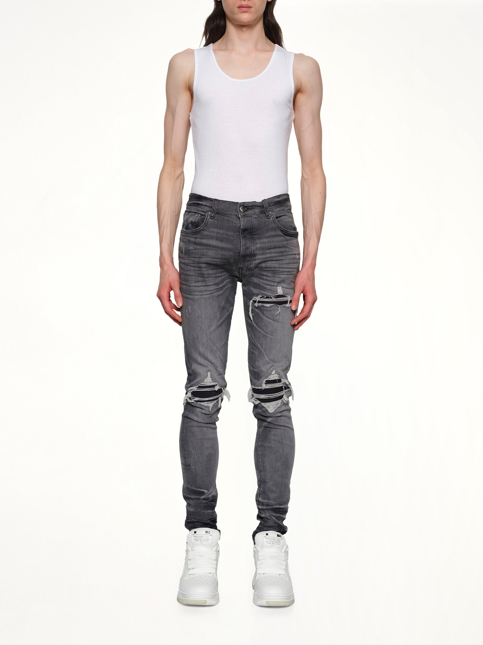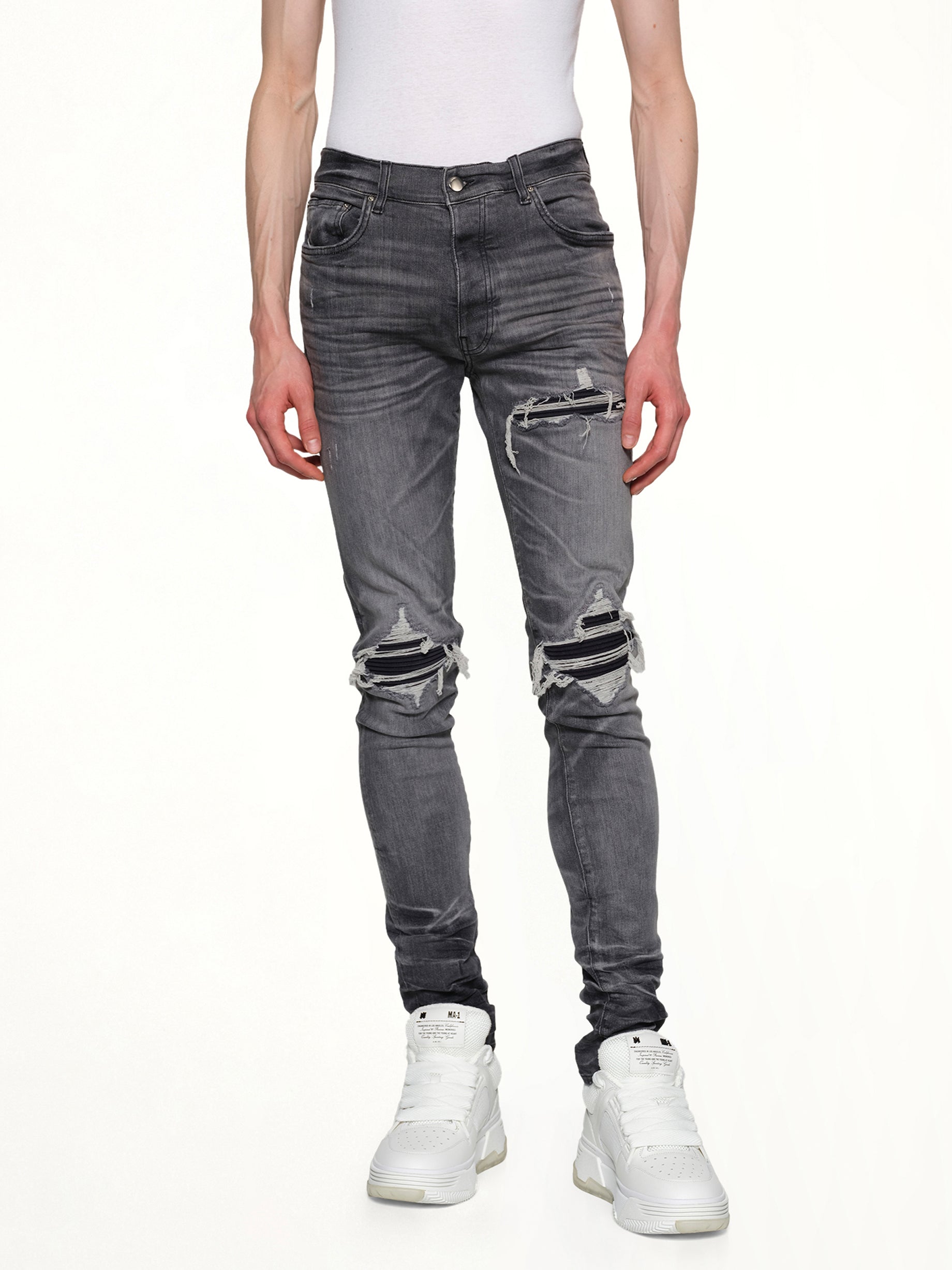 Amiri's Suede MX1 Jeans in Storm Grey is a stylish and contemporary piece that combines luxury with a rugged edge. These jeans feature a unique design that stands out, making them a must-have for any fashion-forward wardrobe.