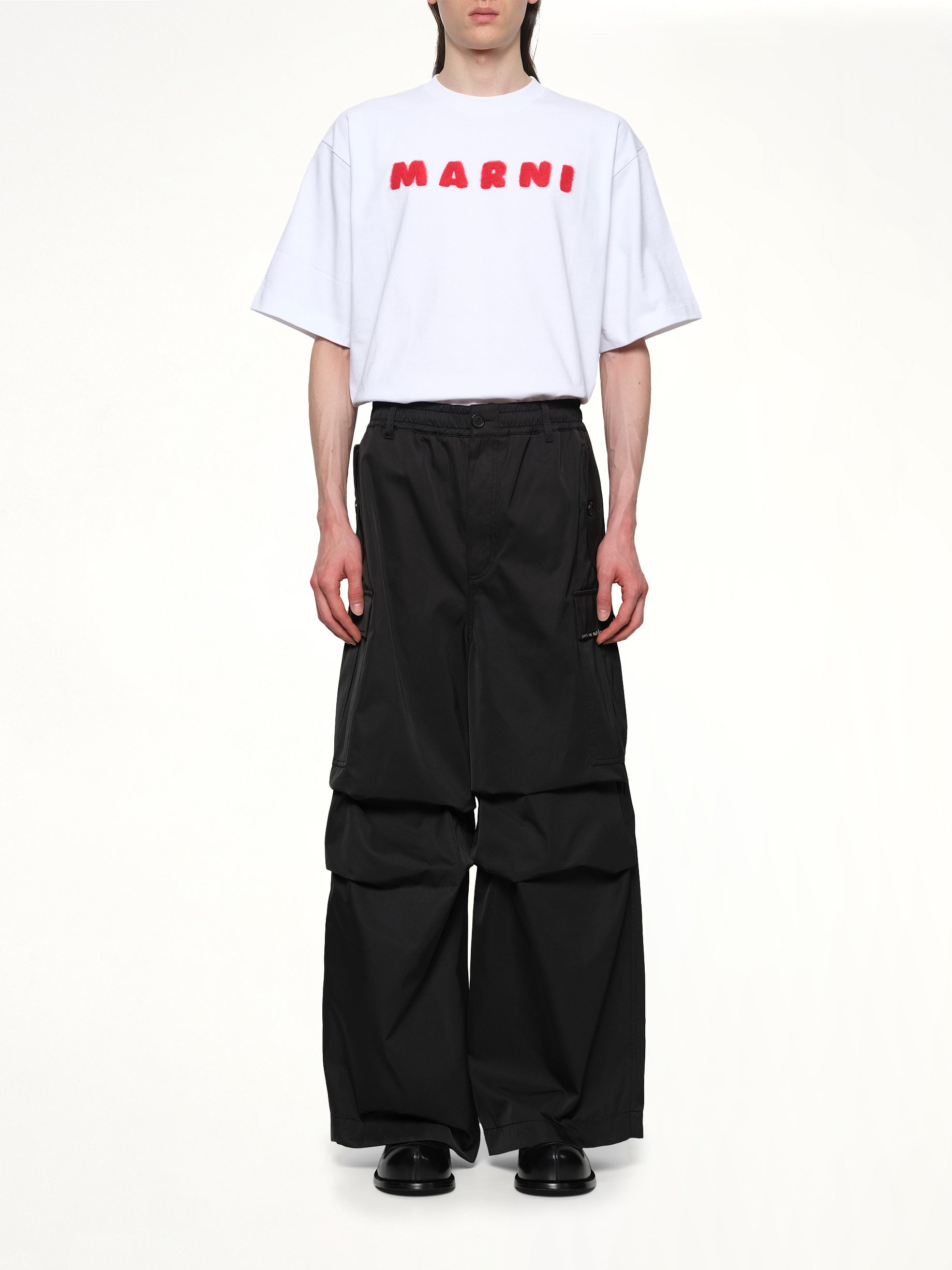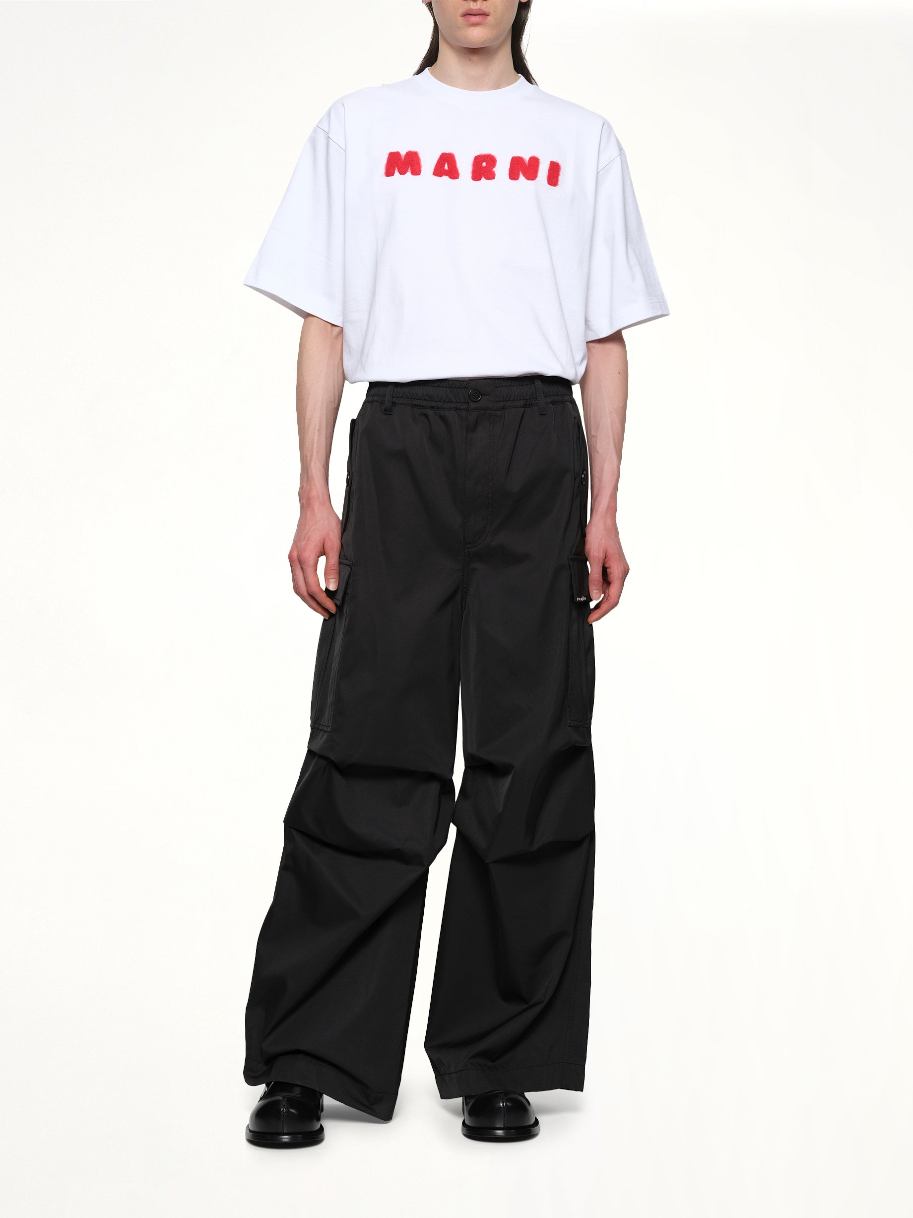 Marni's Taffeta Wide Leg Cargo Pants in Black is a stylish and versatile addition to any wardrobe. These pants combine a modern silhouette with functional design elements, perfect for both casual and elevated looks.