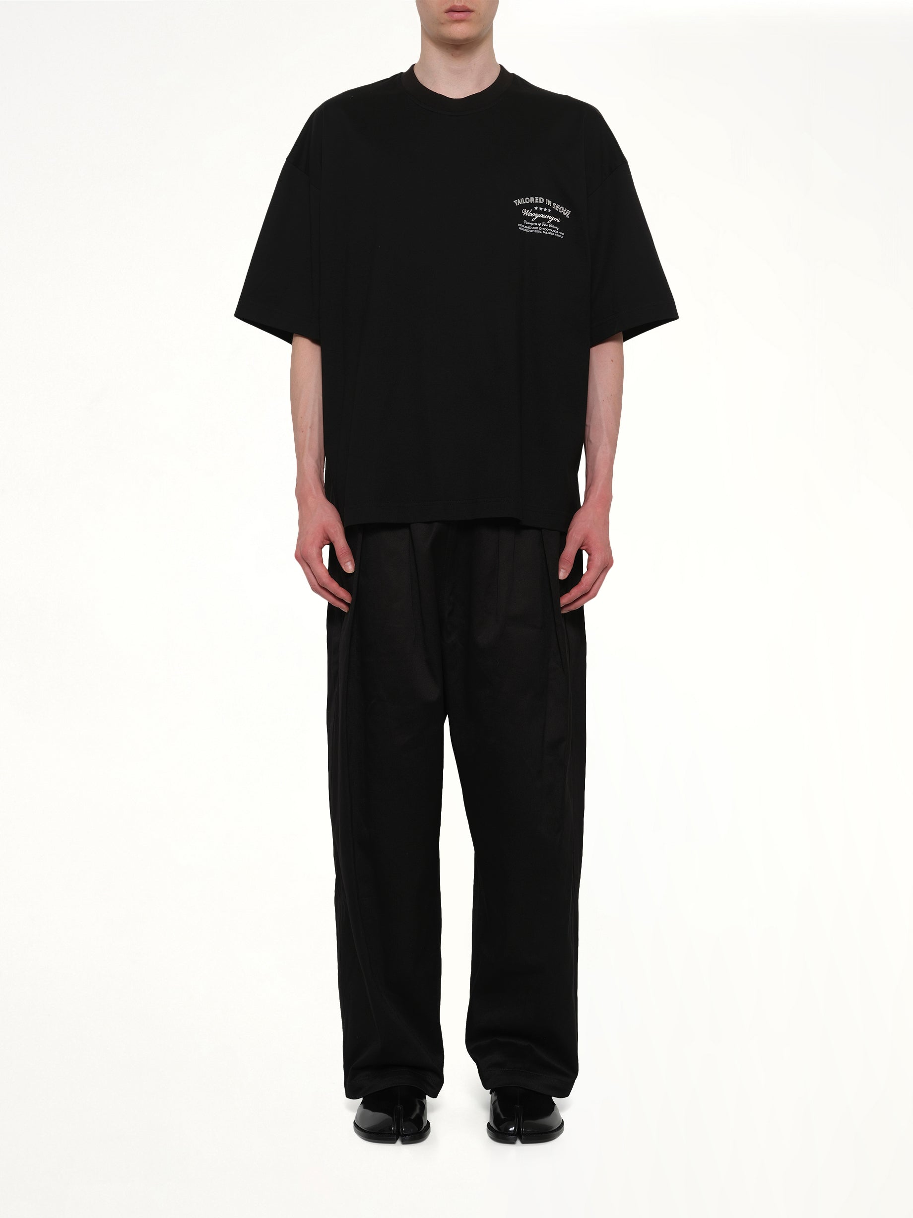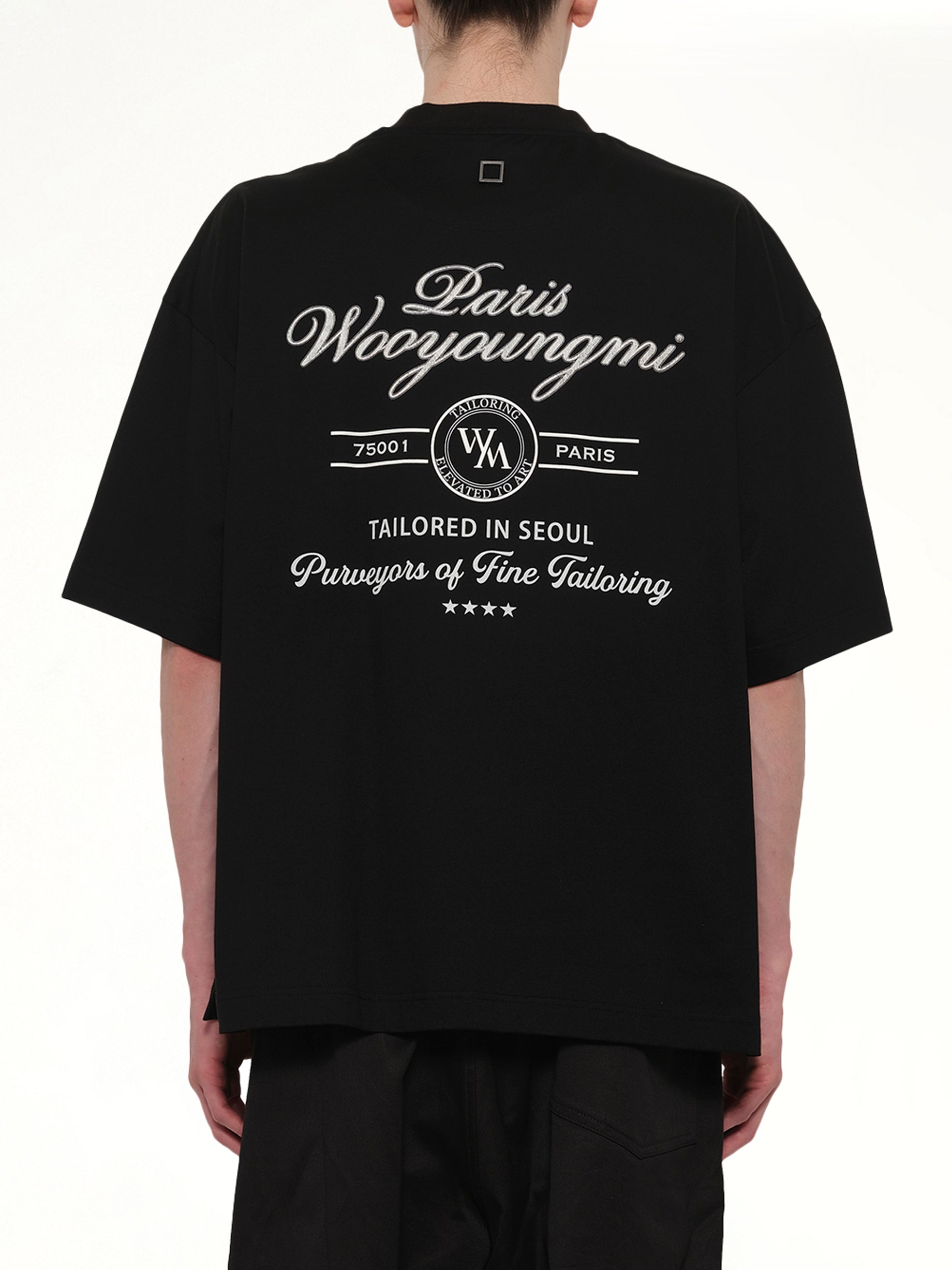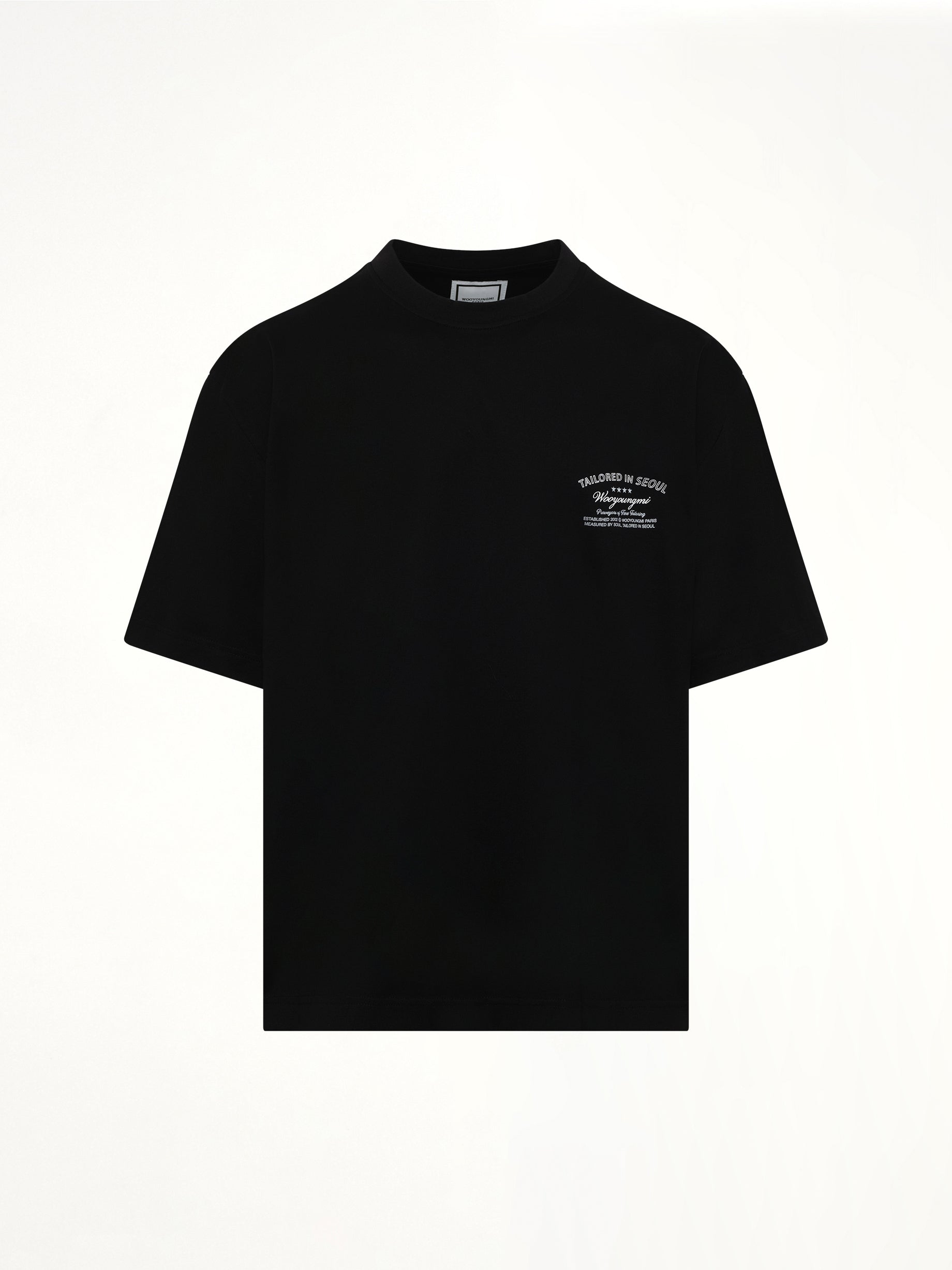 Wooyoungmi's Tailored in Seoul T-Shirt in Black is a sophisticated addition to any wardrobe, offering a sleek and modern aesthetic. Designed with precision, this t-shirt embodies the brand's commitment to quality and style.