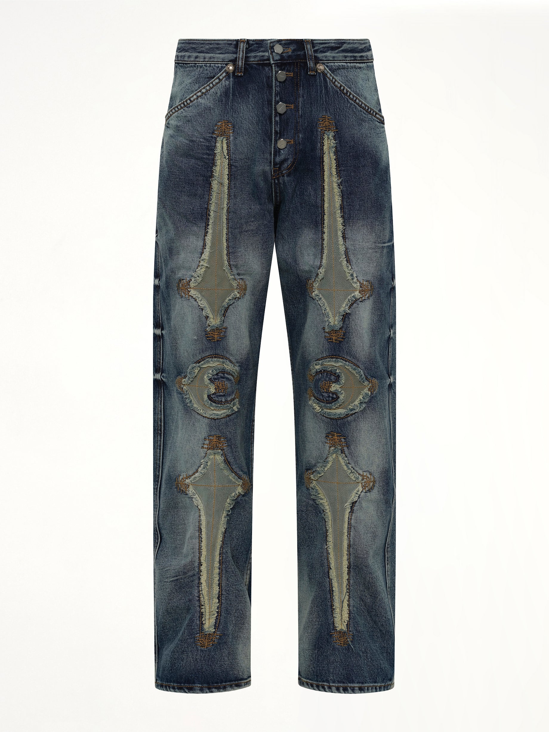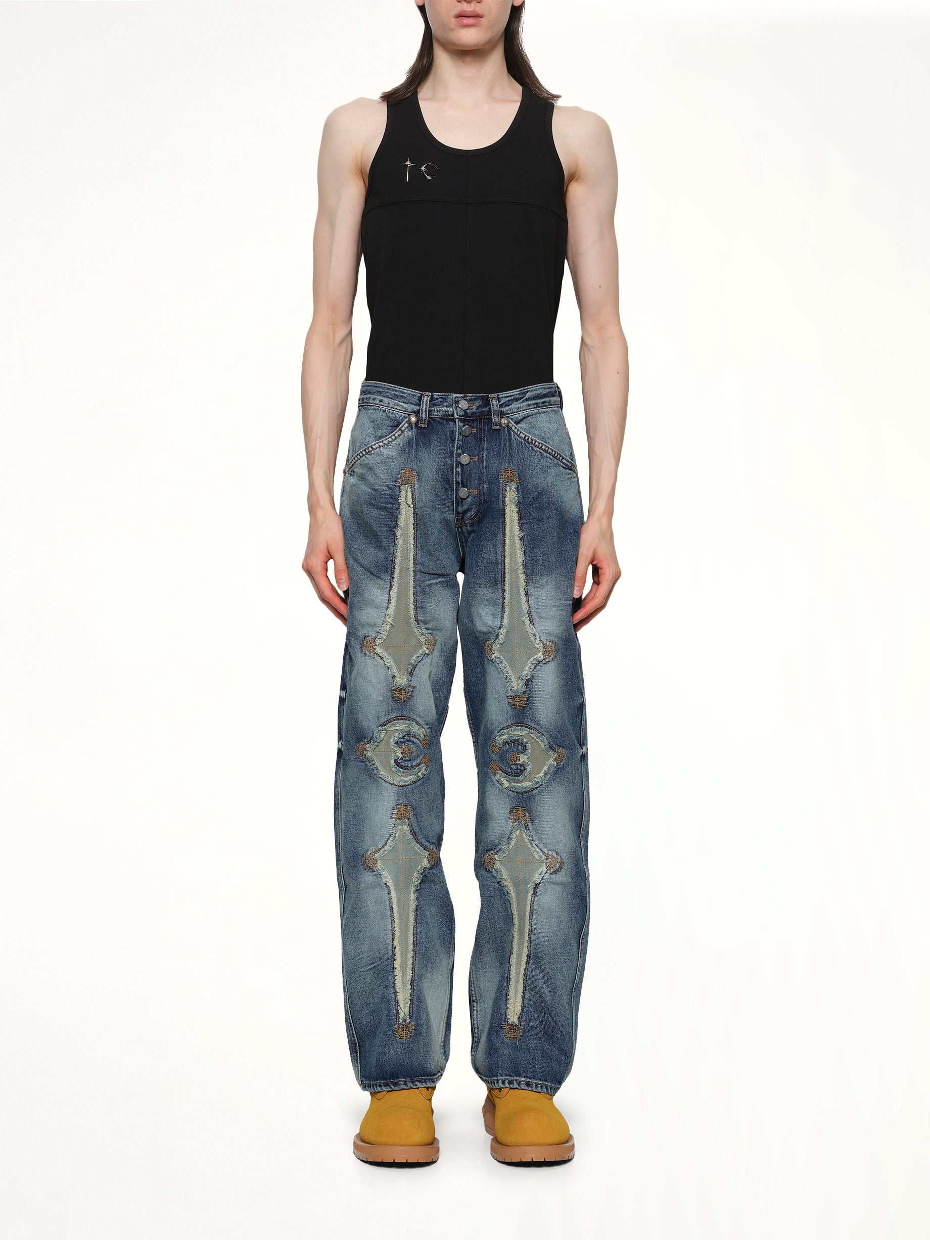 Thug Club's TC Bone Leather Denim Pants in Blue is a bold fusion of edgy style and modern design. These pants are perfect for making a statement with their unique detailing and striking color.