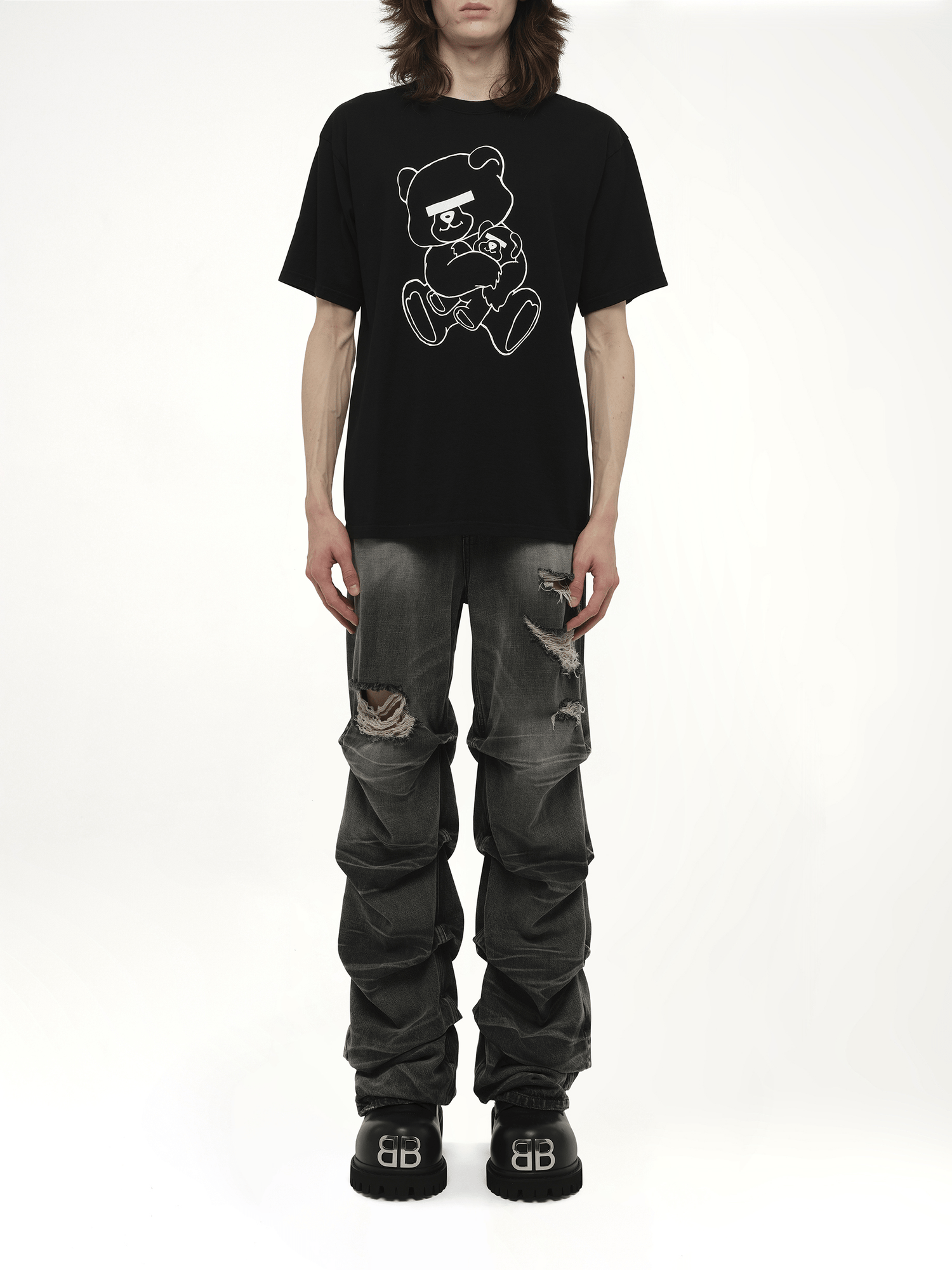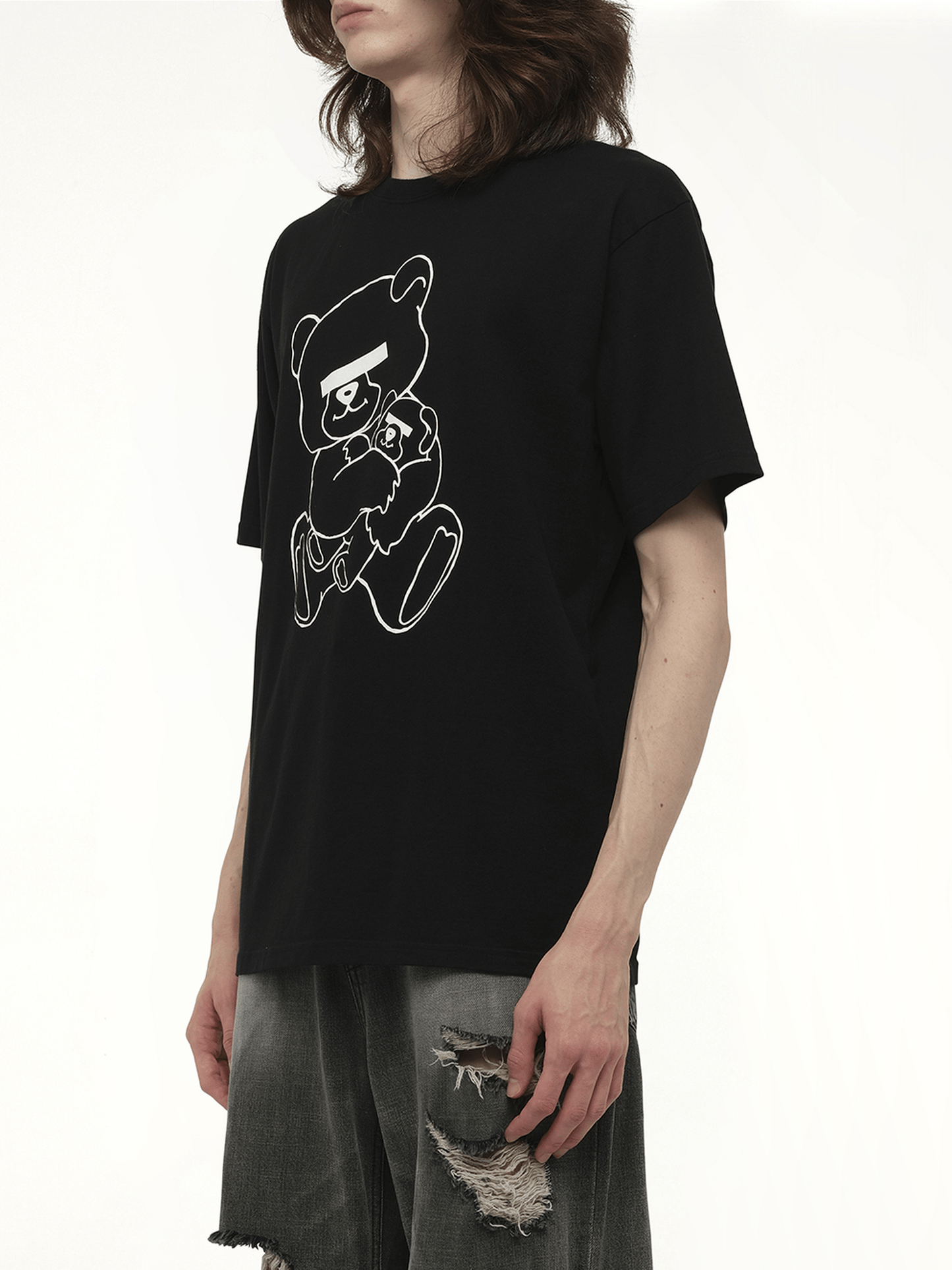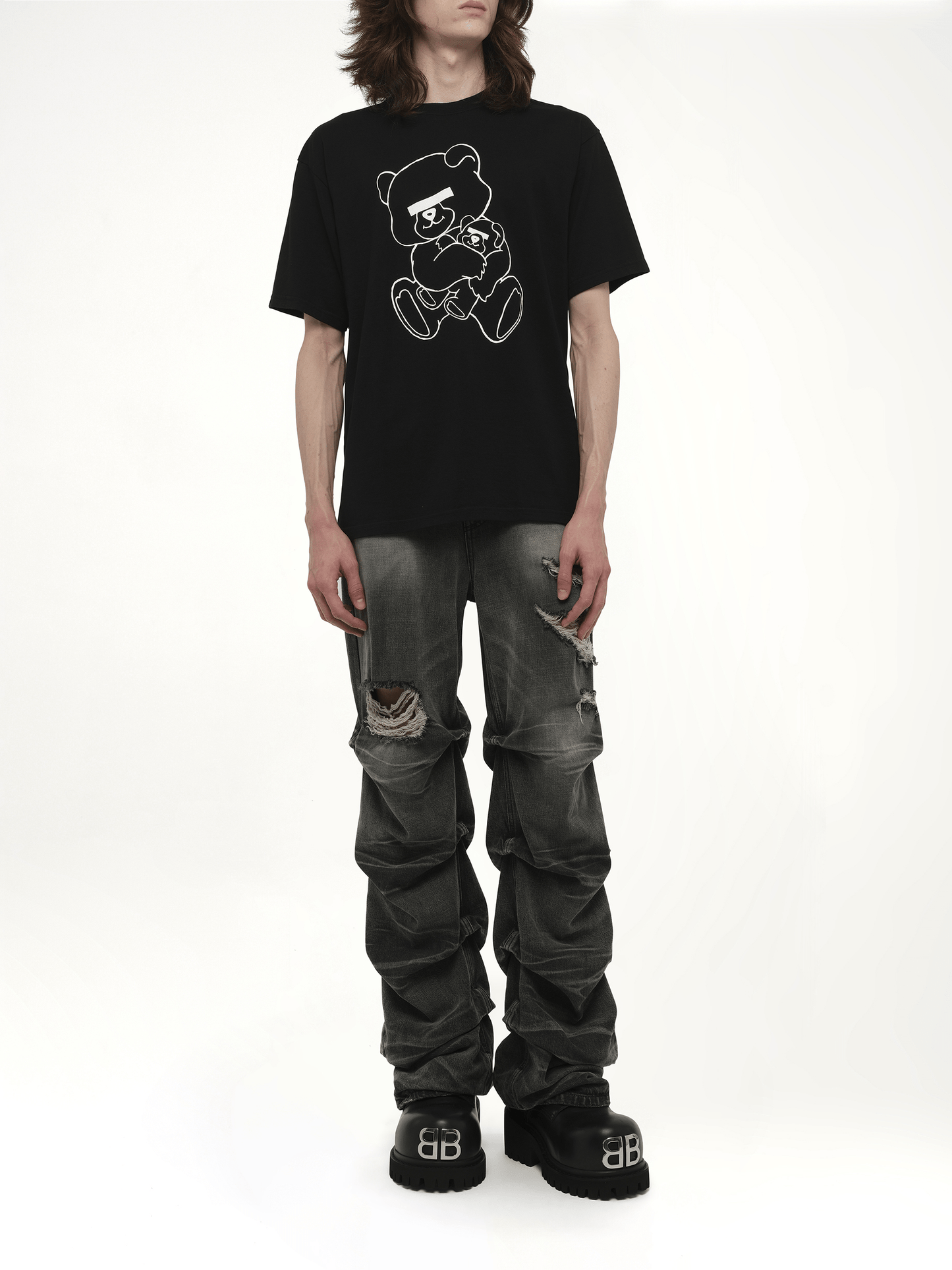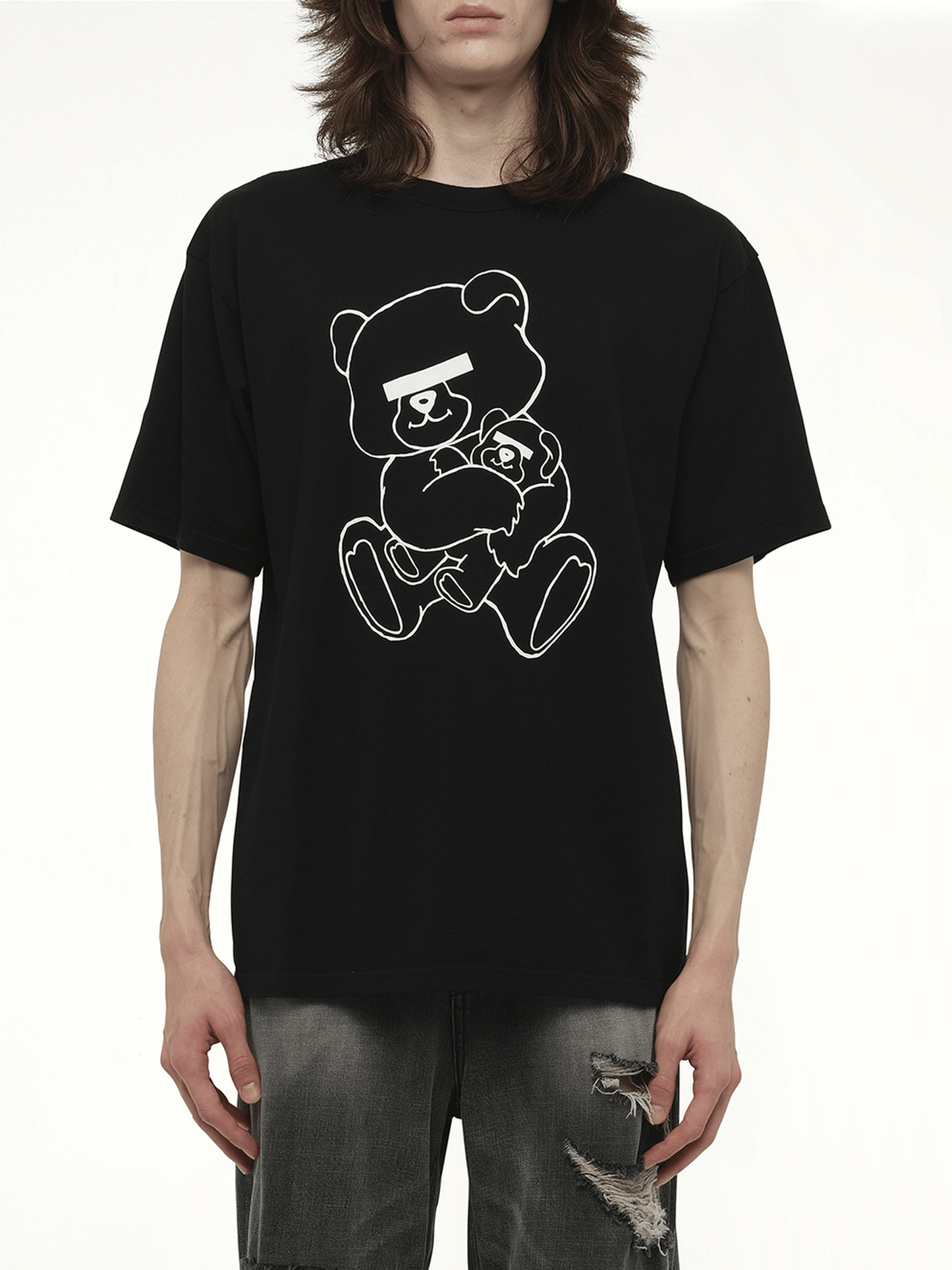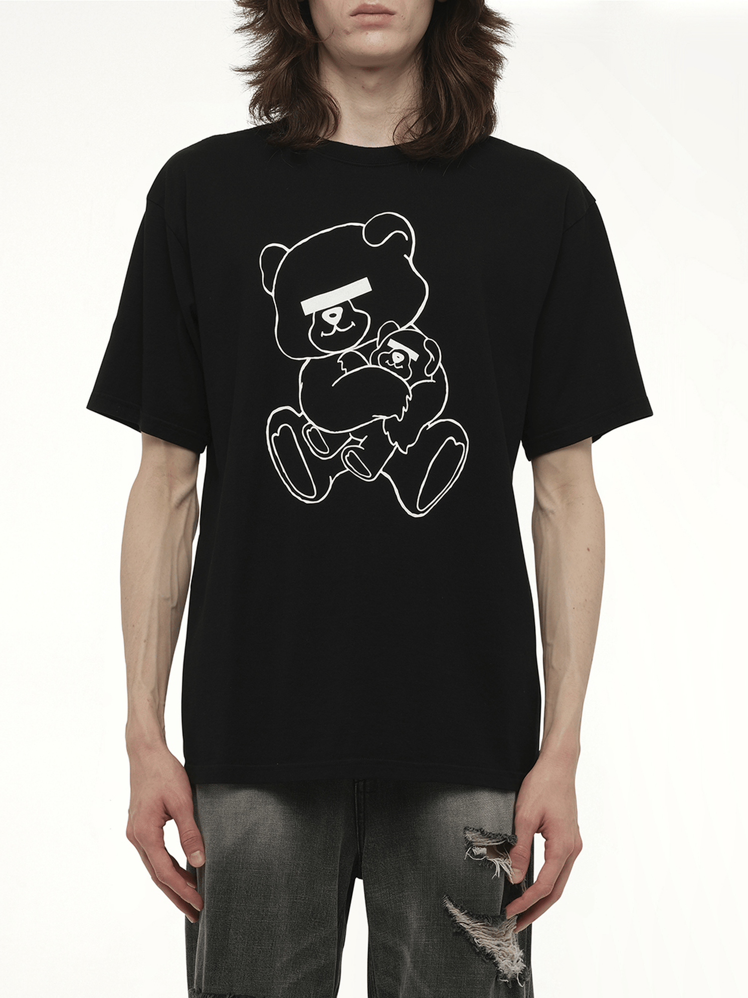 UNDERCOVER's Teddy Bear Printed T-Shirt in Black is a stylish and playful addition to any wardrobe, featuring a unique teddy bear graphic that adds a touch of whimsy. Perfect for casual outings, this t-shirt effortlessly combines comfort and fashion.