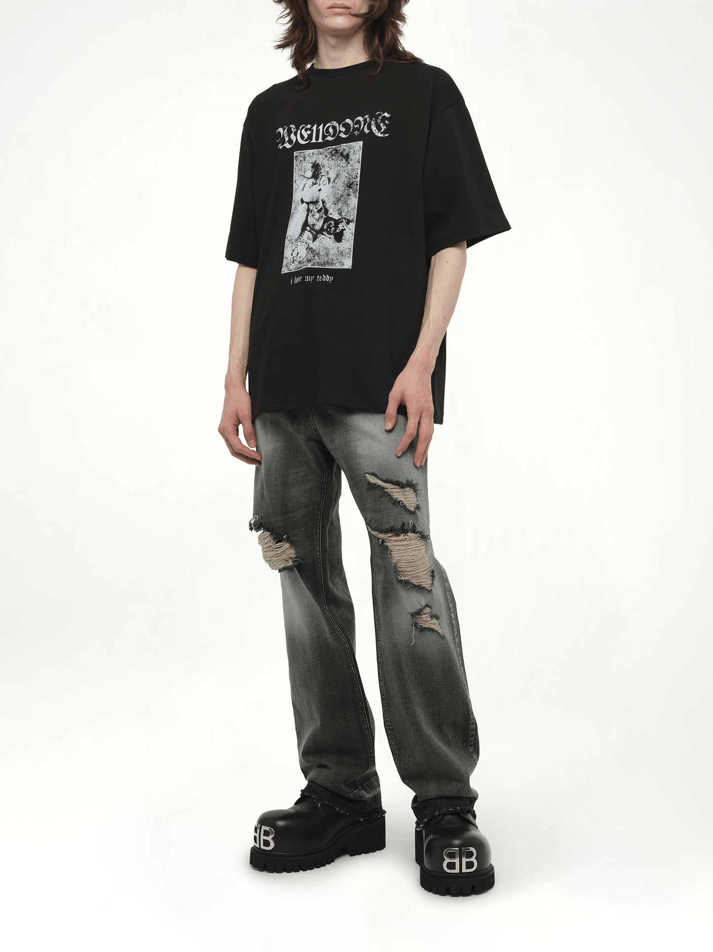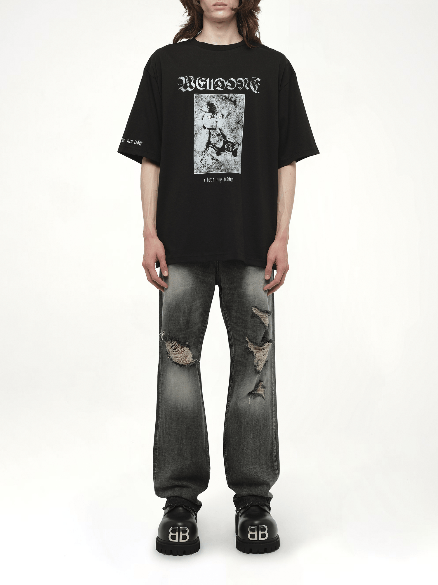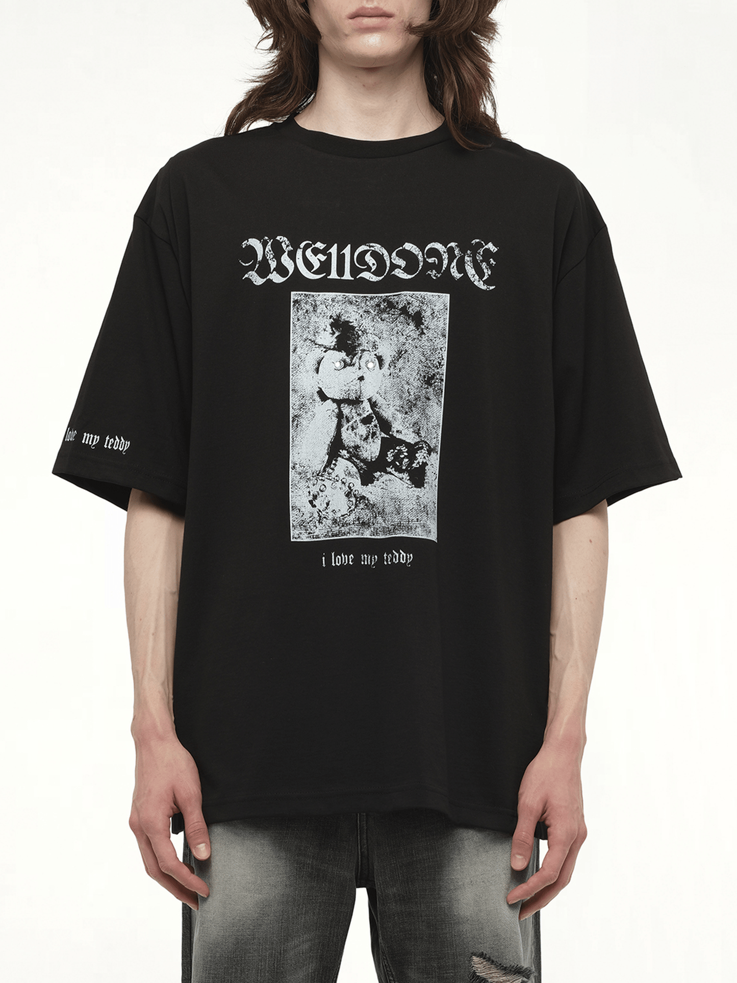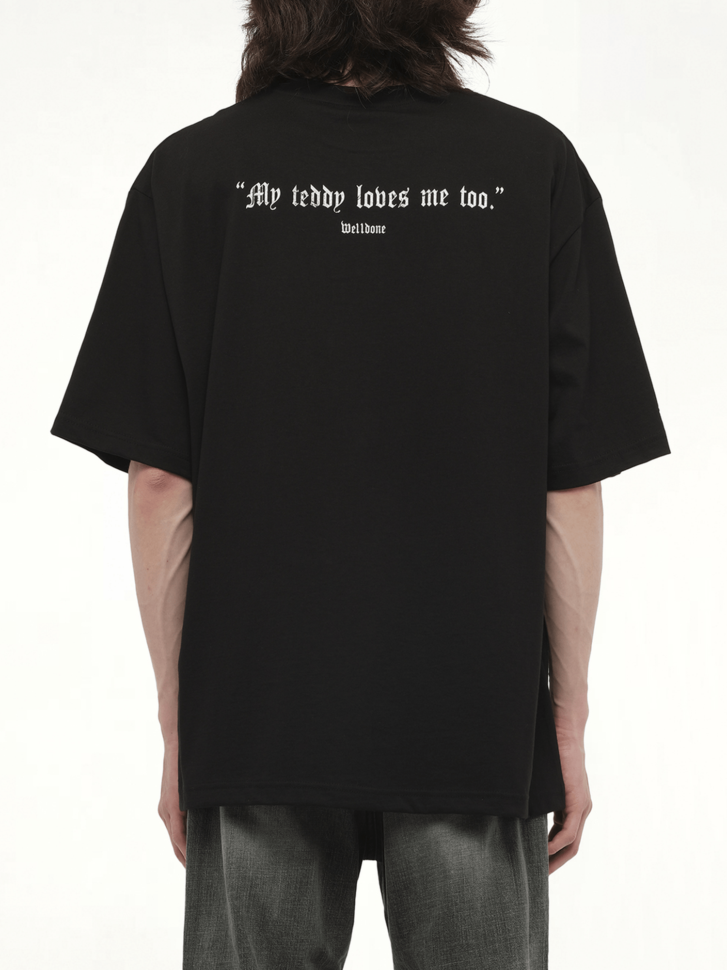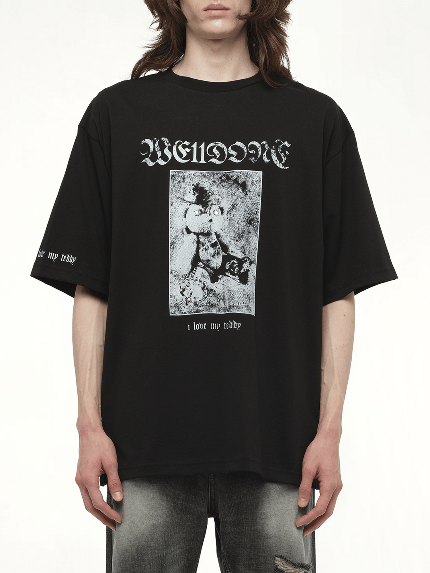 WE11DONE's Teddy Sleeved T-Shirt in Black is a stylish and contemporary piece that effortlessly combines comfort with a unique design. Perfect for any casual occasion, this t-shirt is a must-have addition to your wardrobe.