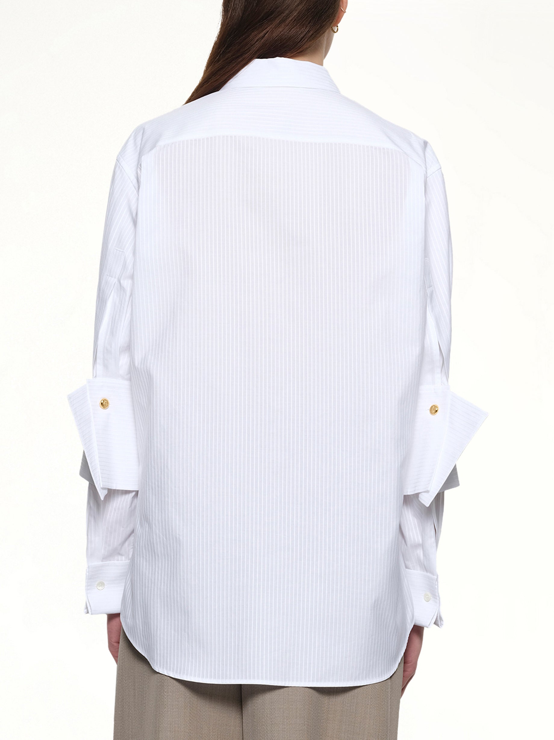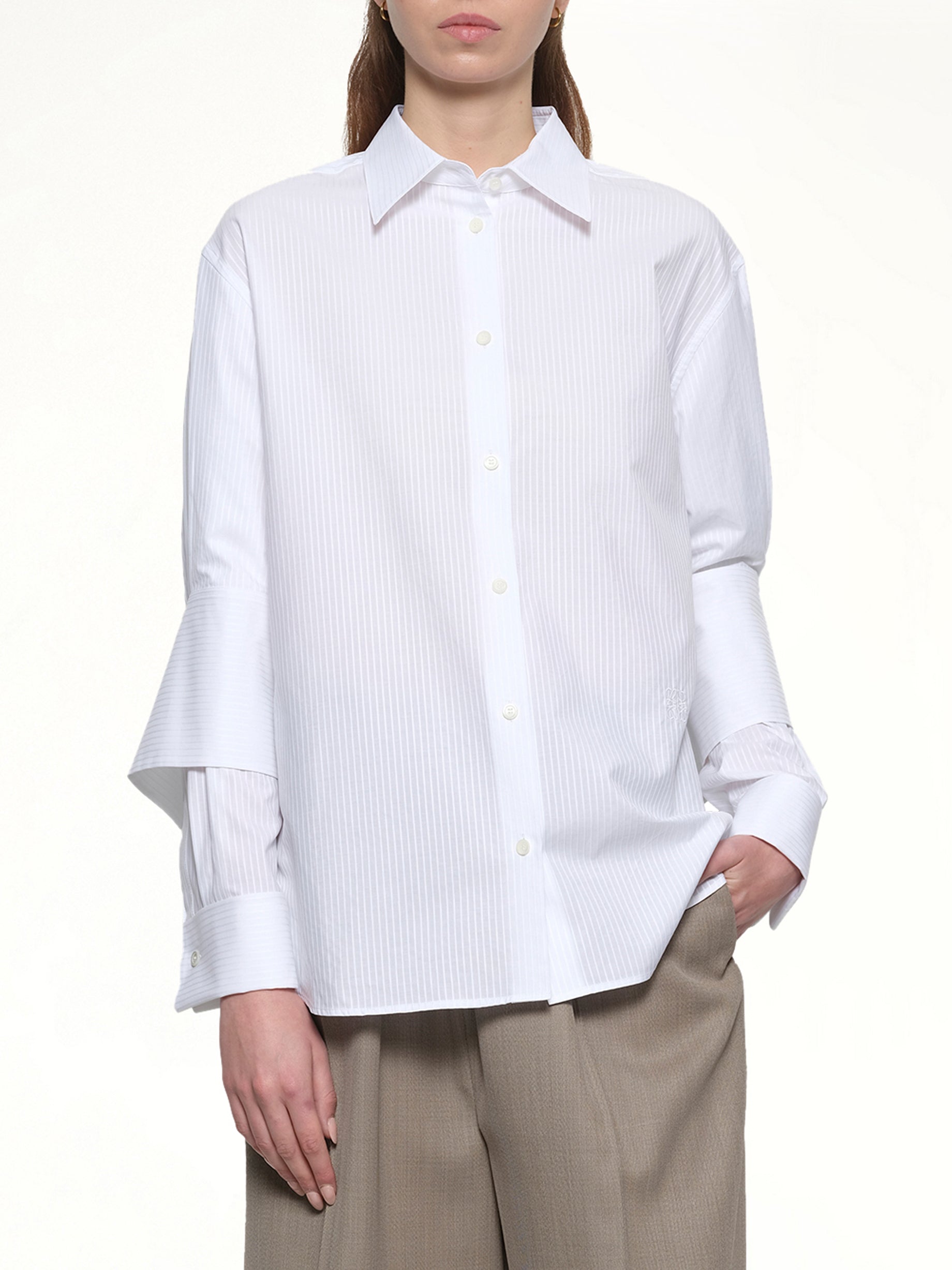Loewe's Turn-Up Shirt in White is a sophisticated and versatile piece, perfect for both formal and casual occasions. Its clean lines and classic design make it a timeless addition to any wardrobe.